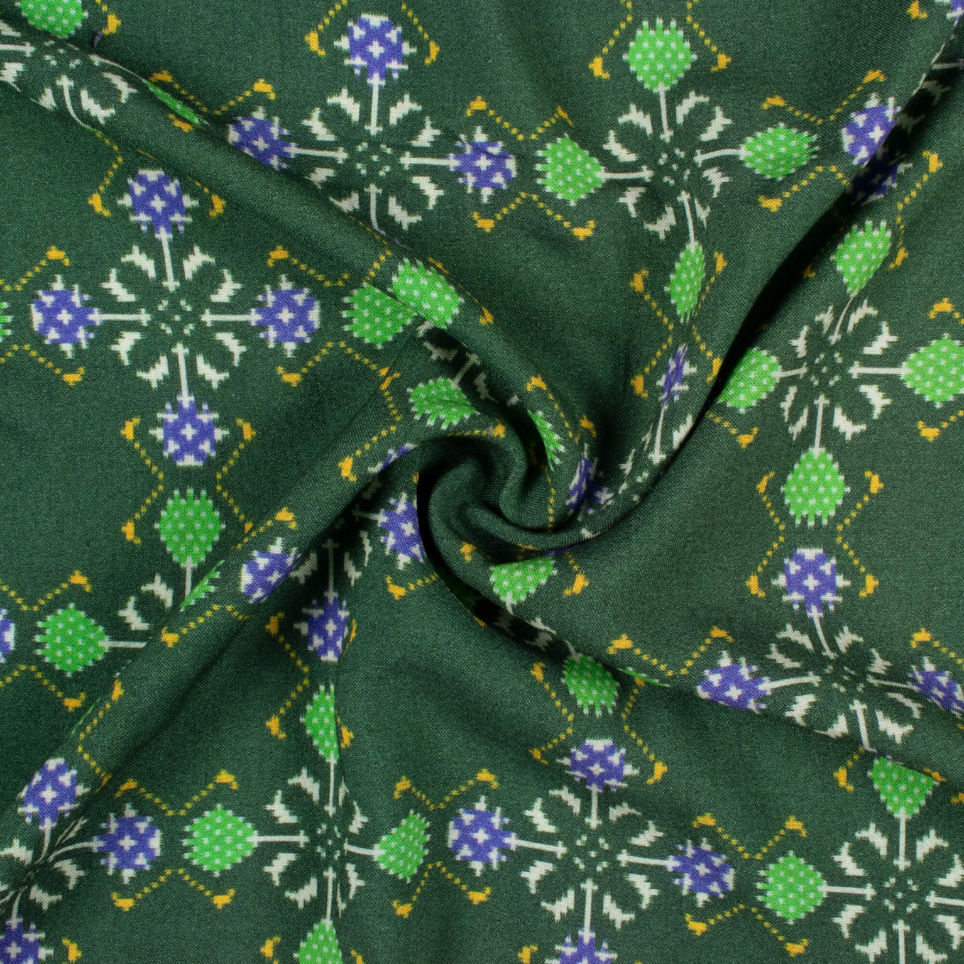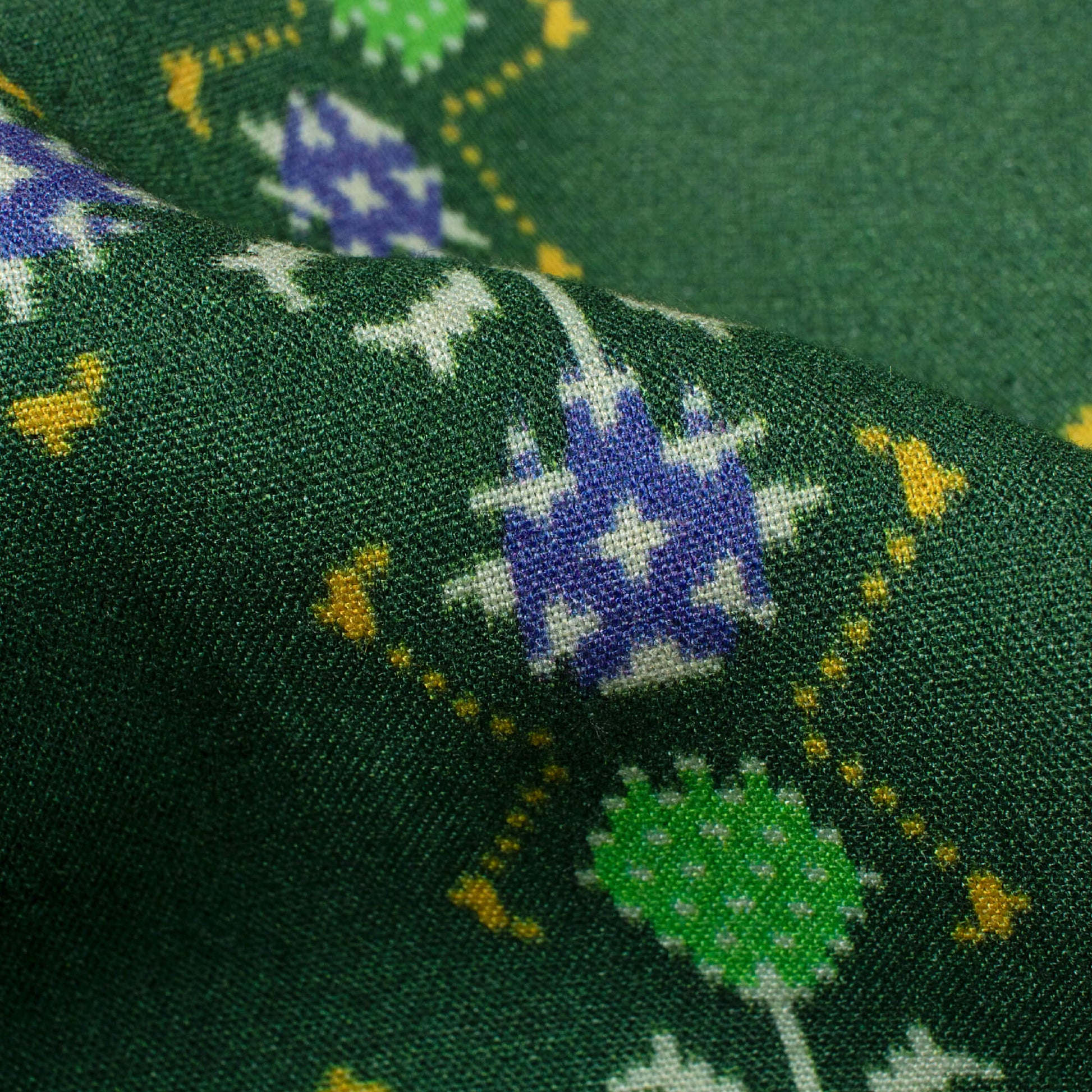 Forest Green And Royal Purple Patolaa Pattern Digital Print Viscose Rayon Fabric (Width 58 Inches)