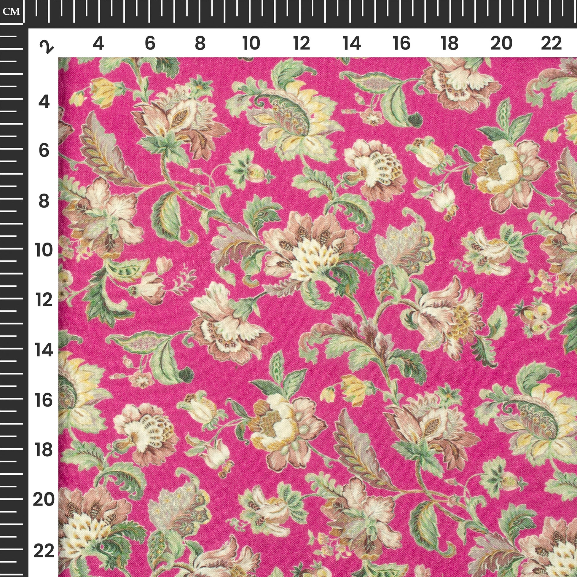 Fuscia Pink Floral Digital Print Viscose Rayon Fabric(Width 58 Inches)
