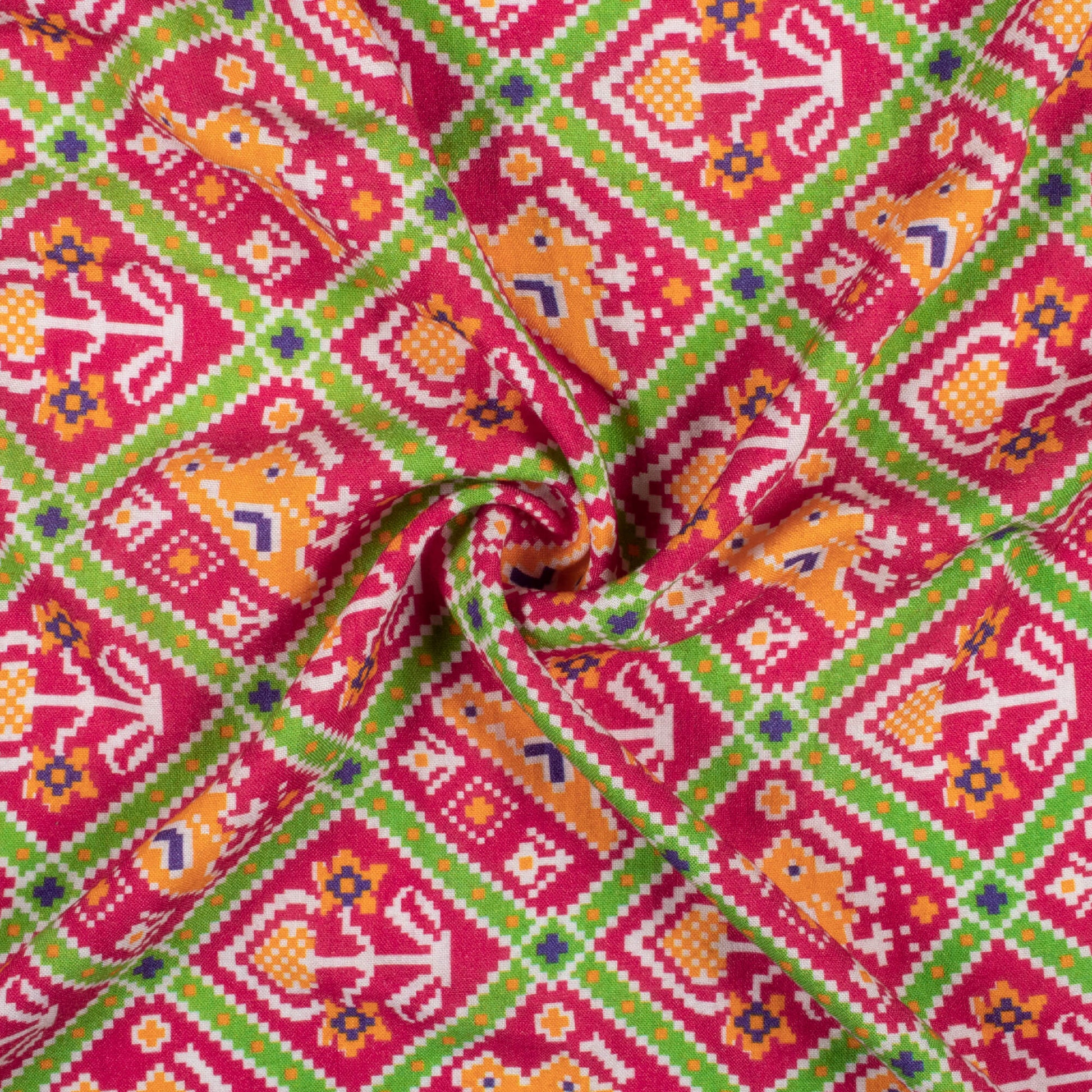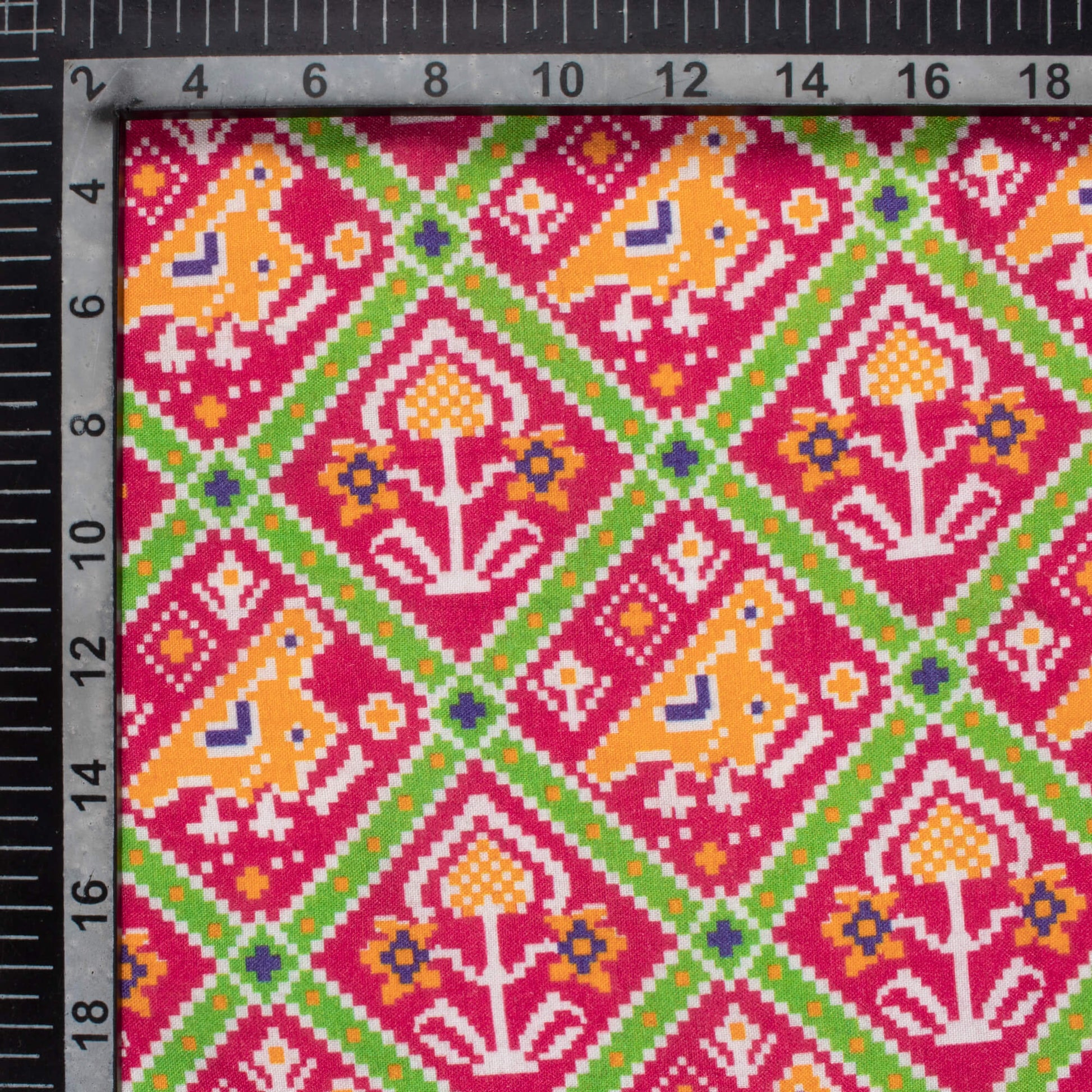 Magenta Pink And Paris Green Patolaa Pattern Digital Print Viscose Rayon Fabric (Width 58 Inches)