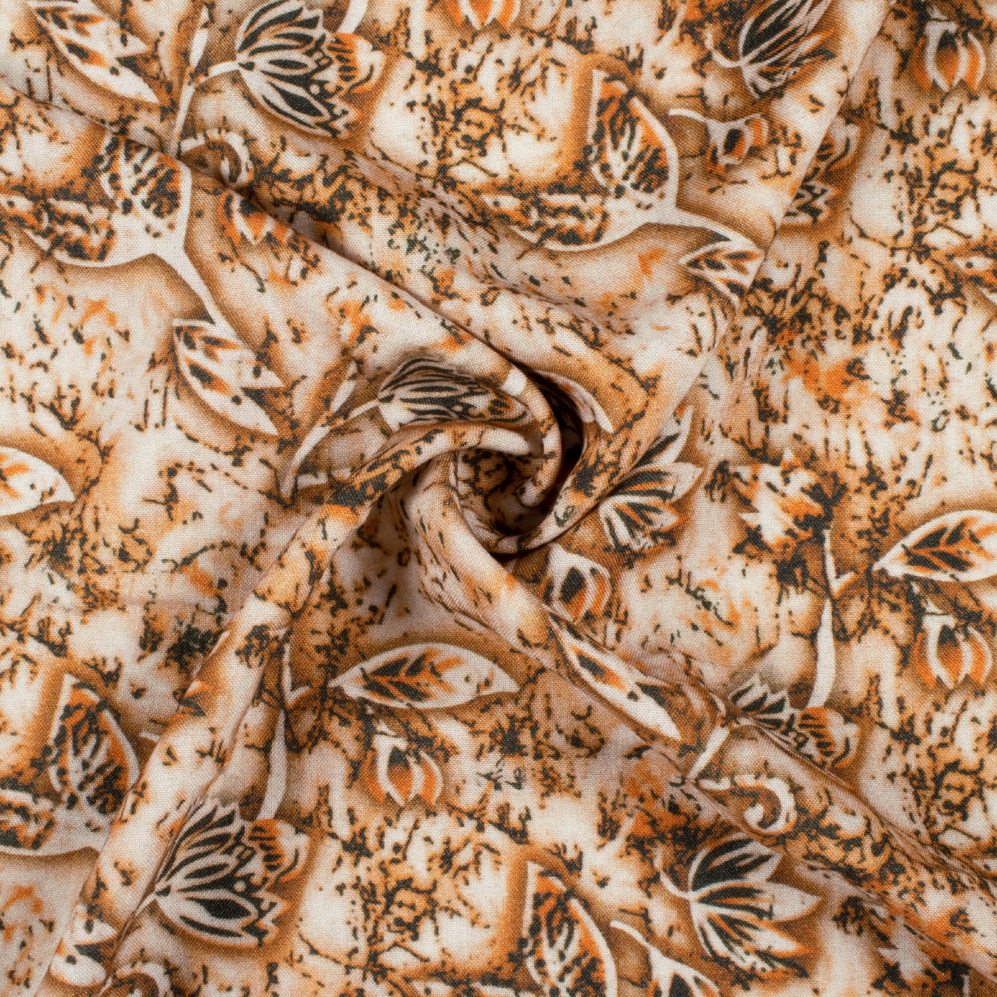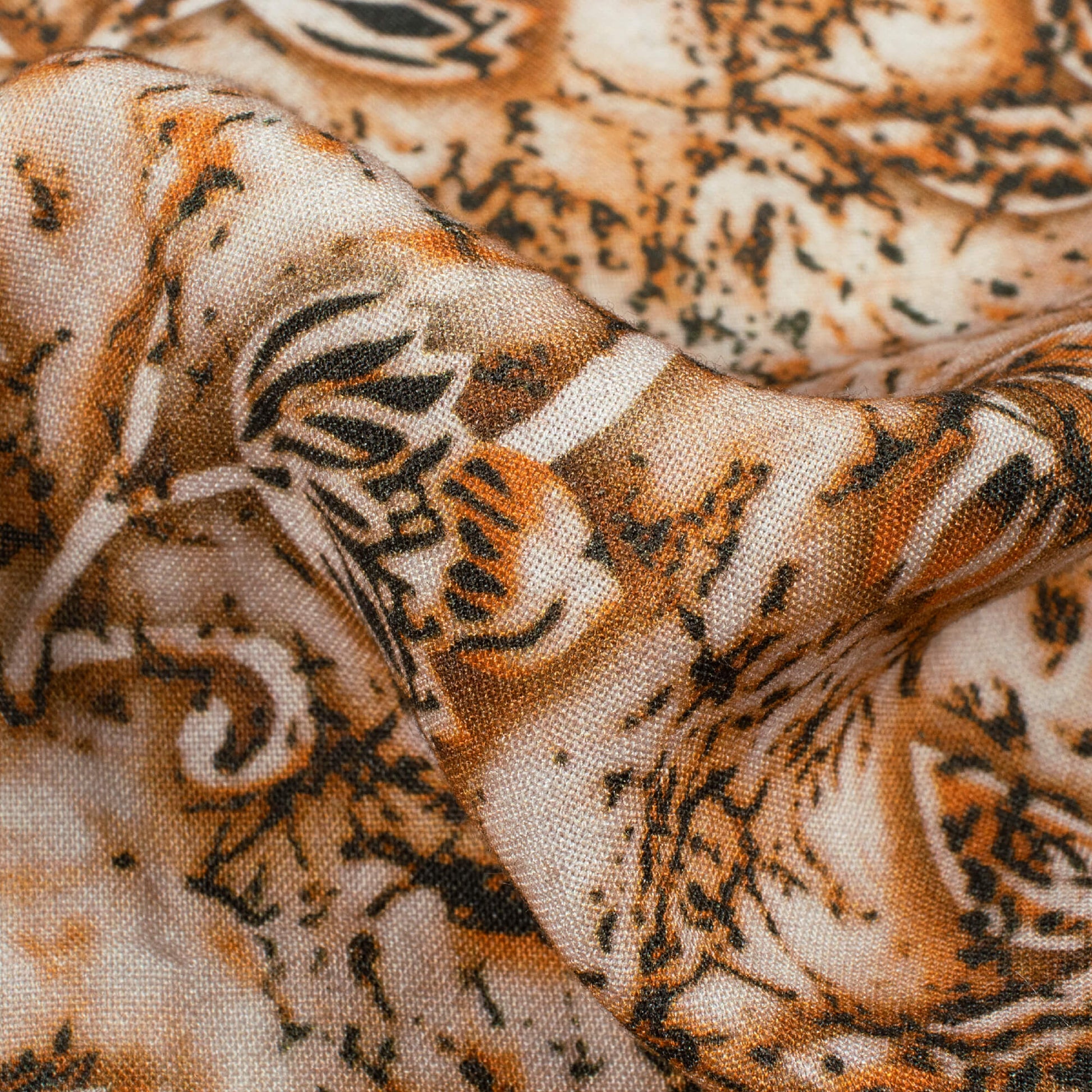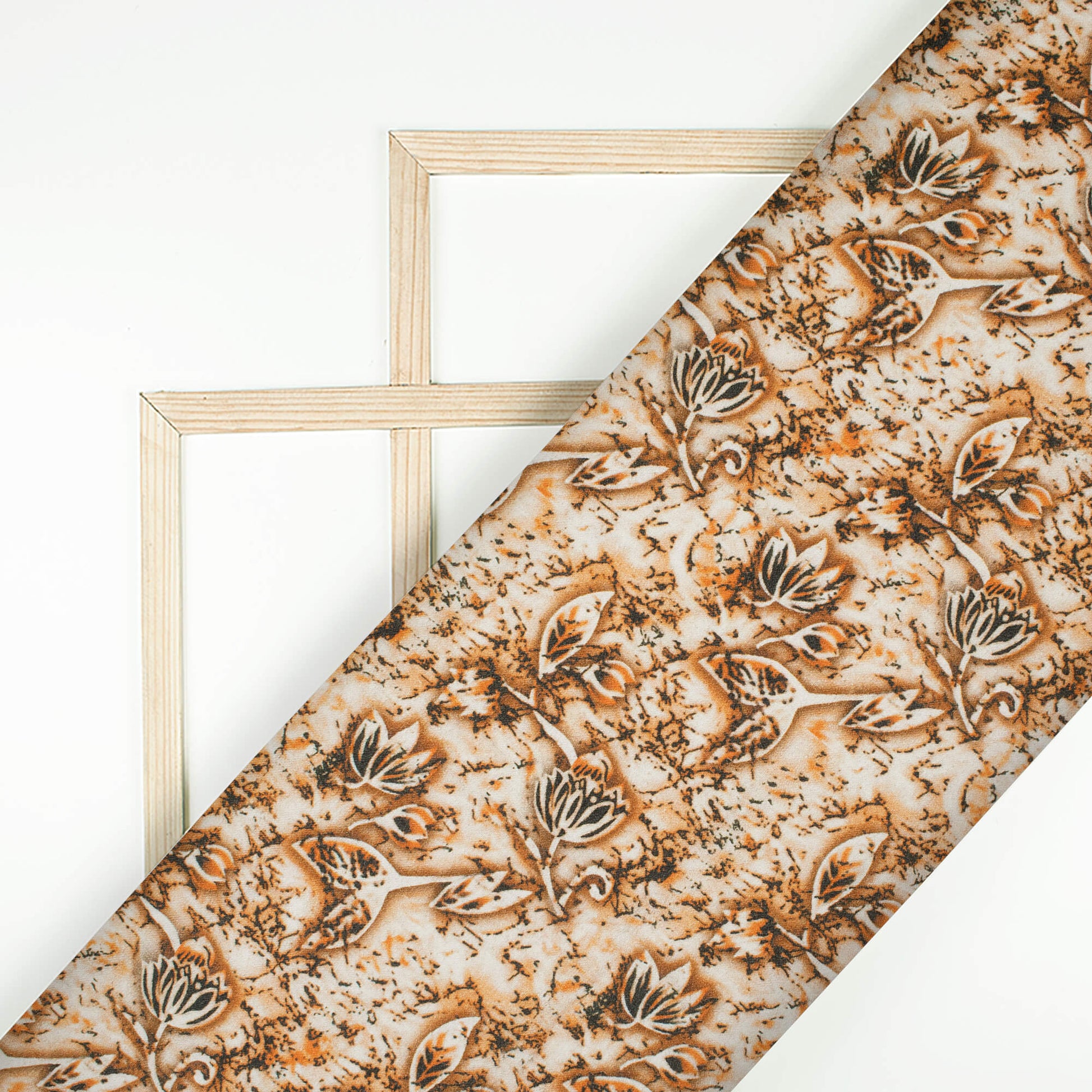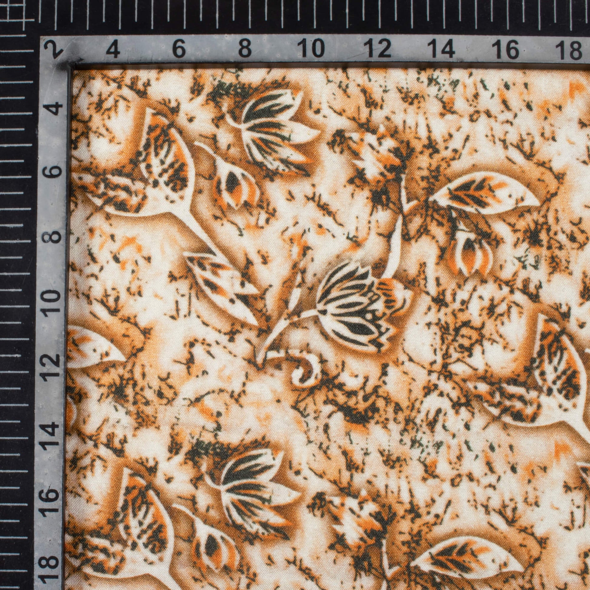 Peanut Brown And Dark Green Floral Pattern Digital Print Viscose Rayon Fabric (Width 58 Inches)