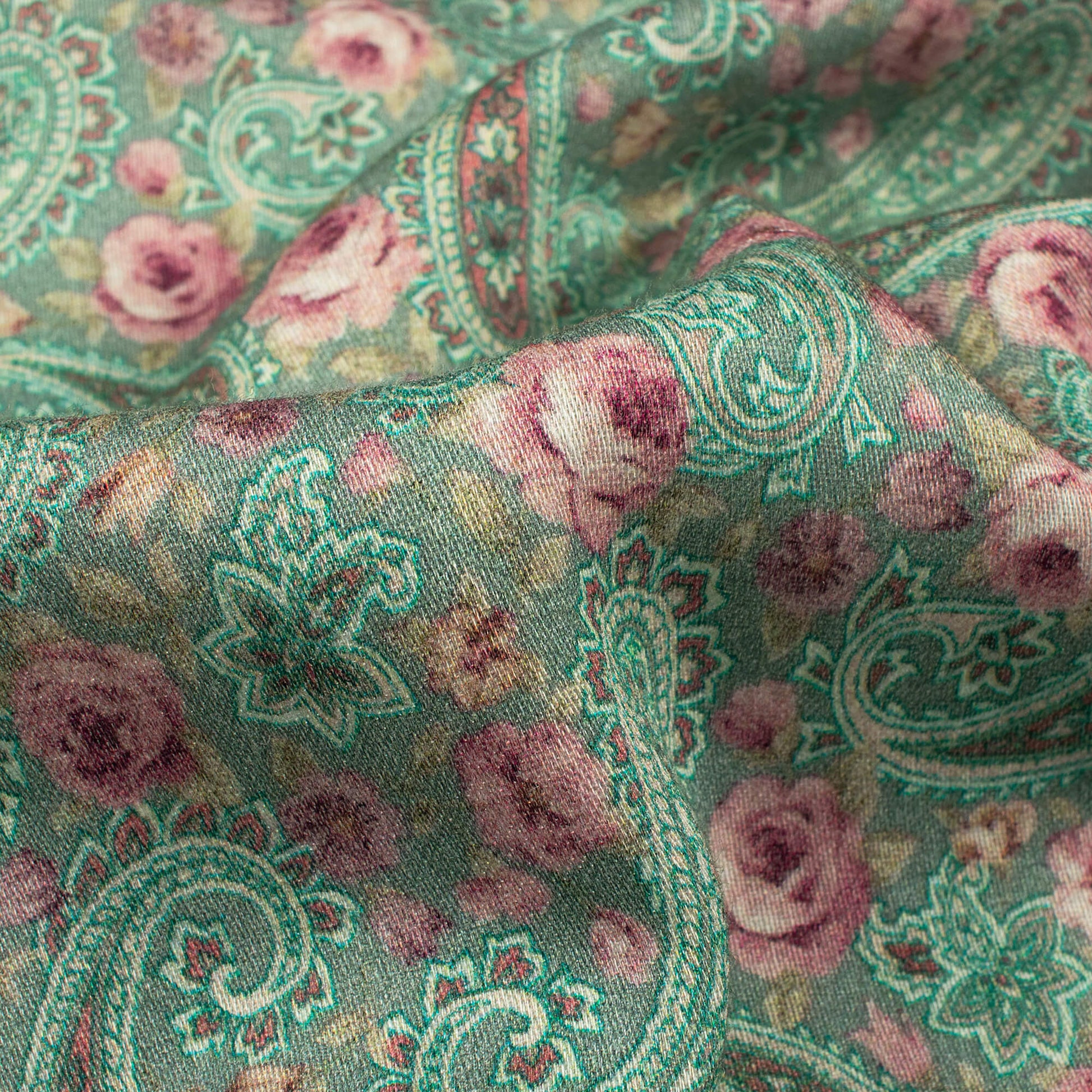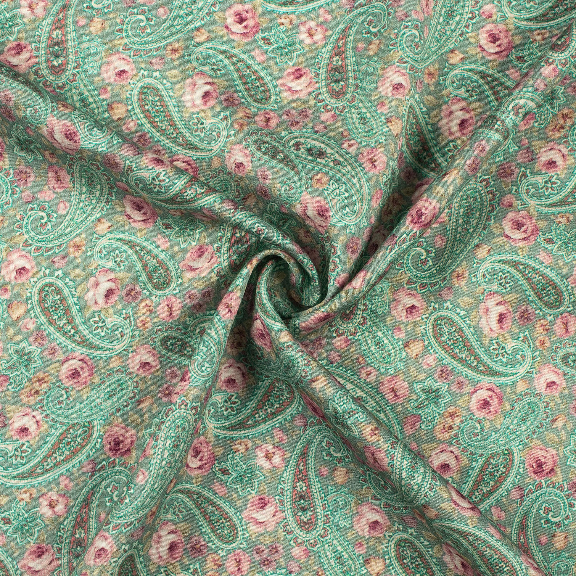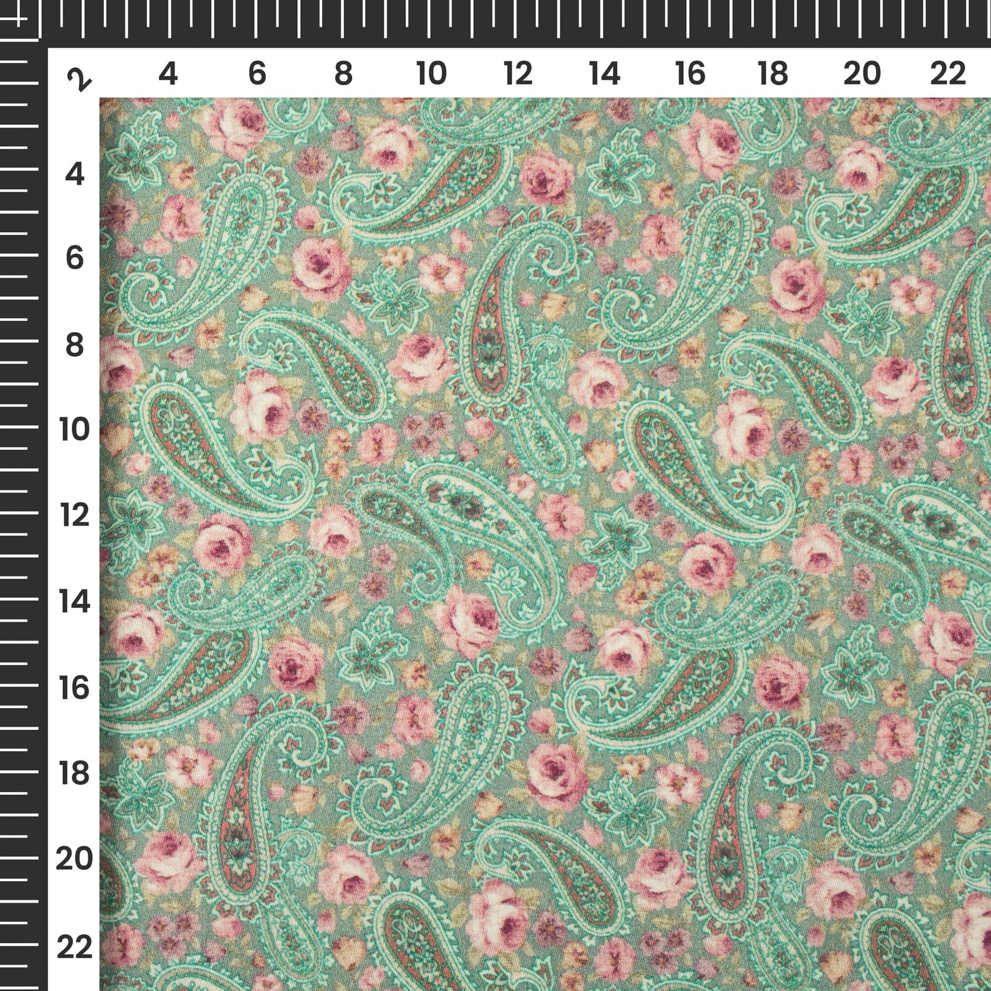 Turquoise Blue And Pink Paisley Digital Print Viscose Rayon Fabric(Width 58 Inches)