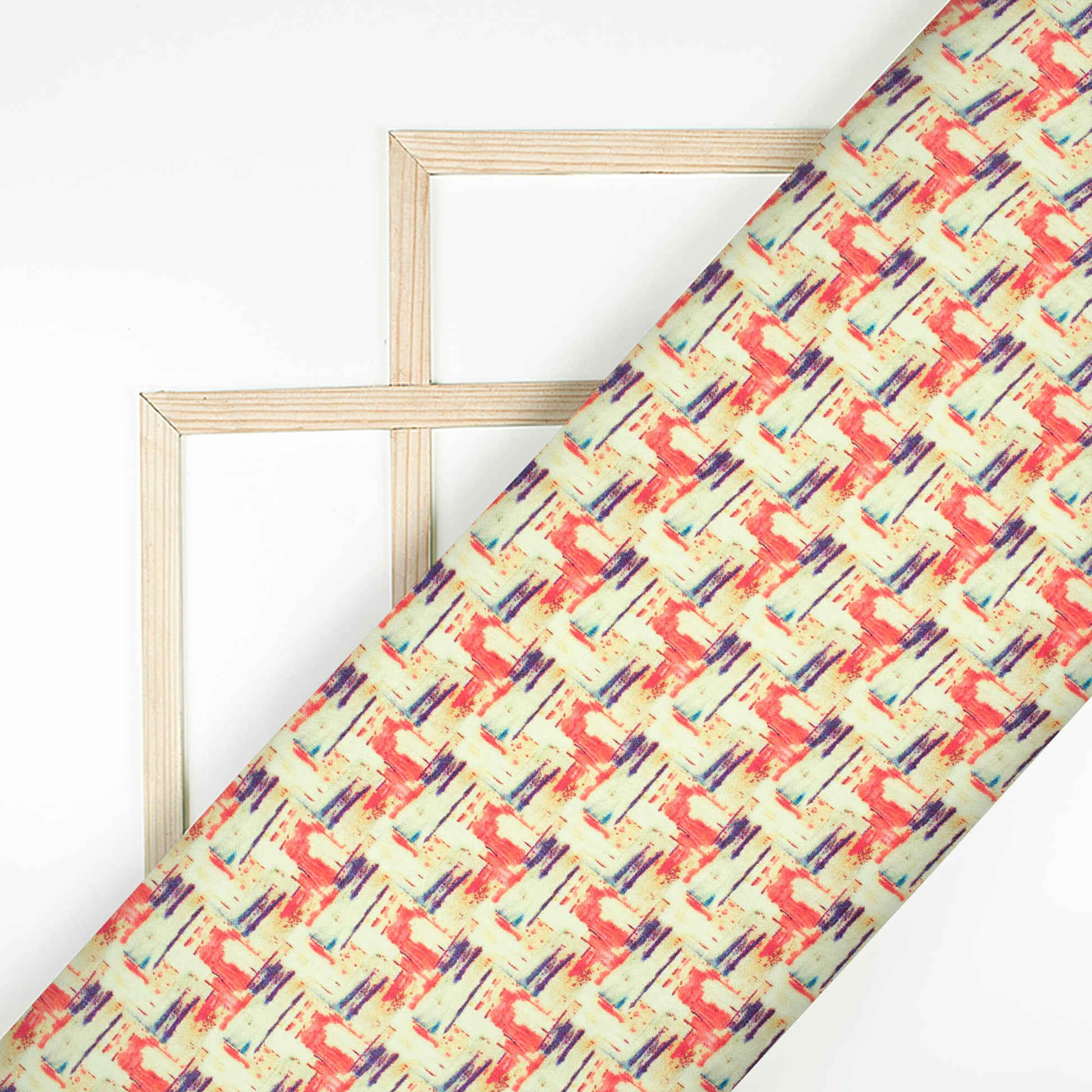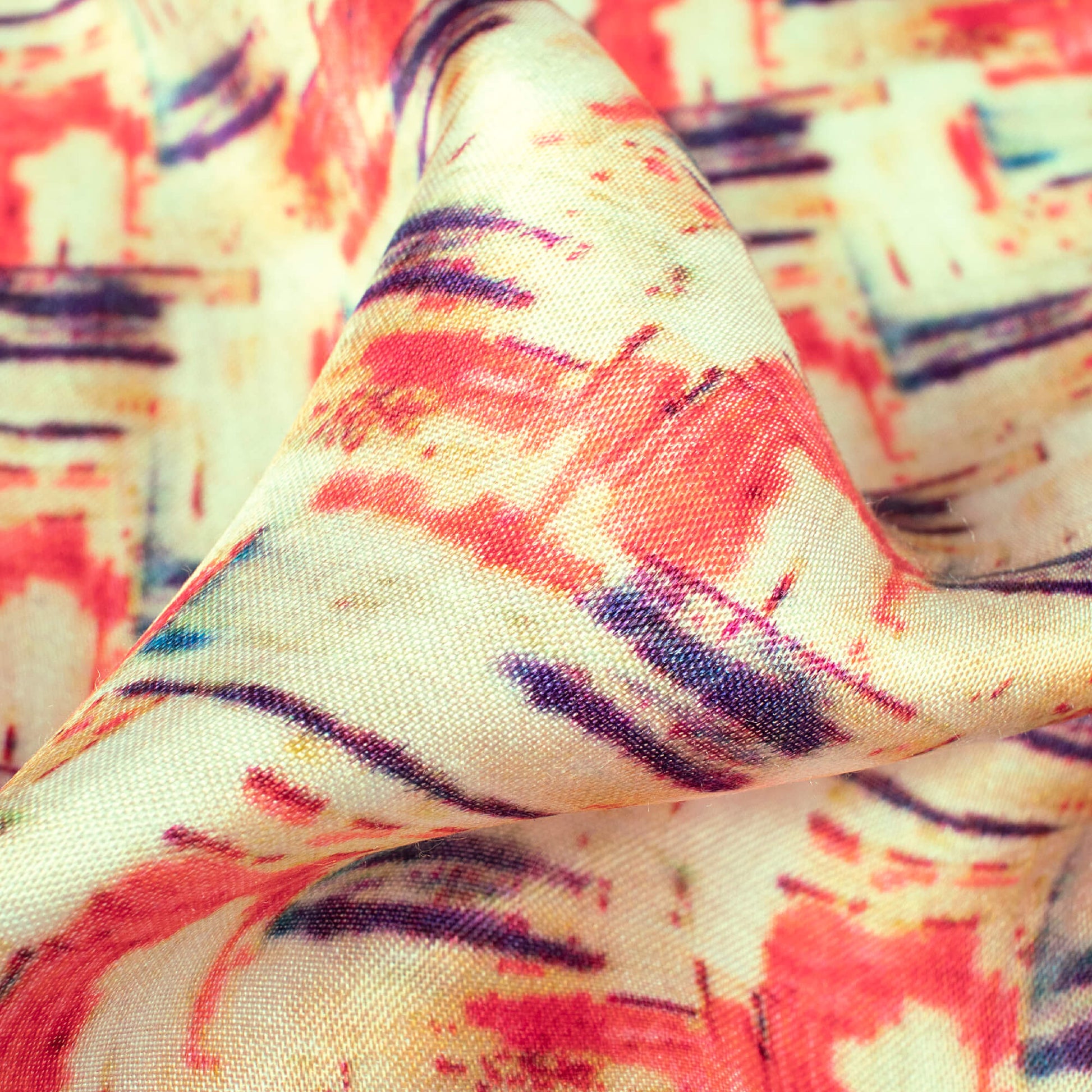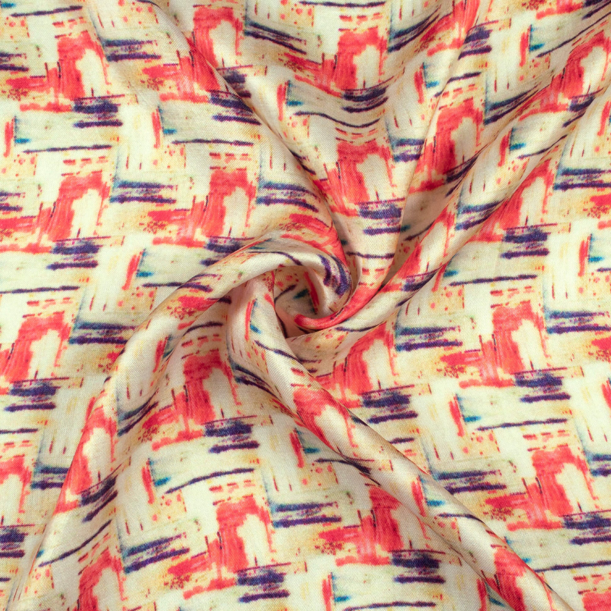 Blush Red And Cream Abstract Pattern Digital Print Viscose Gaji Silk Fabric