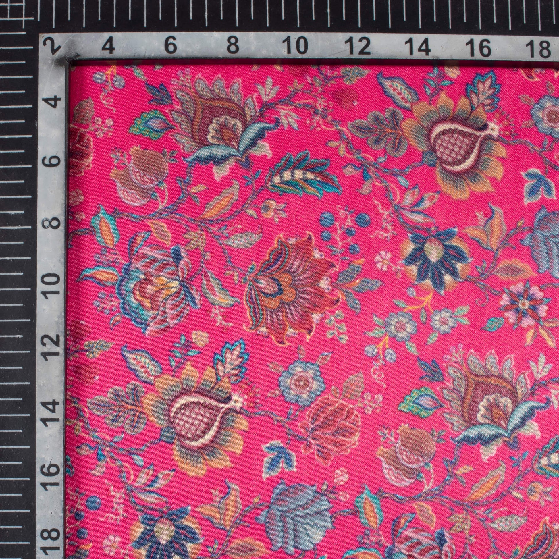 Deep Pink And Blue Floral Pattern Digital Print Viscose Gaji Silk Fabric