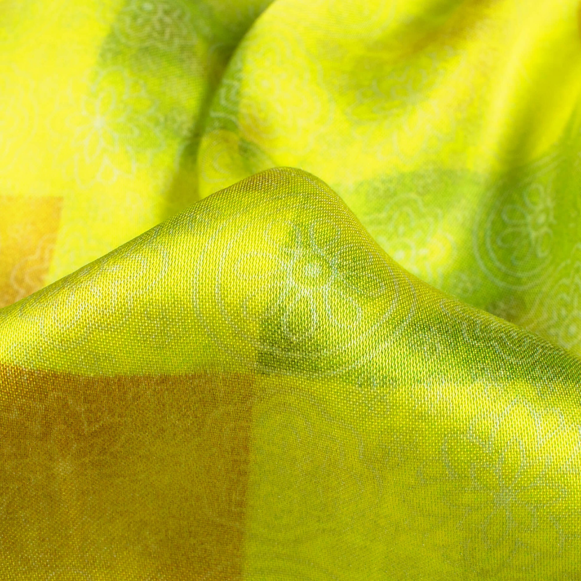 Fabcurate's Gaji Silk, crafted from vegetable-based viscose with a satin weave, is a lightweight fabric prized for its rich texture, glossy finish, and luxurious feel. Ideal for elegant drapes including Sarees, Gowns, Suits, Lehengas, Skirts, and Blazers. It showcases beautiful designs tailored for a luxurious appearance.