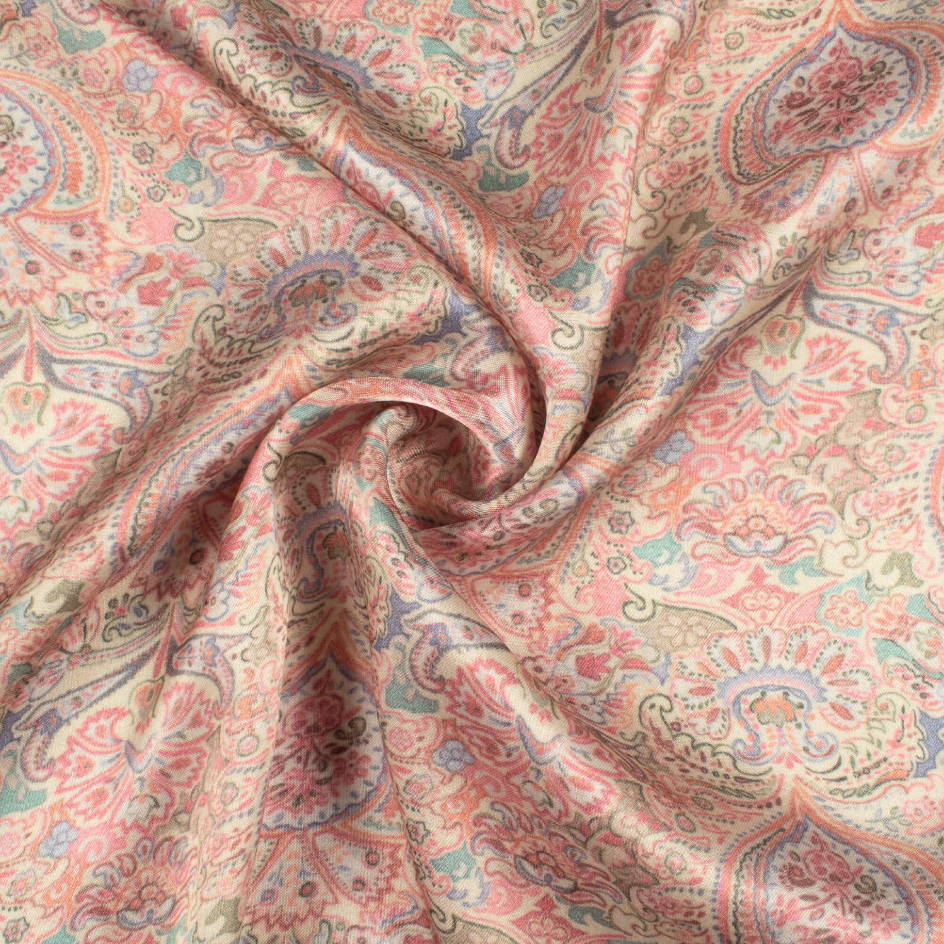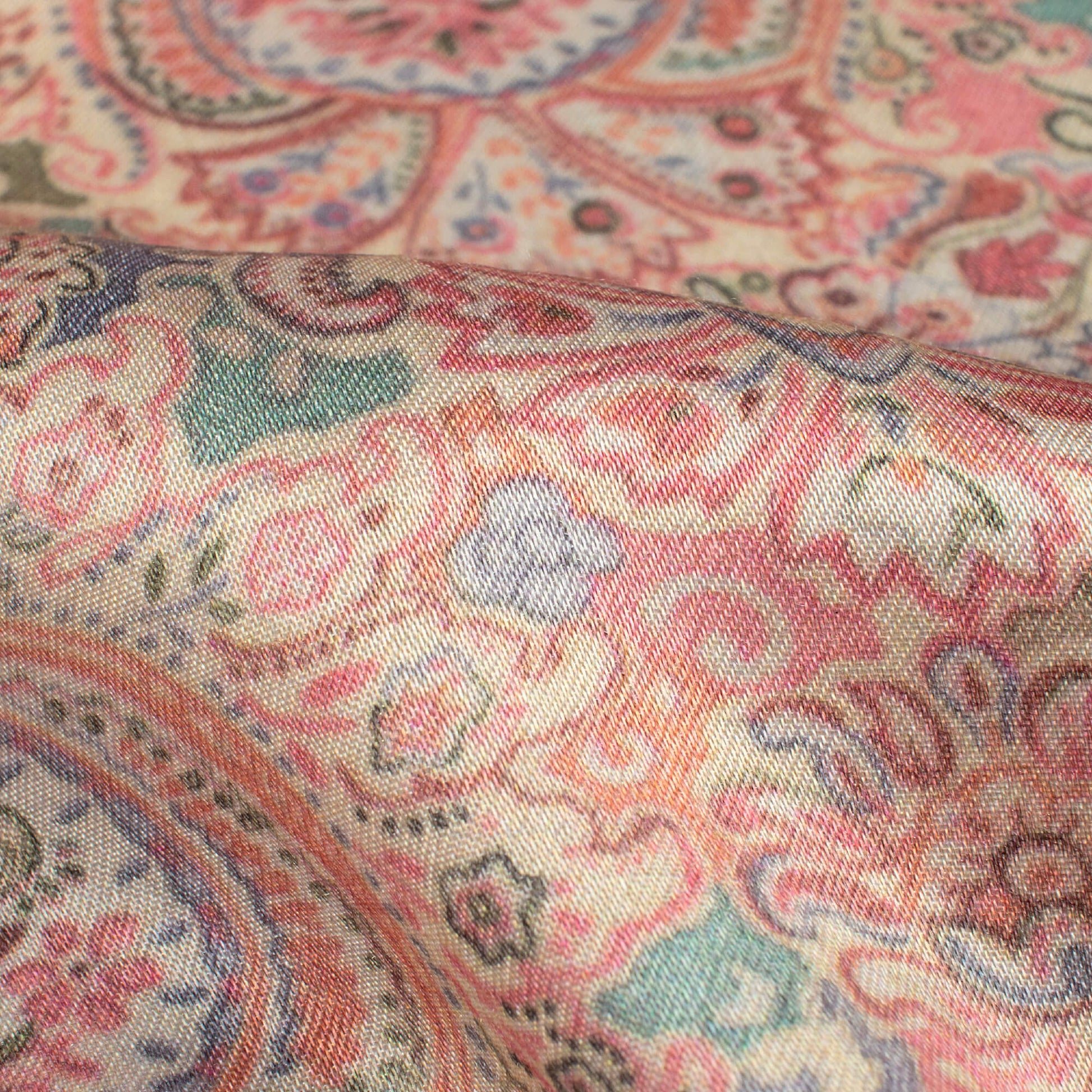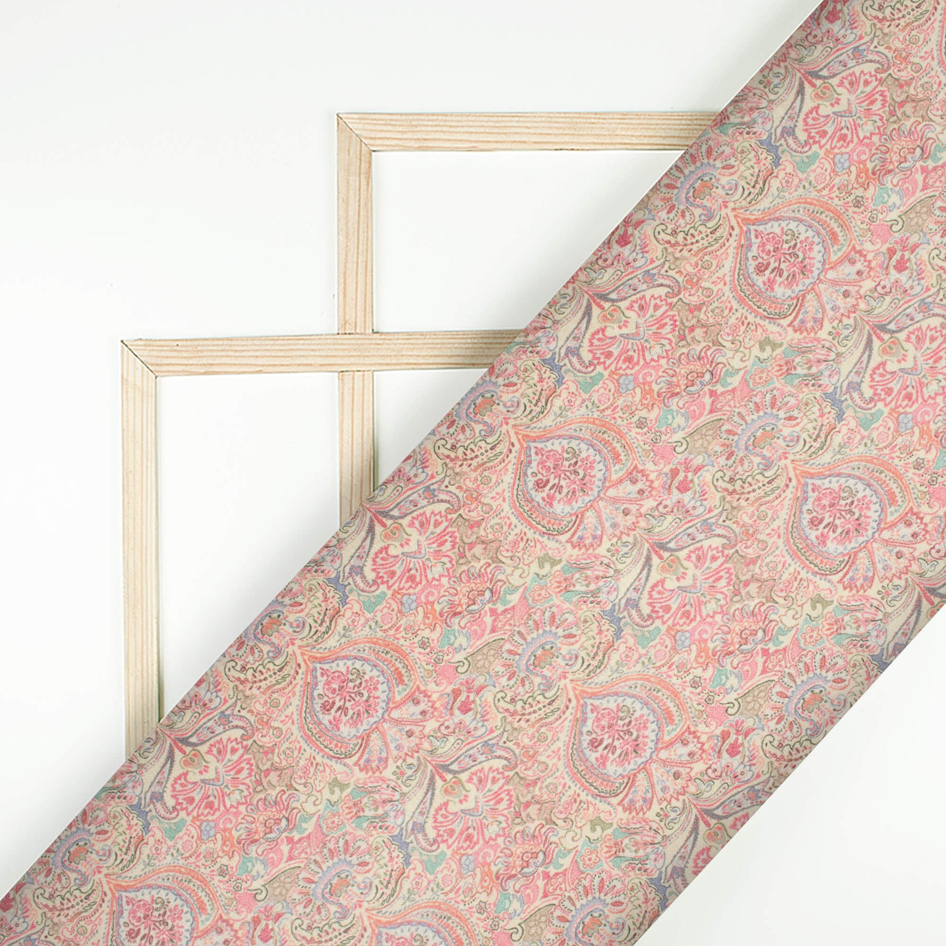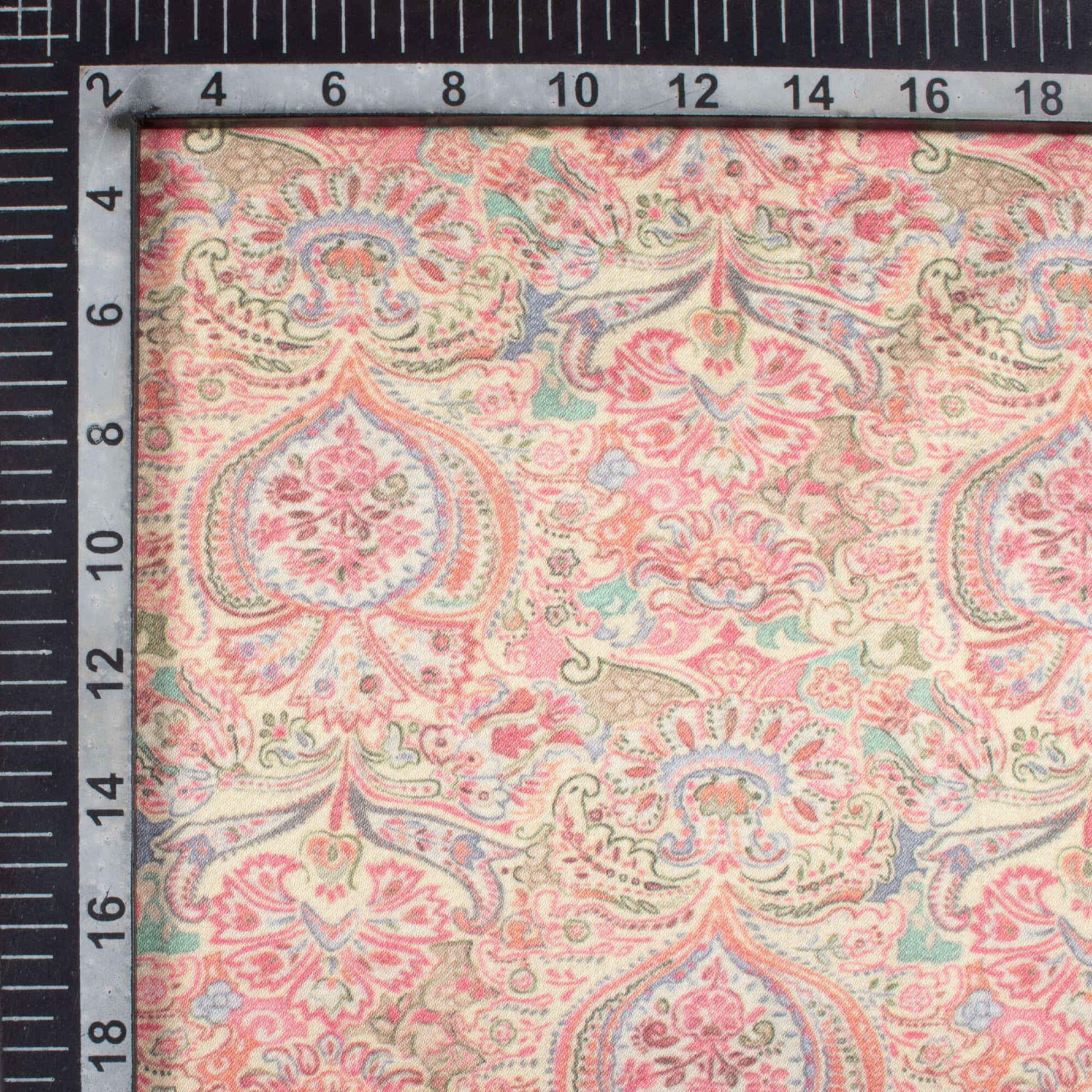 Flamingo Pink and Cream Ethnic Pattern Digital Print Viscose Gaji Silk Fabric
