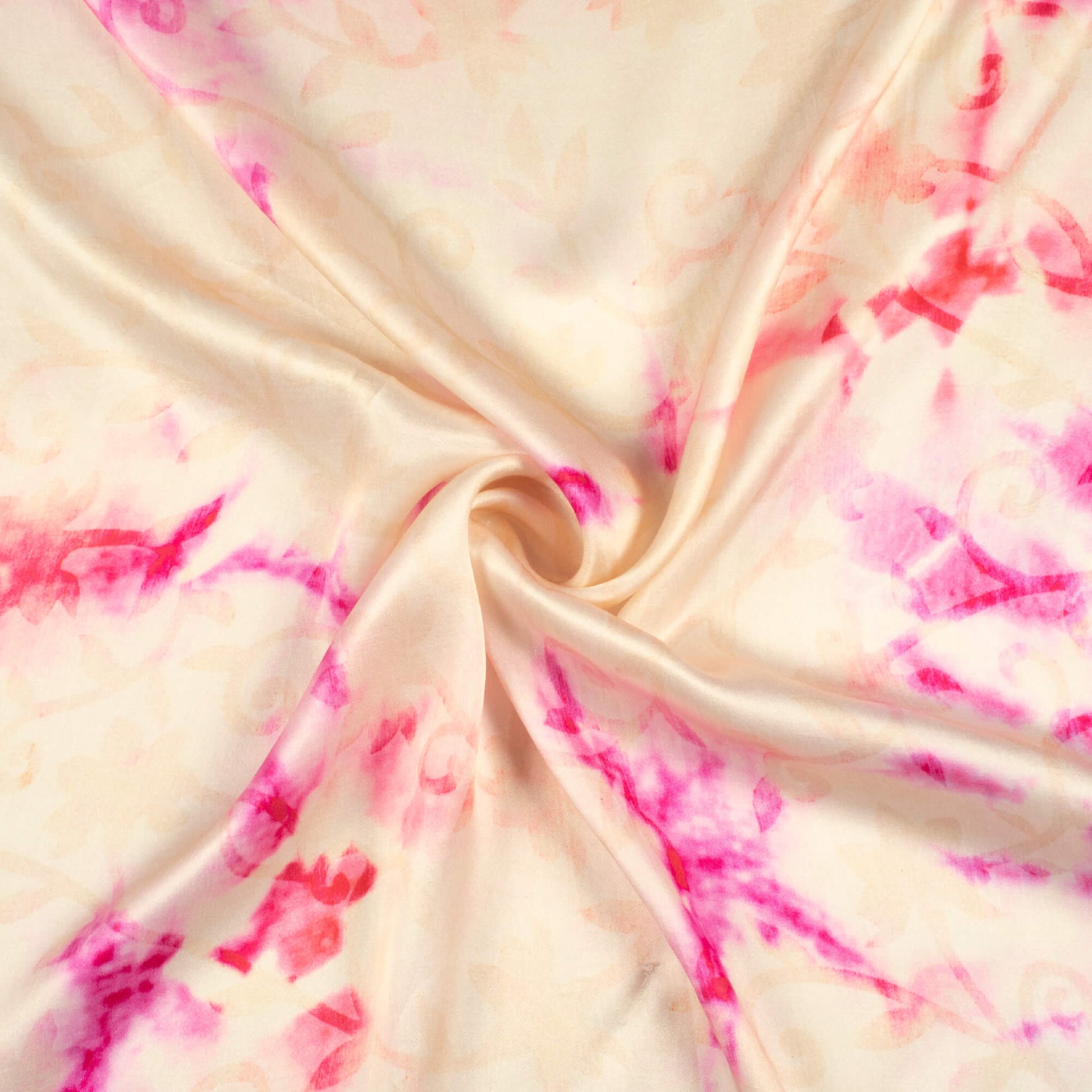 Fuchsia Pink And Beige Tye And Dye Pattern Digital Print Viscose Gaji Silk Fabric