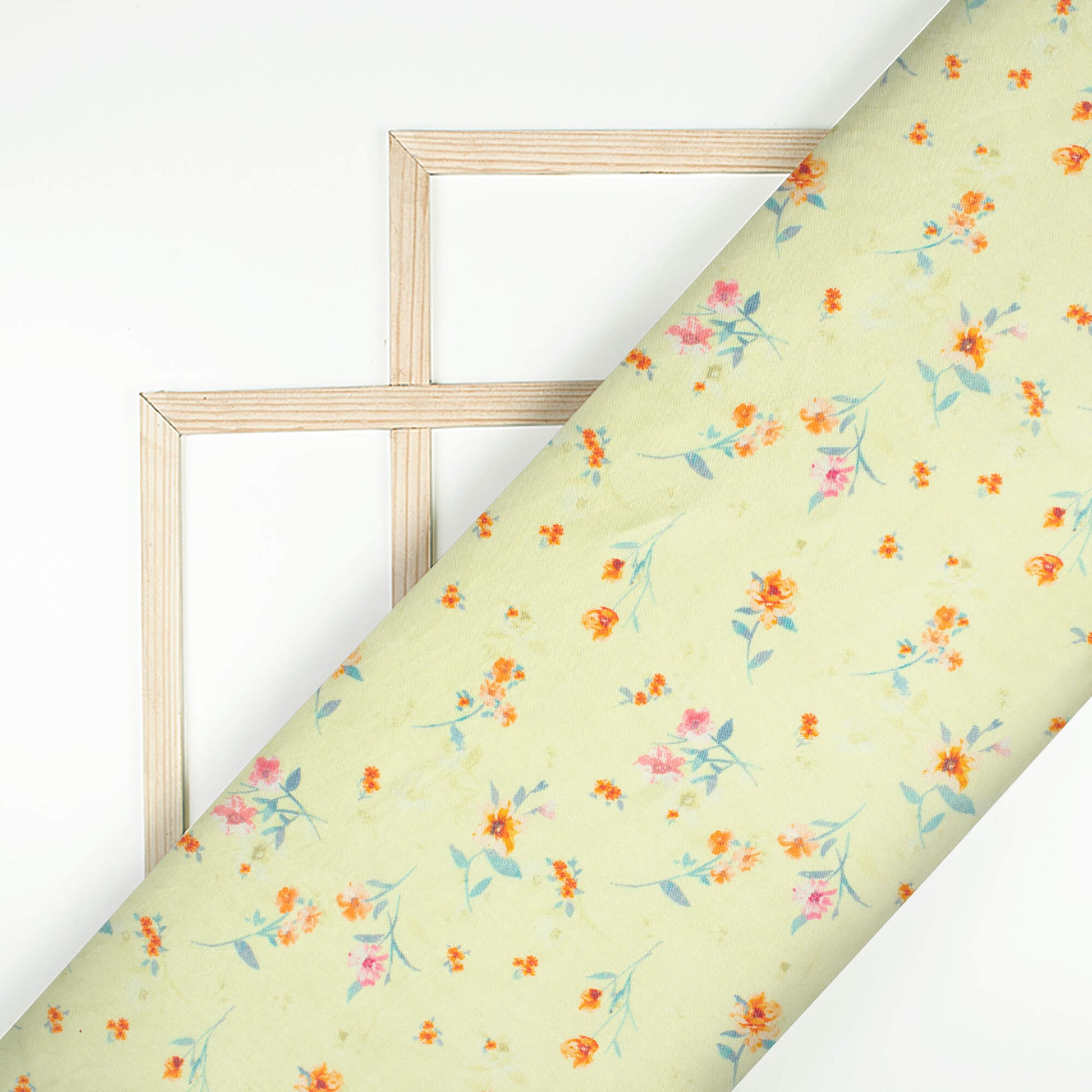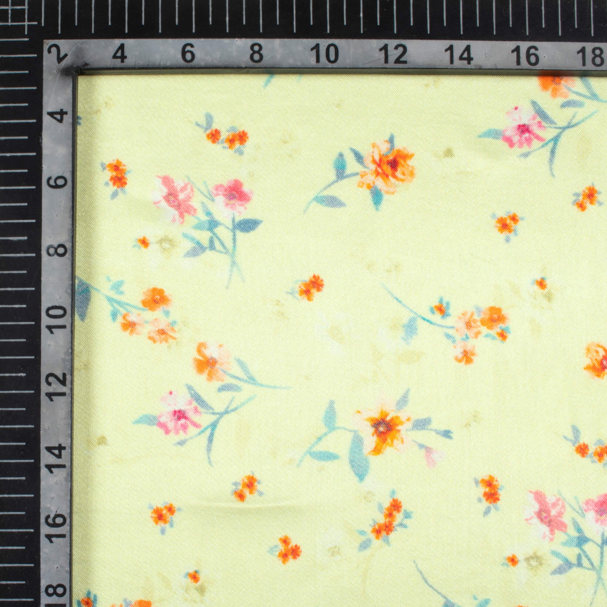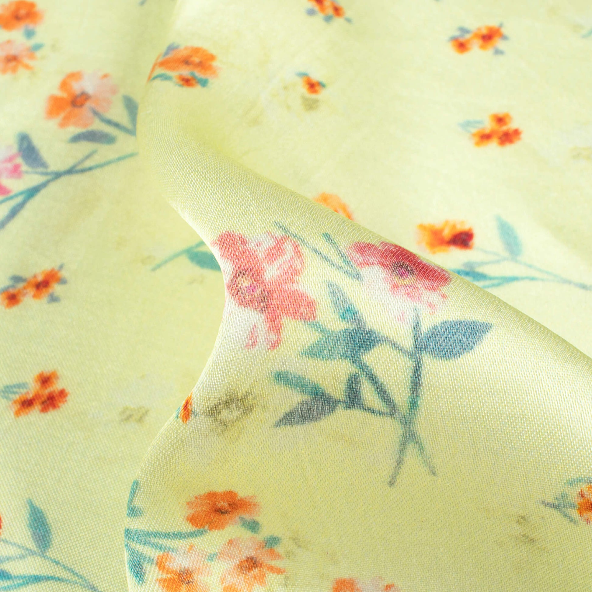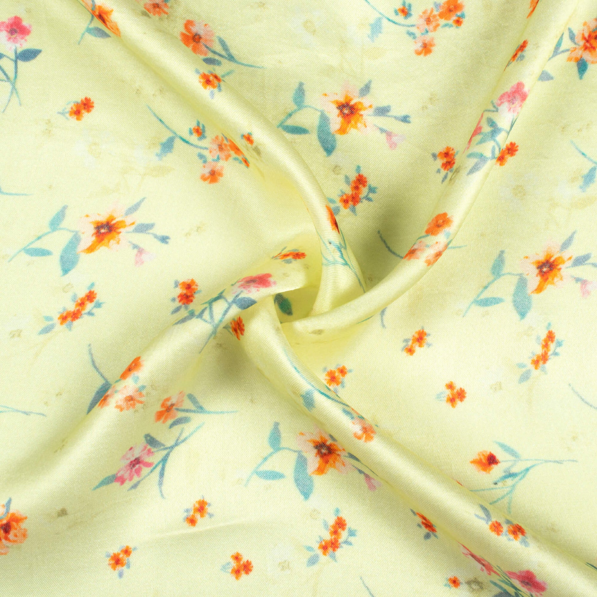 Lemon Yellow And Orange Floral Pattern Digital Print Viscose Gaji Silk Fabric