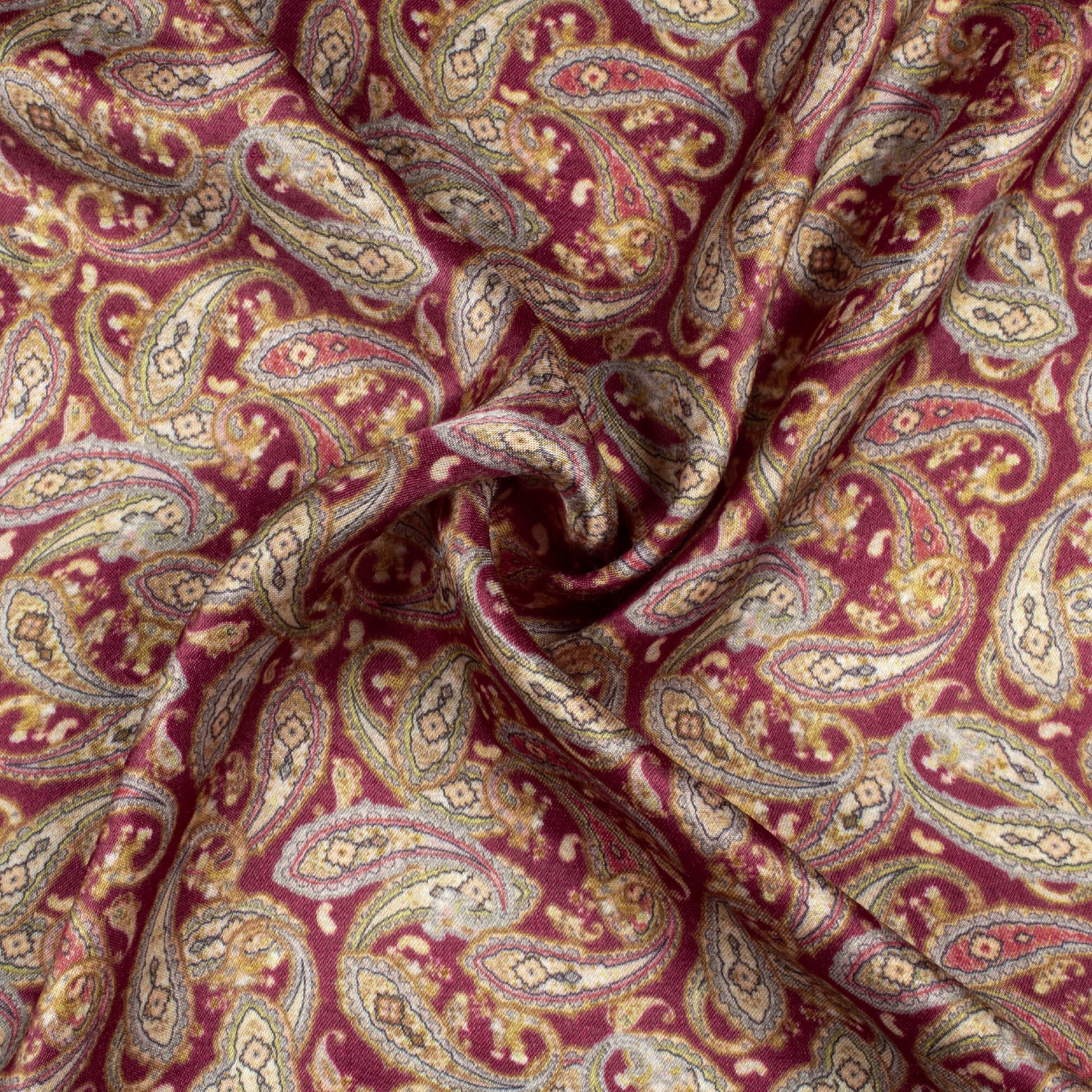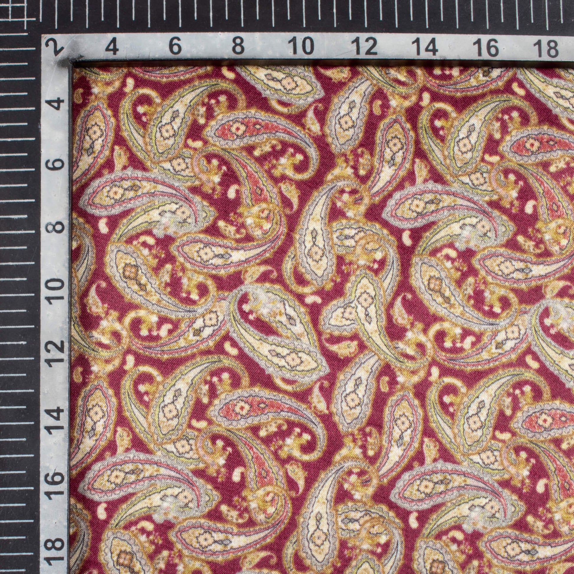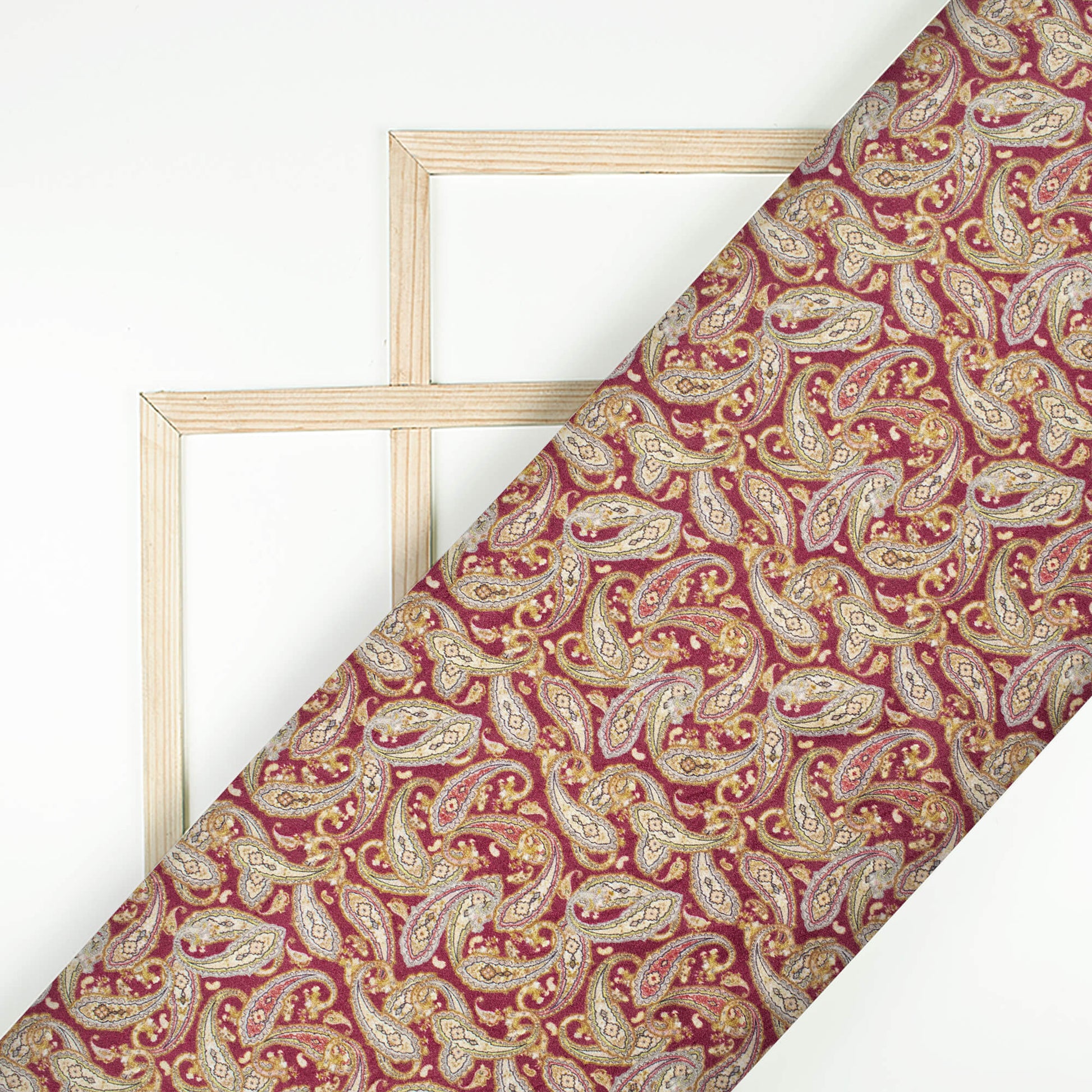 Mehogany Red And Tea Green Paisley Pattern Digital Print Viscose Gaji Silk Fabric