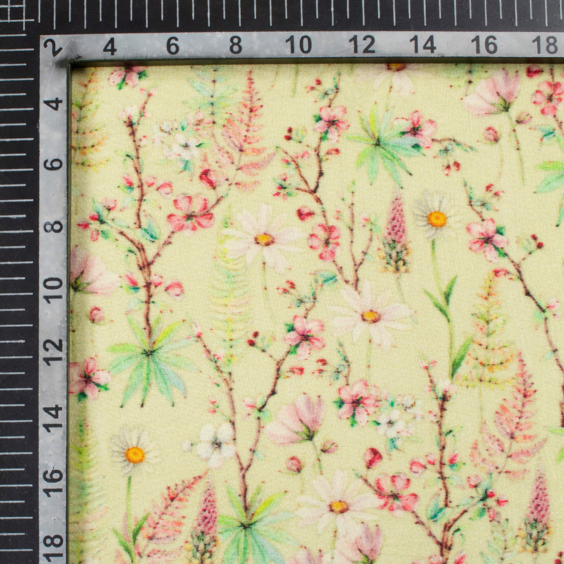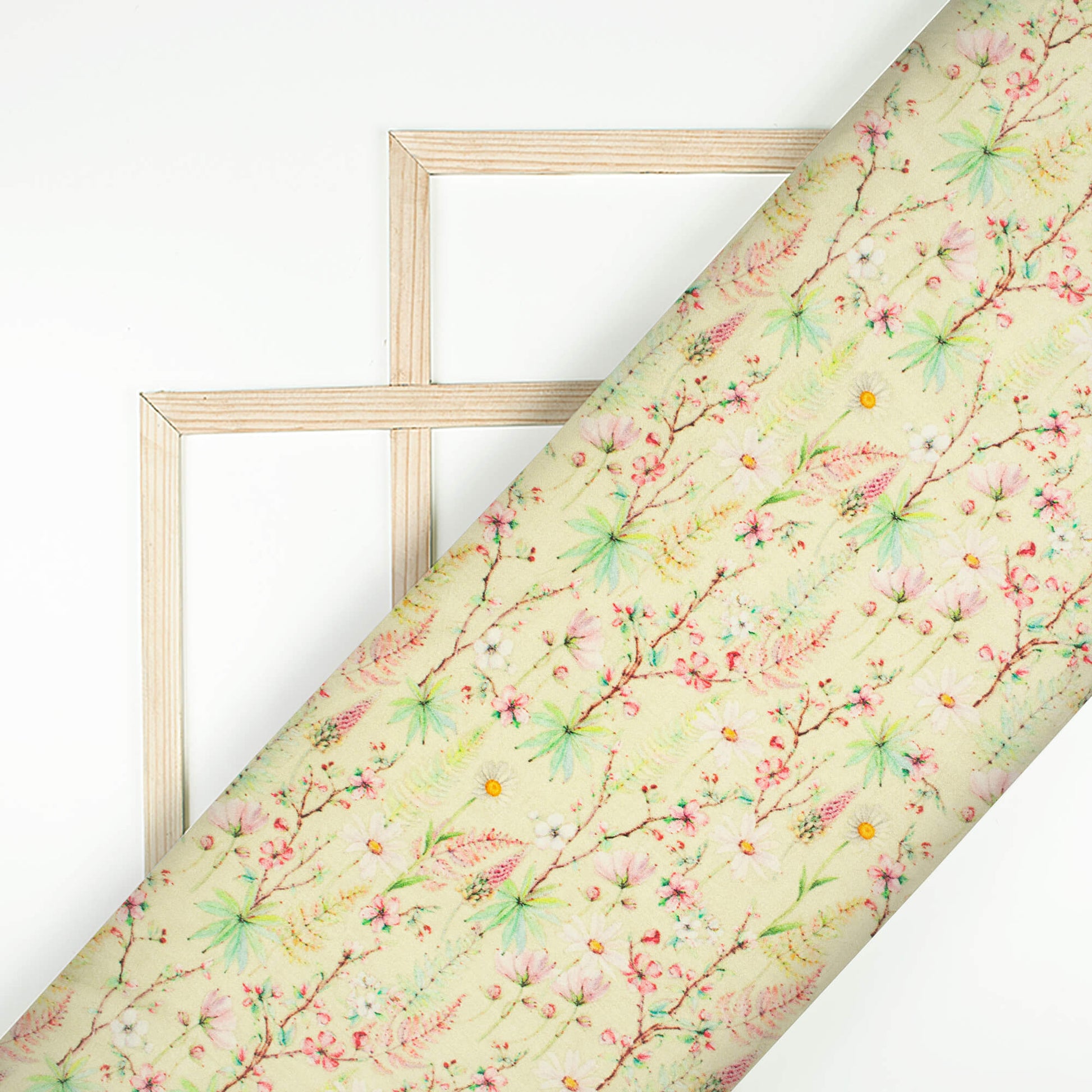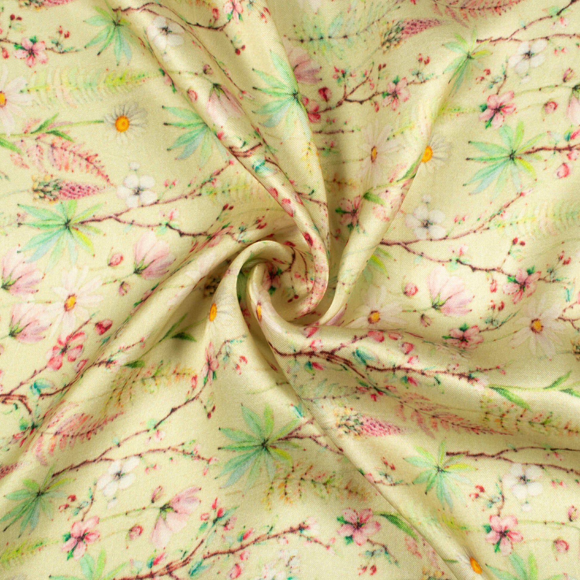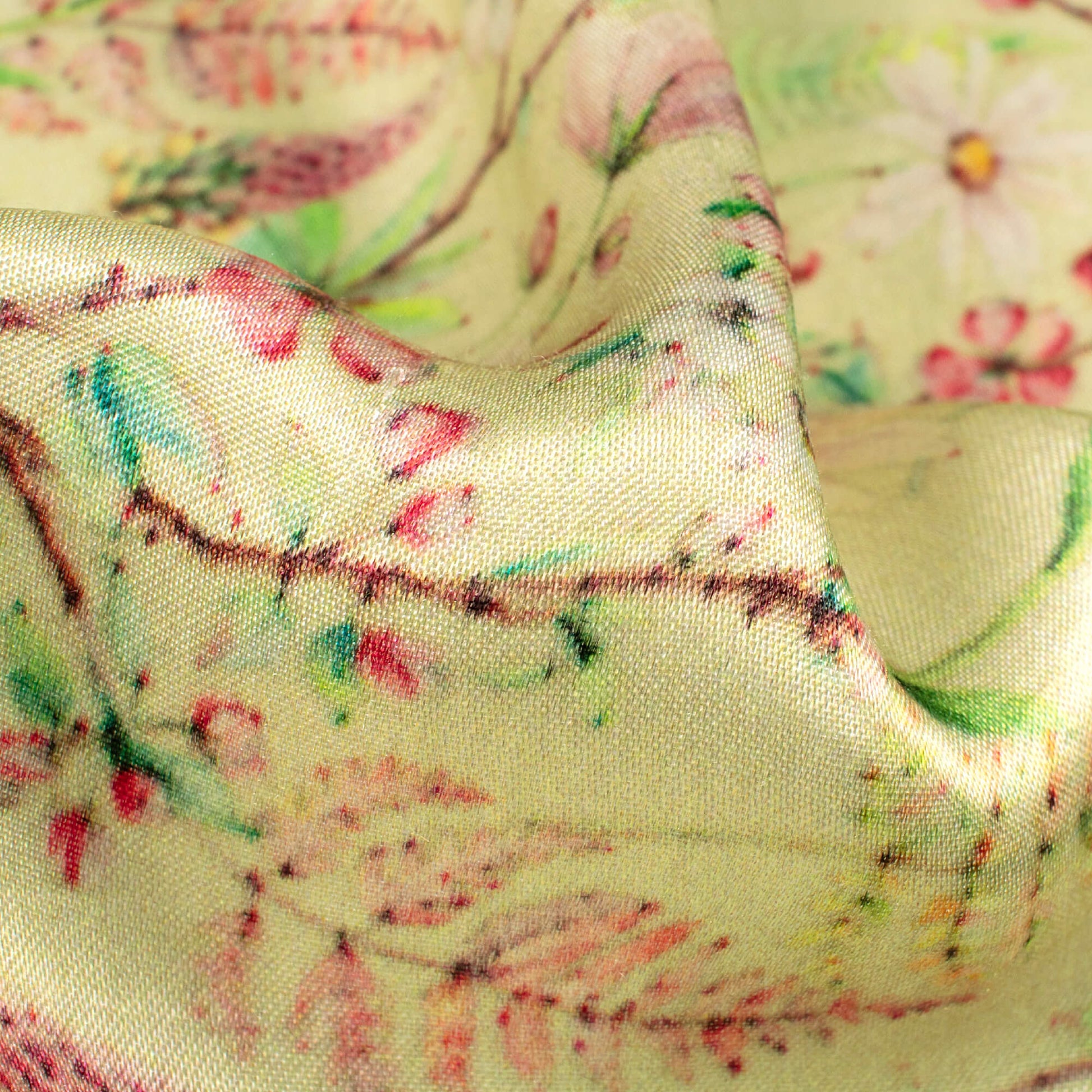 Mindaro Green And Pink Floral Pattern Digital Print Viscose Gaji Silk Fabric