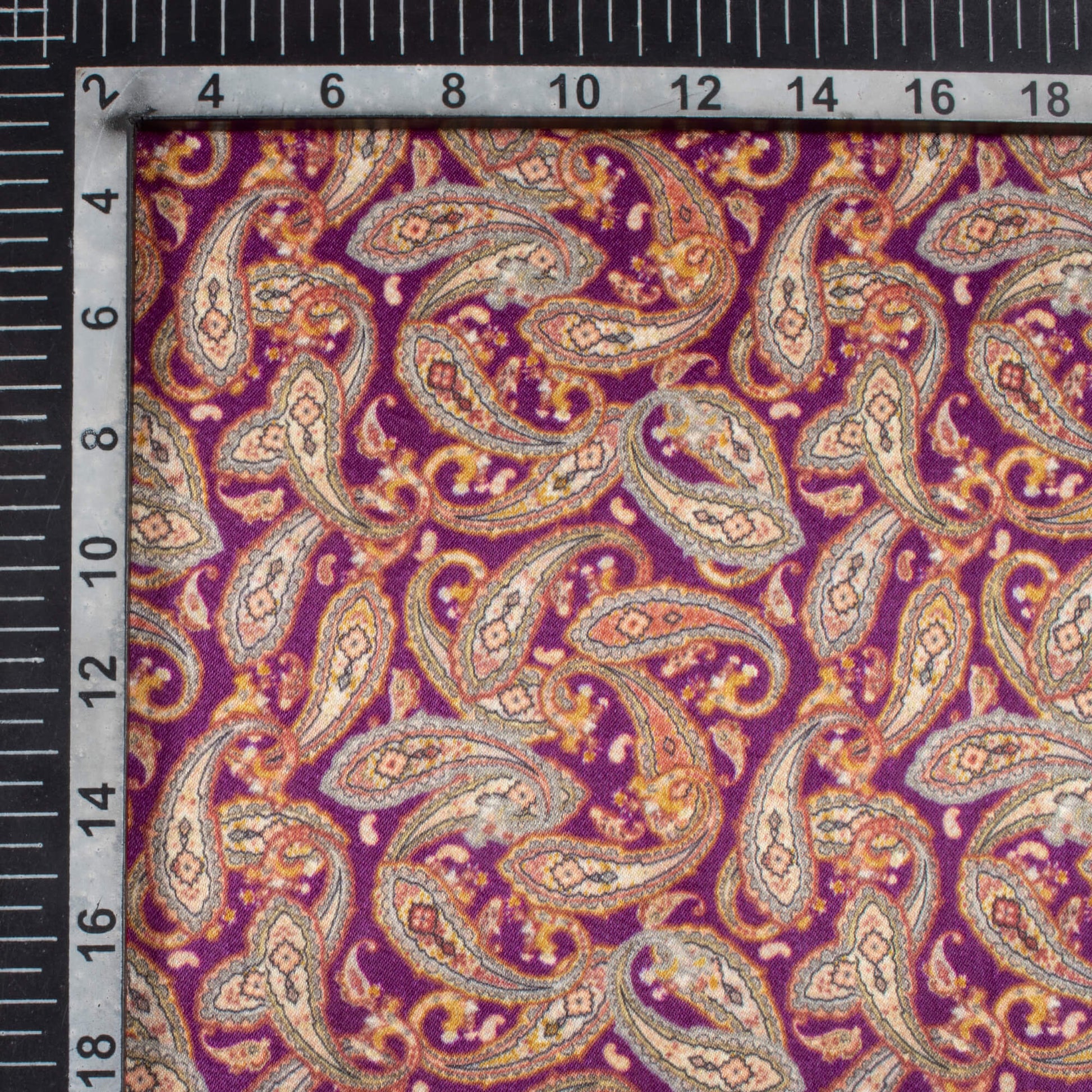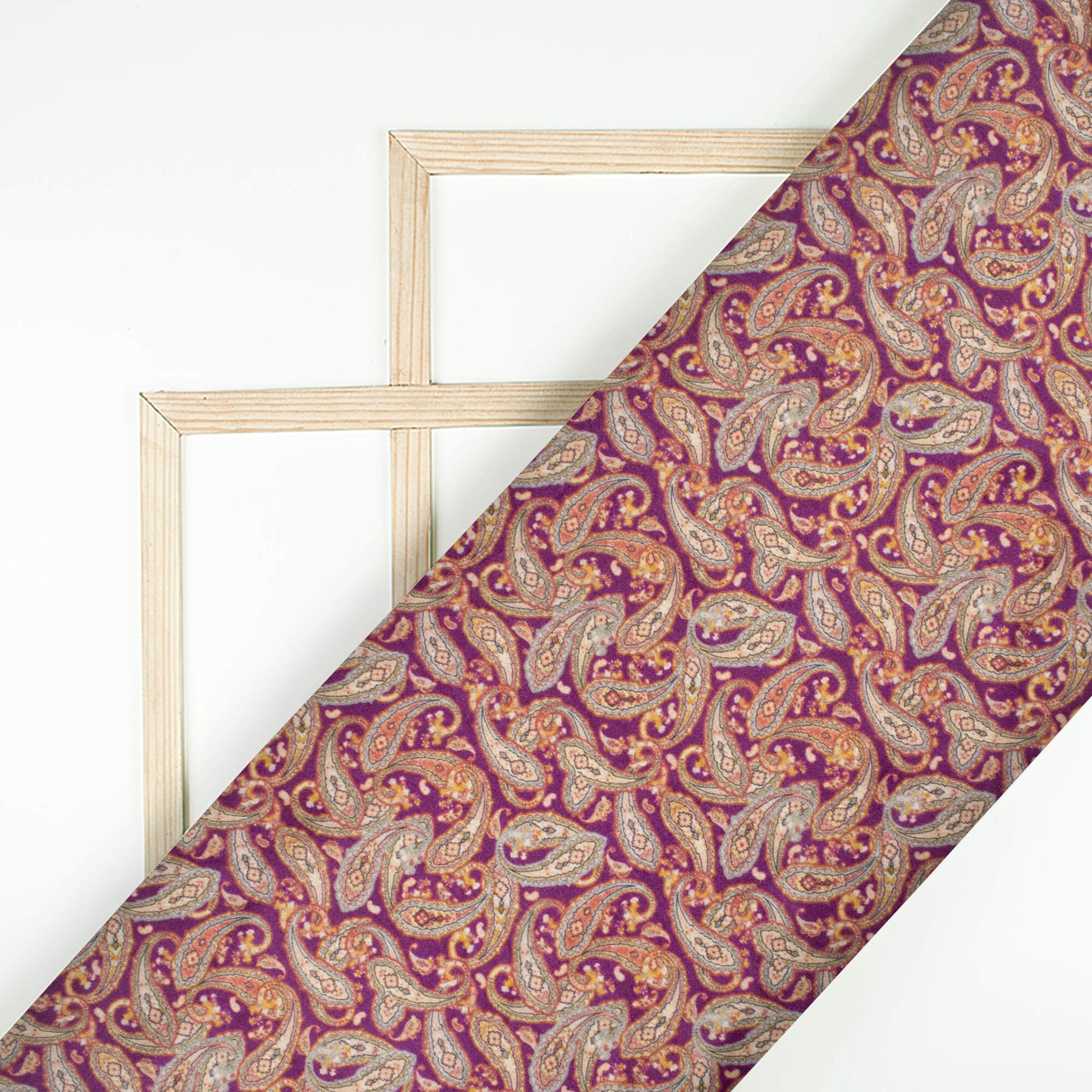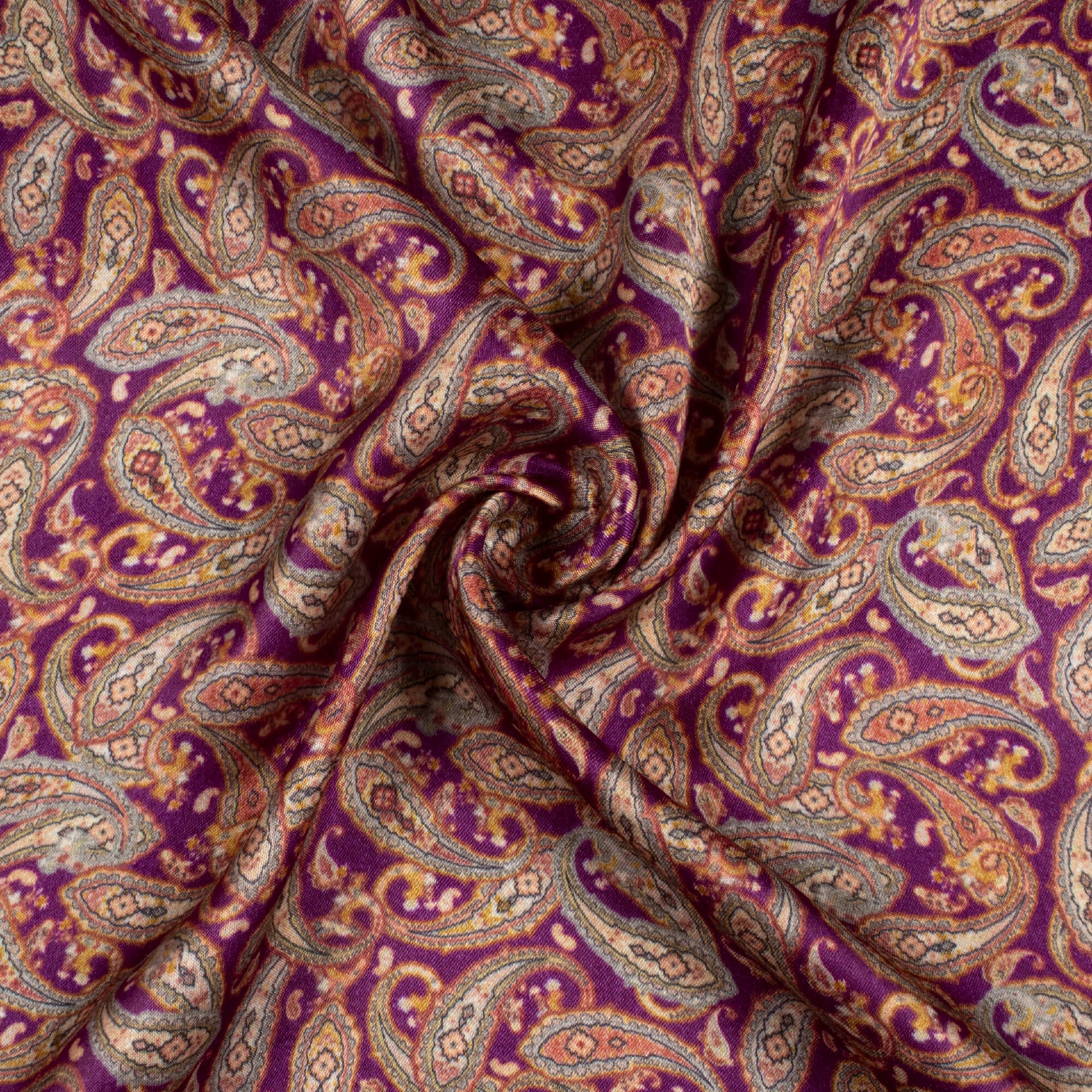 Mulberry Purple And Tea Green Paisley Pattern Digital Print Viscose Gaji Silk Fabric