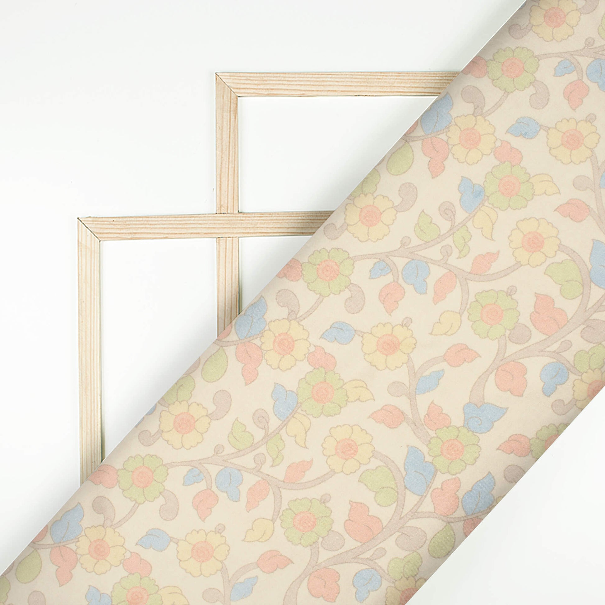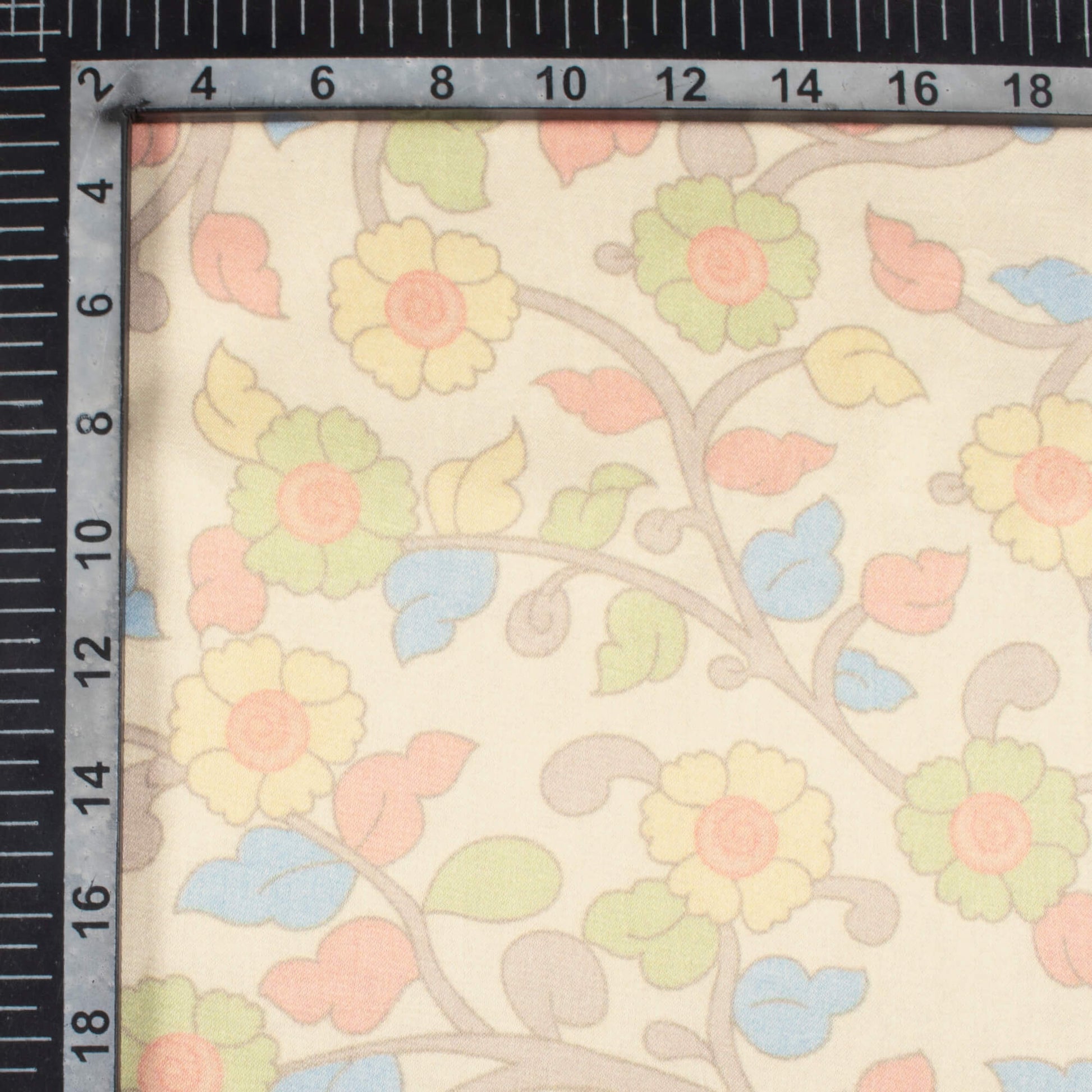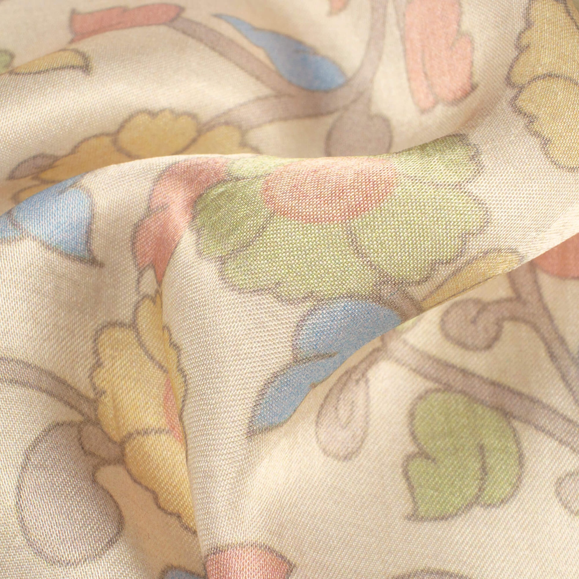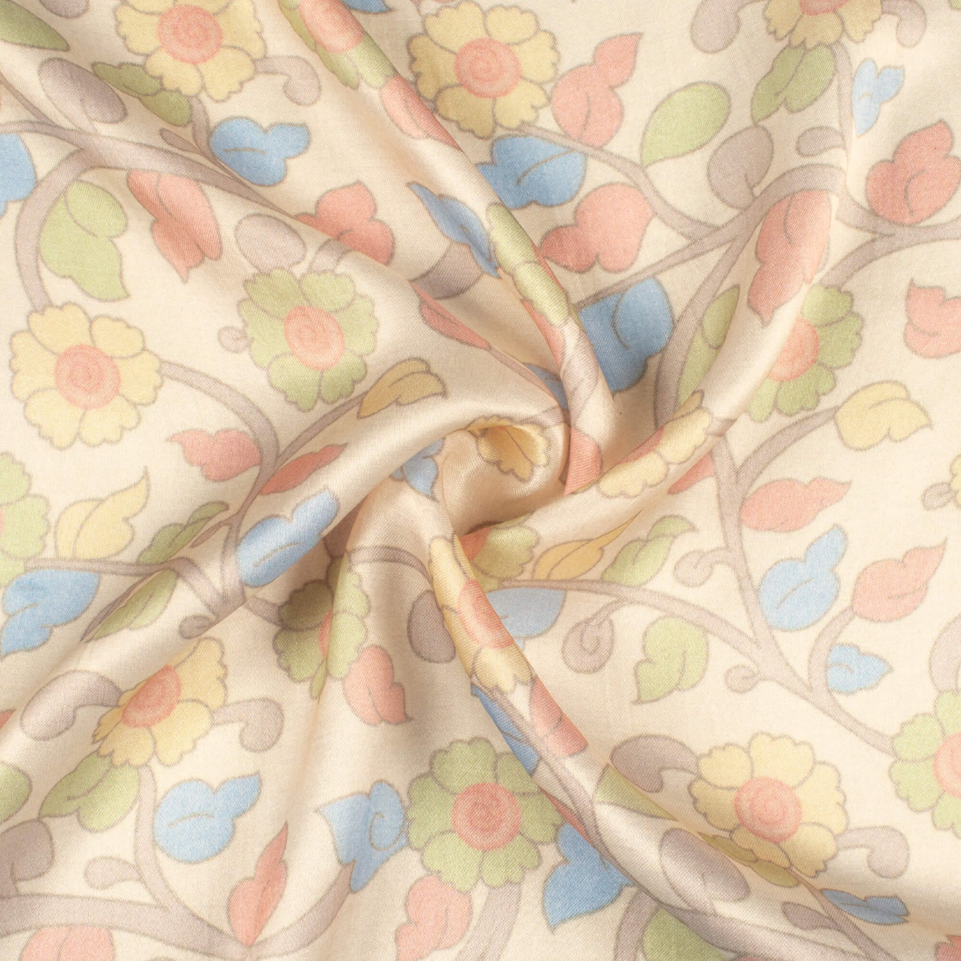 Oat Beige And Blush Red Kalamkrii Pattern Digital Print Viscose Gaji Silk Fabric