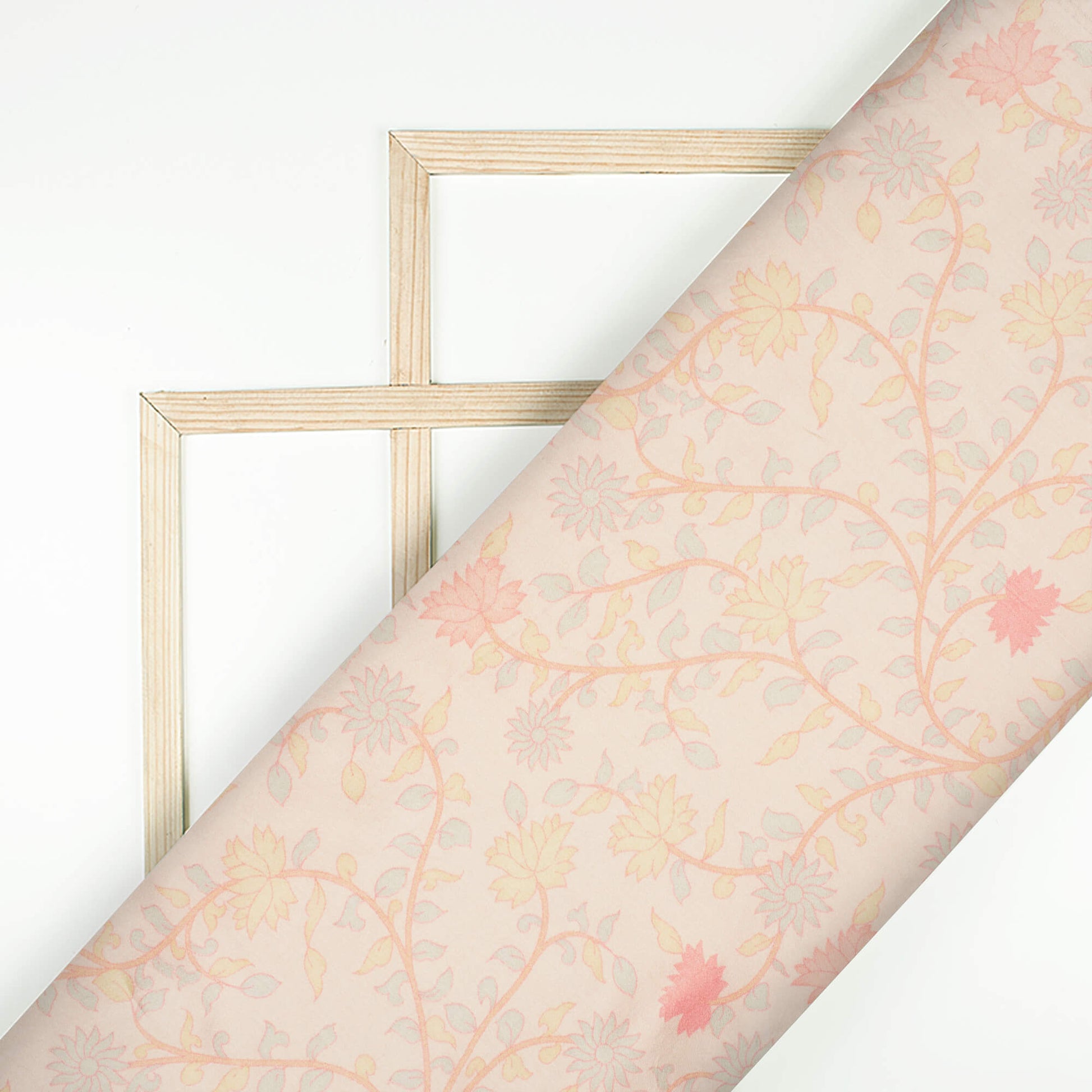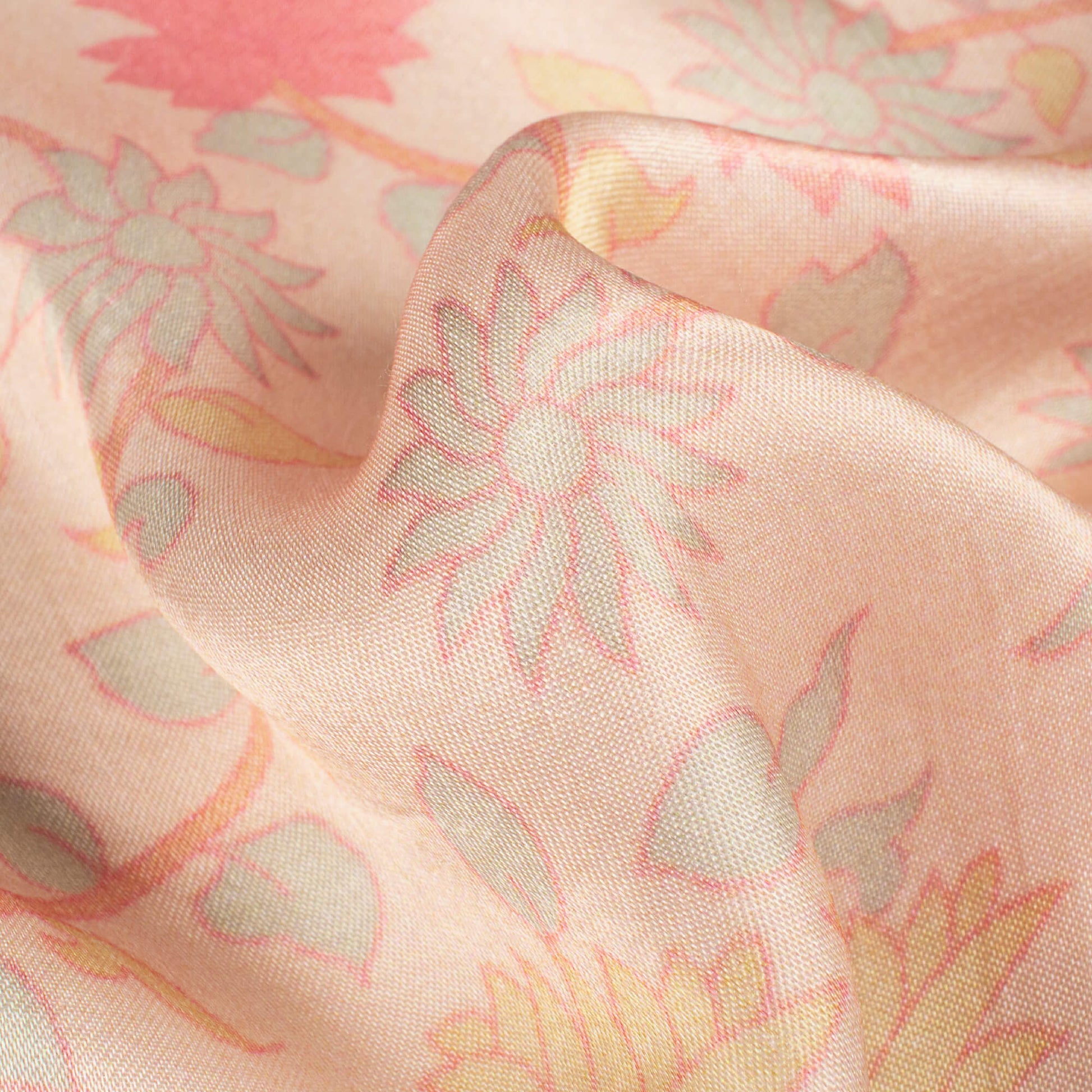 Pale Orange And Pink Floral Pattern Digital Print Viscose Gaji Silk Fabric