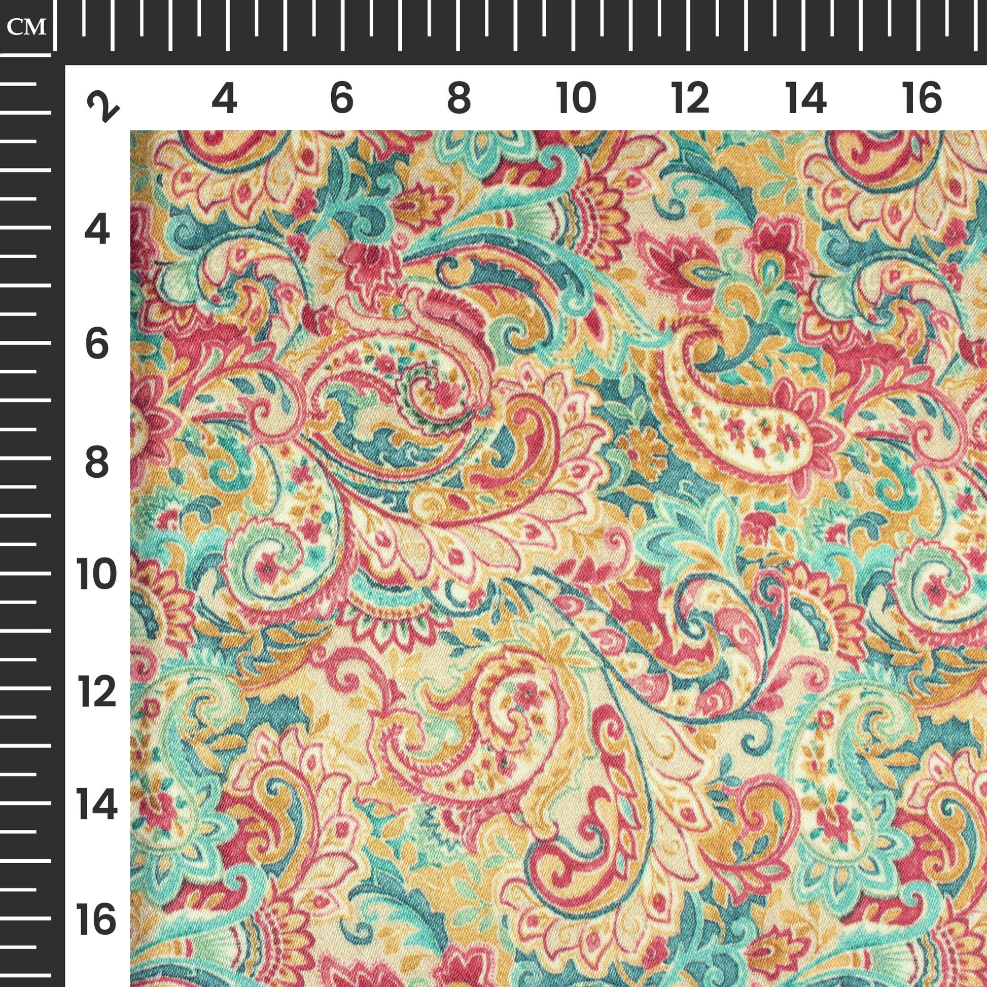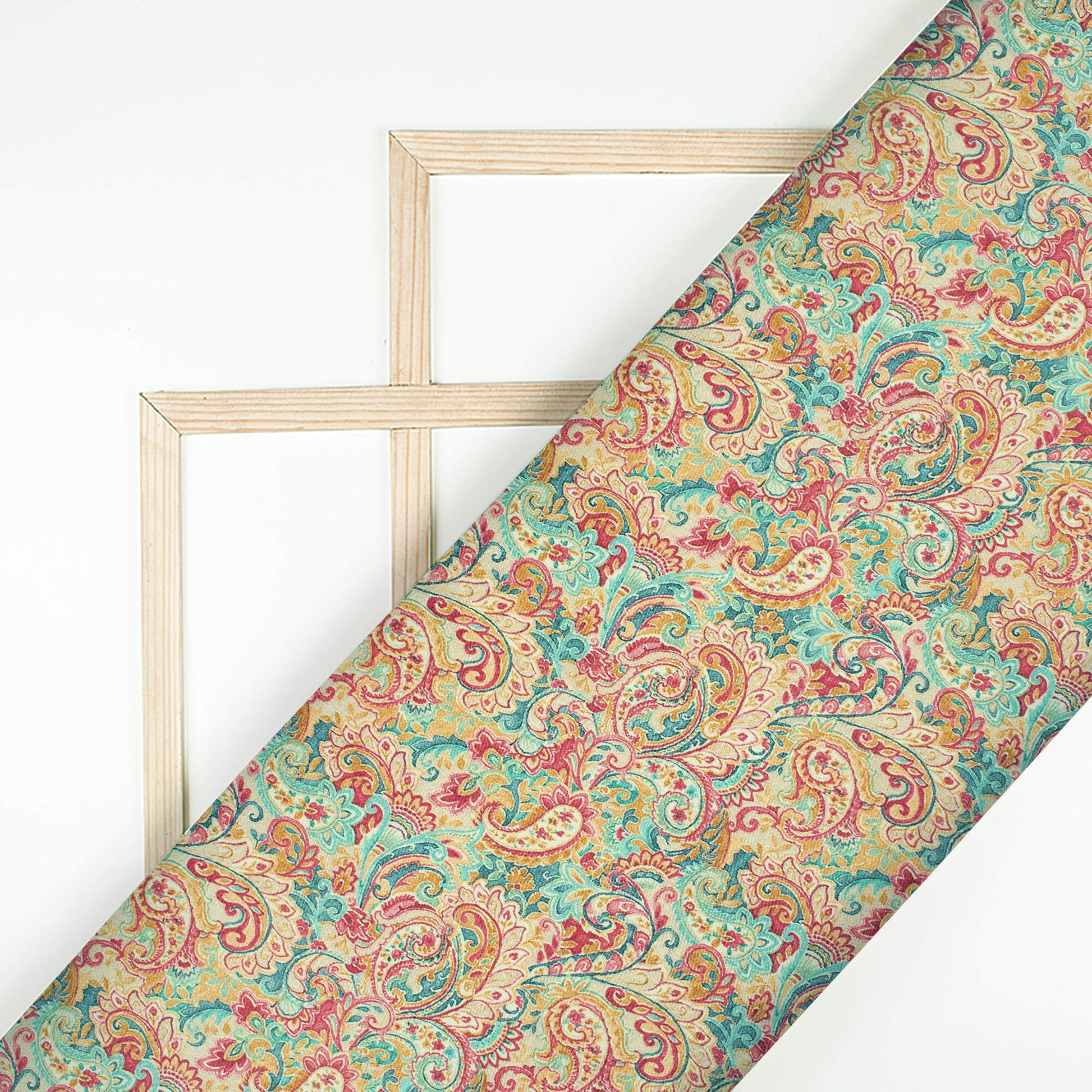 Red And Sea Green Paisley Pattern Digital Print Viscose Gaji Silk Fabric