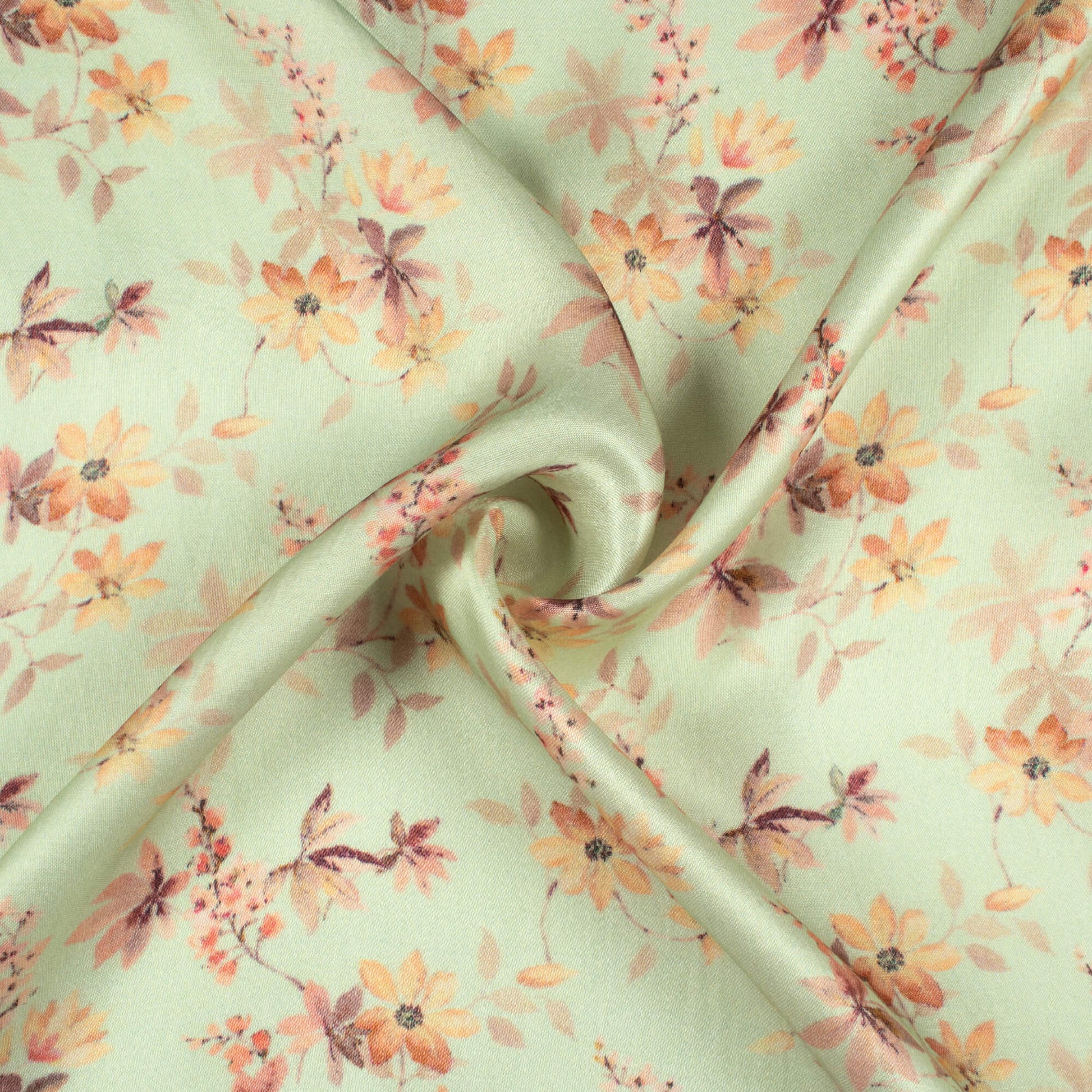 Tea Green And Careys Pink Floral Pattern Digital Print Viscose Gaji Silk Fabric