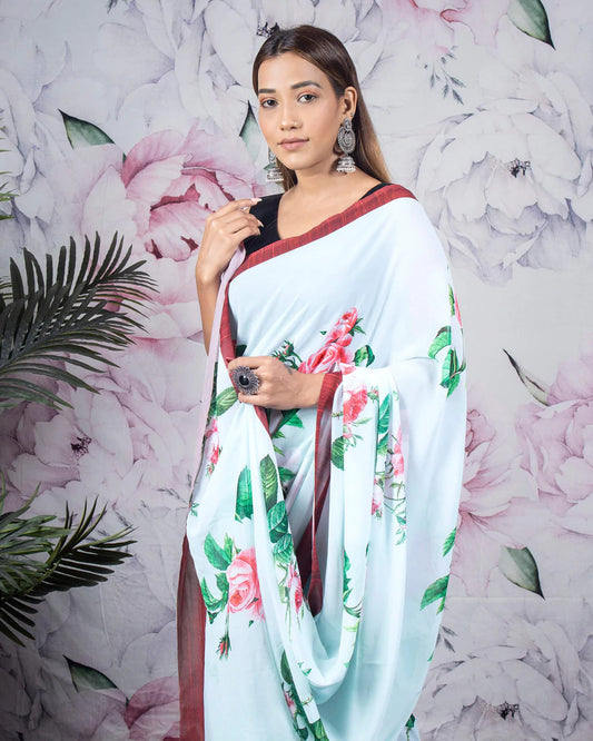 -20% offBaby Blue And Pink Floral Pattern Digital Print Georgette Saree Baby Blue And Pink Floral Pattern Digital Print Georgette Saree