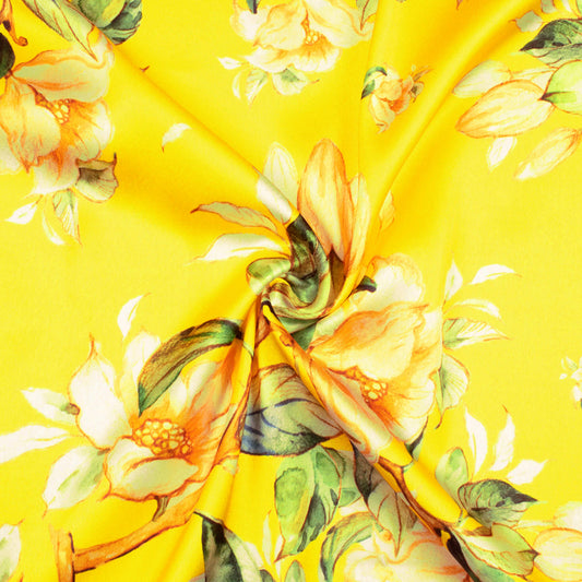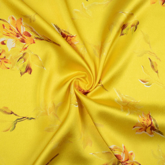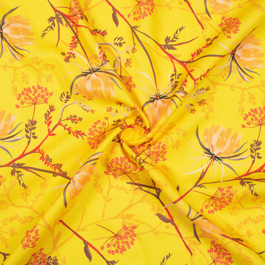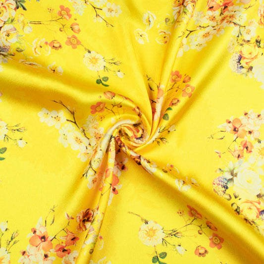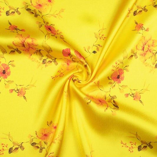 -10% offBumblebee Yellow Floral Pattern Digital Print Japan Satin Fabric Bumblebee Yellow Floral Pattern Digital Print Japan Satin Fabric