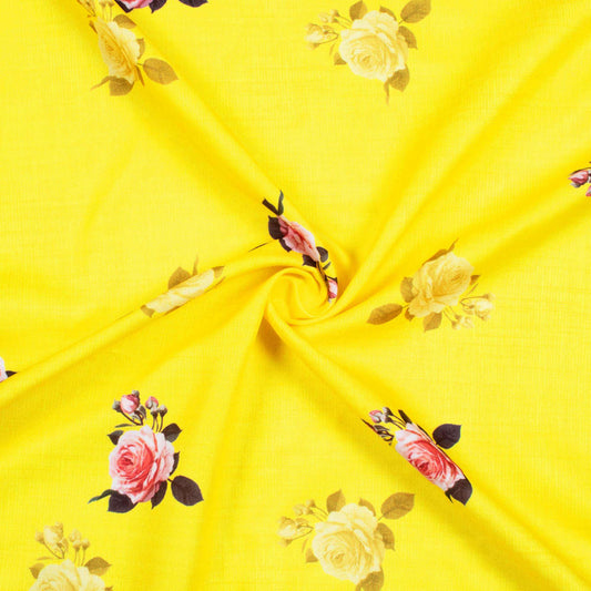 Bright Yellow And Punch Pink Floral Pattern Digital Print Ultra Premium Butter Crepe Fabric Bright Yellow And Punch Pink Floral Pattern Digital Print Ultra Premium Butter Crepe Fabric