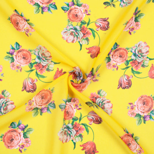 -10% offBright Yellow And Peach Floral Pattern Digital Print Georgette Fabric Bright Yellow And Peach Floral Pattern Digital Print Georgette Fabric