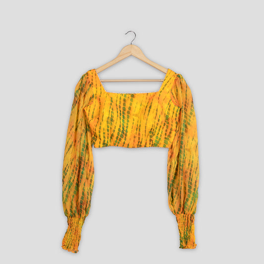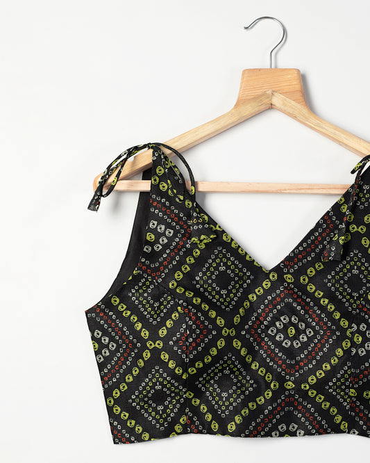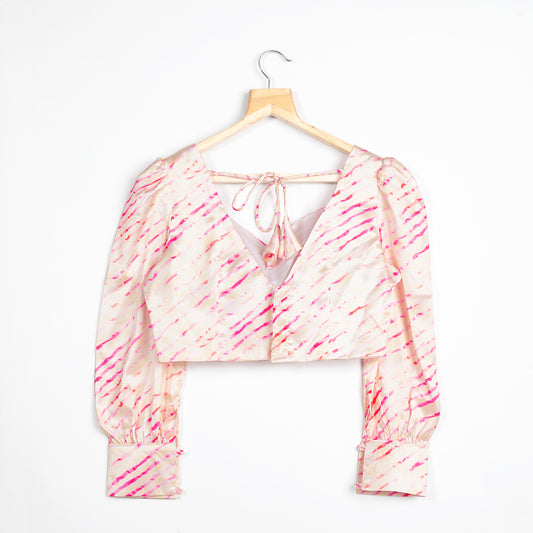 Worldly Wonder: Bandhanii Blouse With Shawl Collar Worldly Wonder: Bandhanii Blouse With Shawl Collar