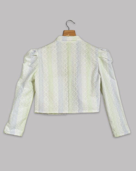 Floral Embroidery Puff Sleeve Jacket