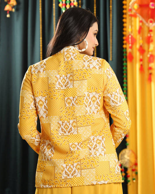 Geometric Floral Embroidery Work Yellow Women's Jacket Geometric Floral Embroidery Work Yellow Women's Jacket