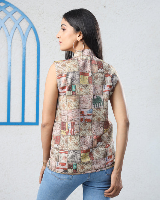 -10% offDevi Drape: Women's Ikkat Printed Reversible Jacket Devi Drape: Women's Ikkat Printed Reversible Jacket