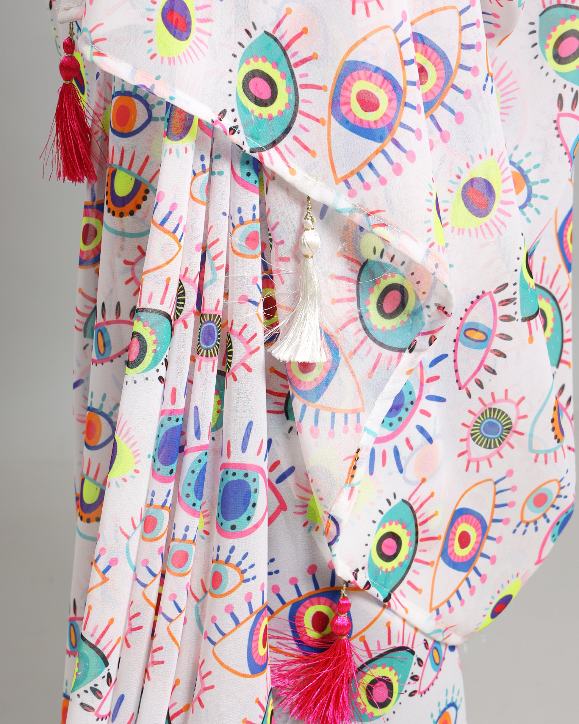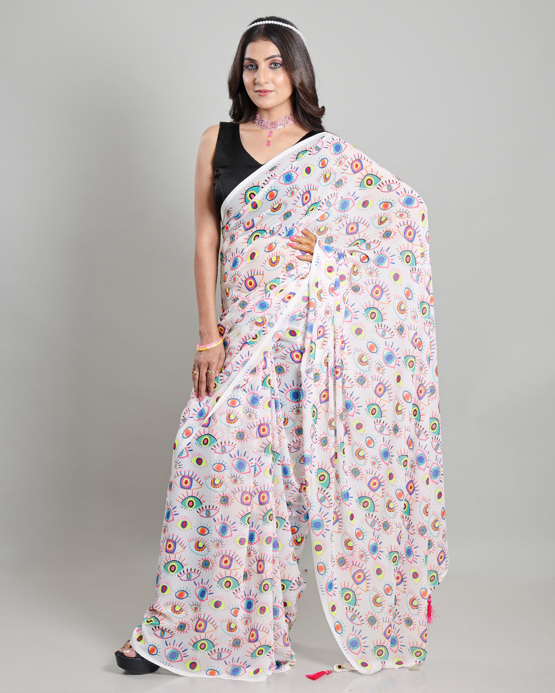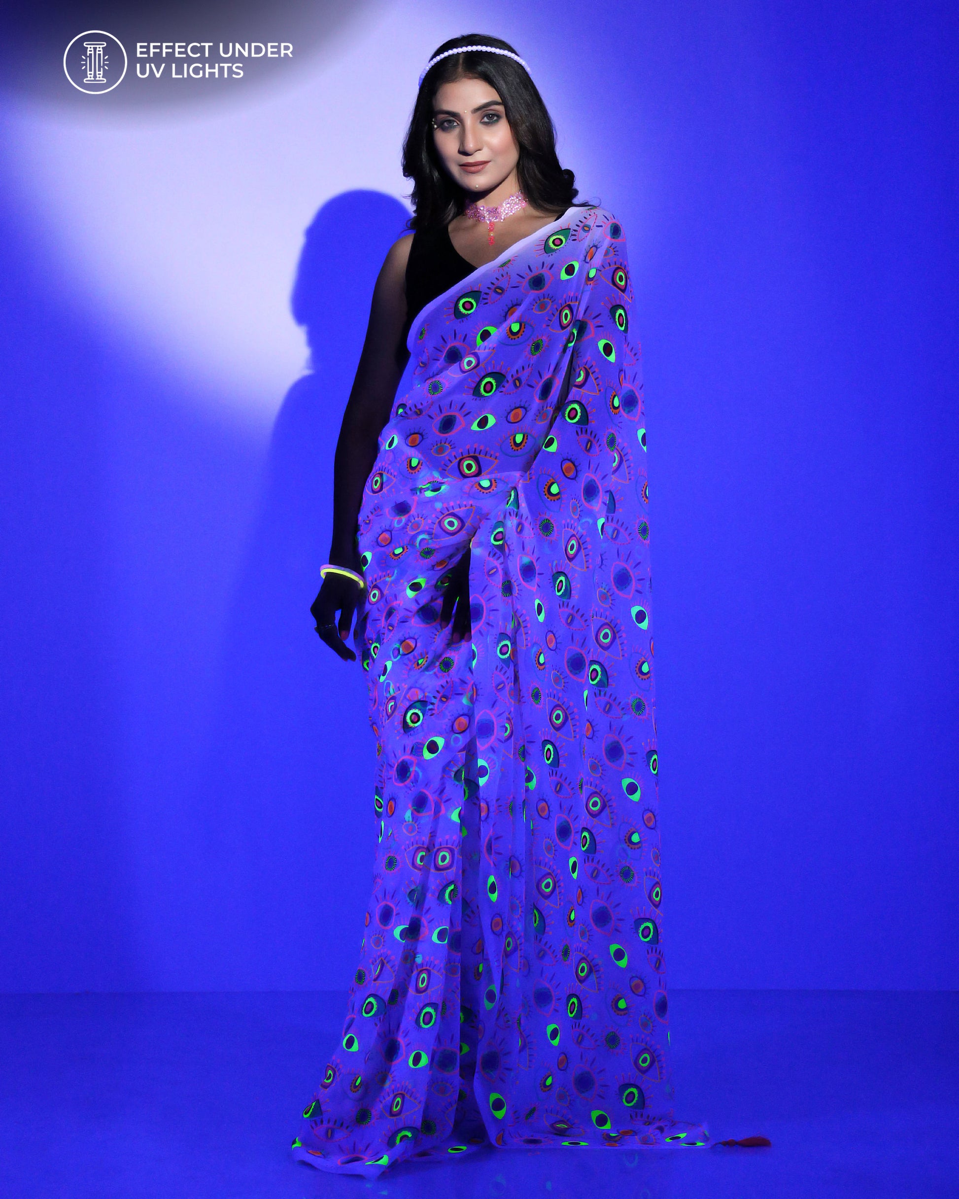 A Touch Of Neon Magic: Evil Eye Georgette Saree