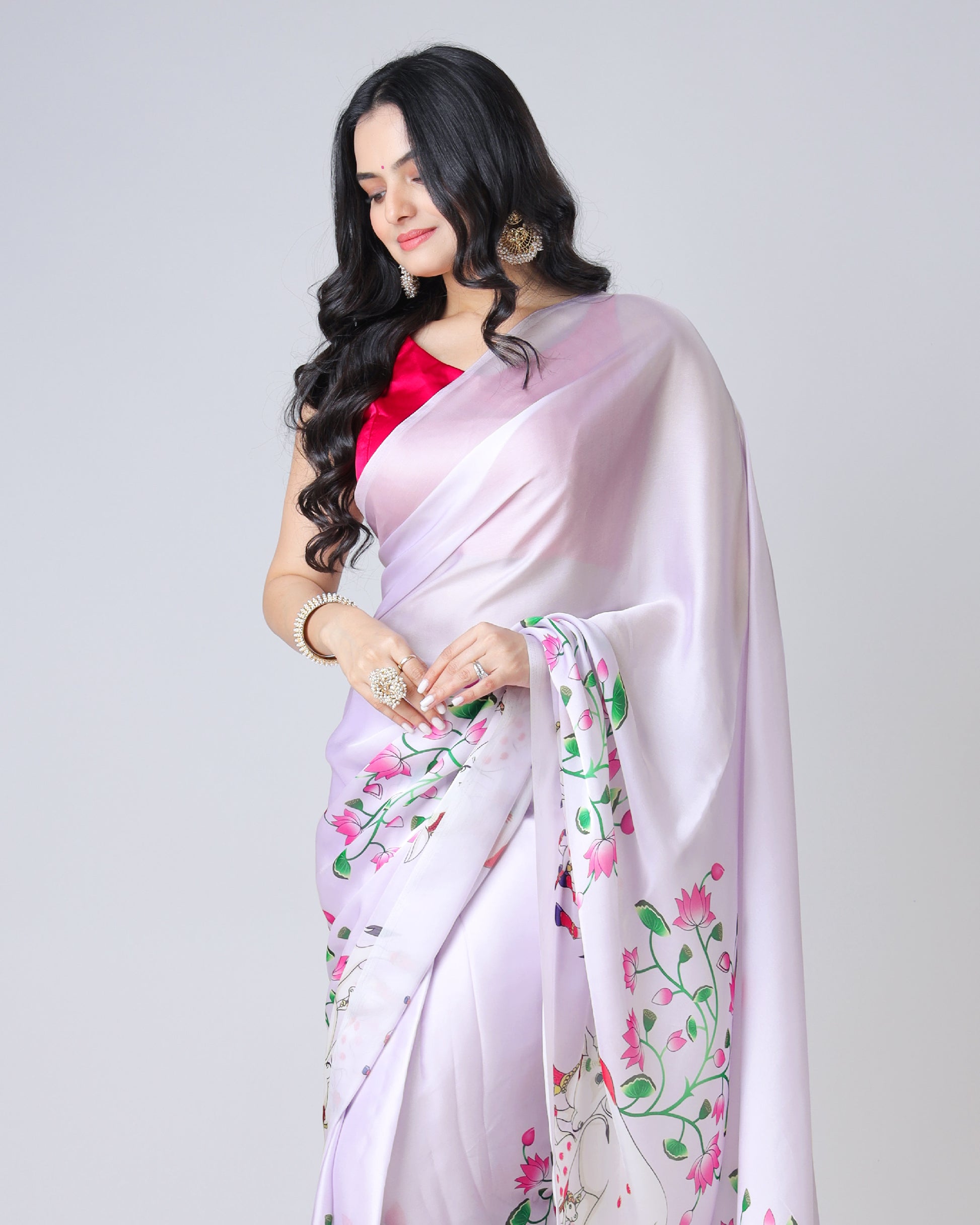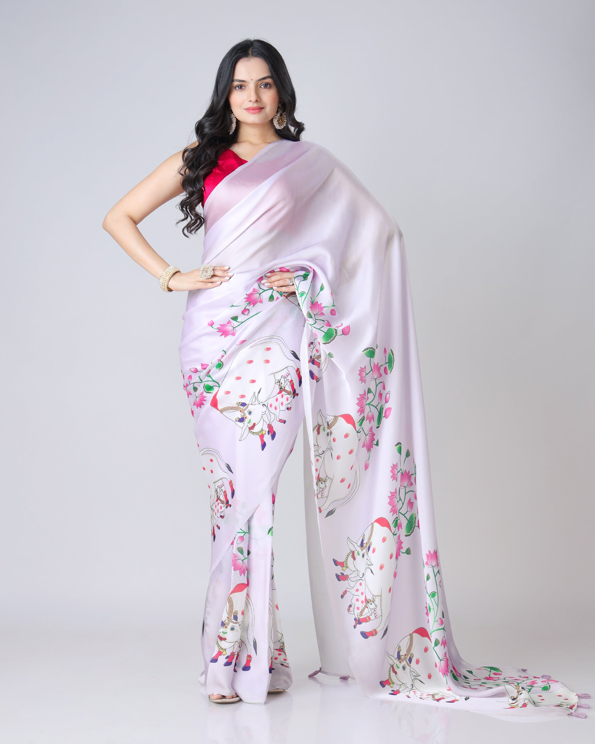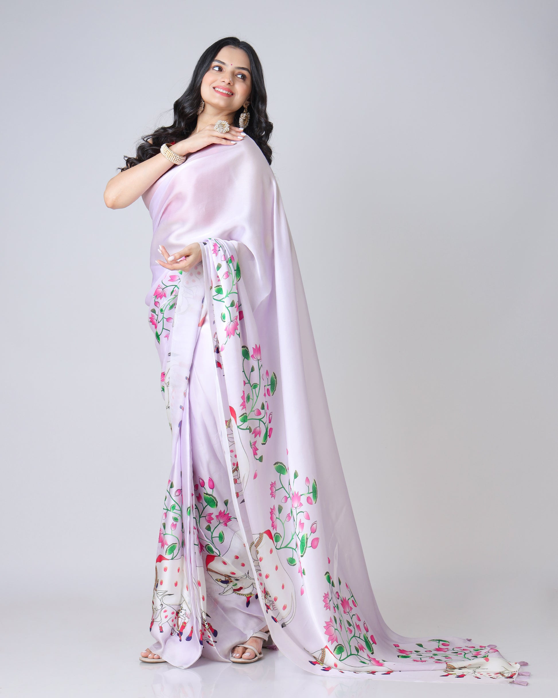A Touch of Tradition: Georgette Satin Saree with Pichwaii Art