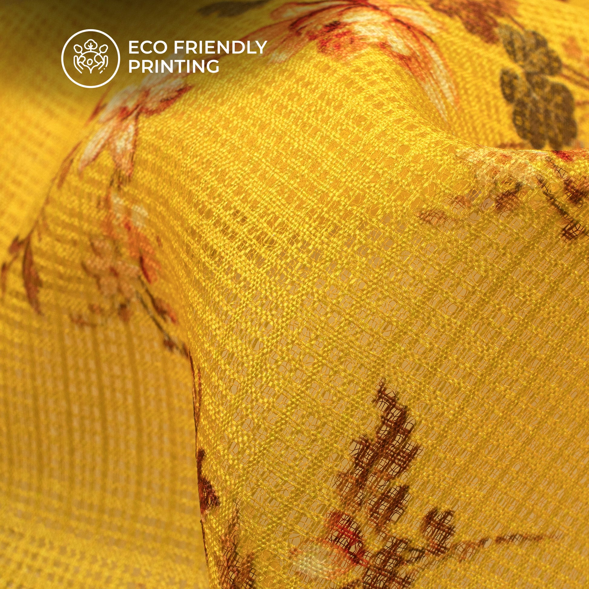 Attractive Yellow Floral Digital Print Kota Doria Fabric