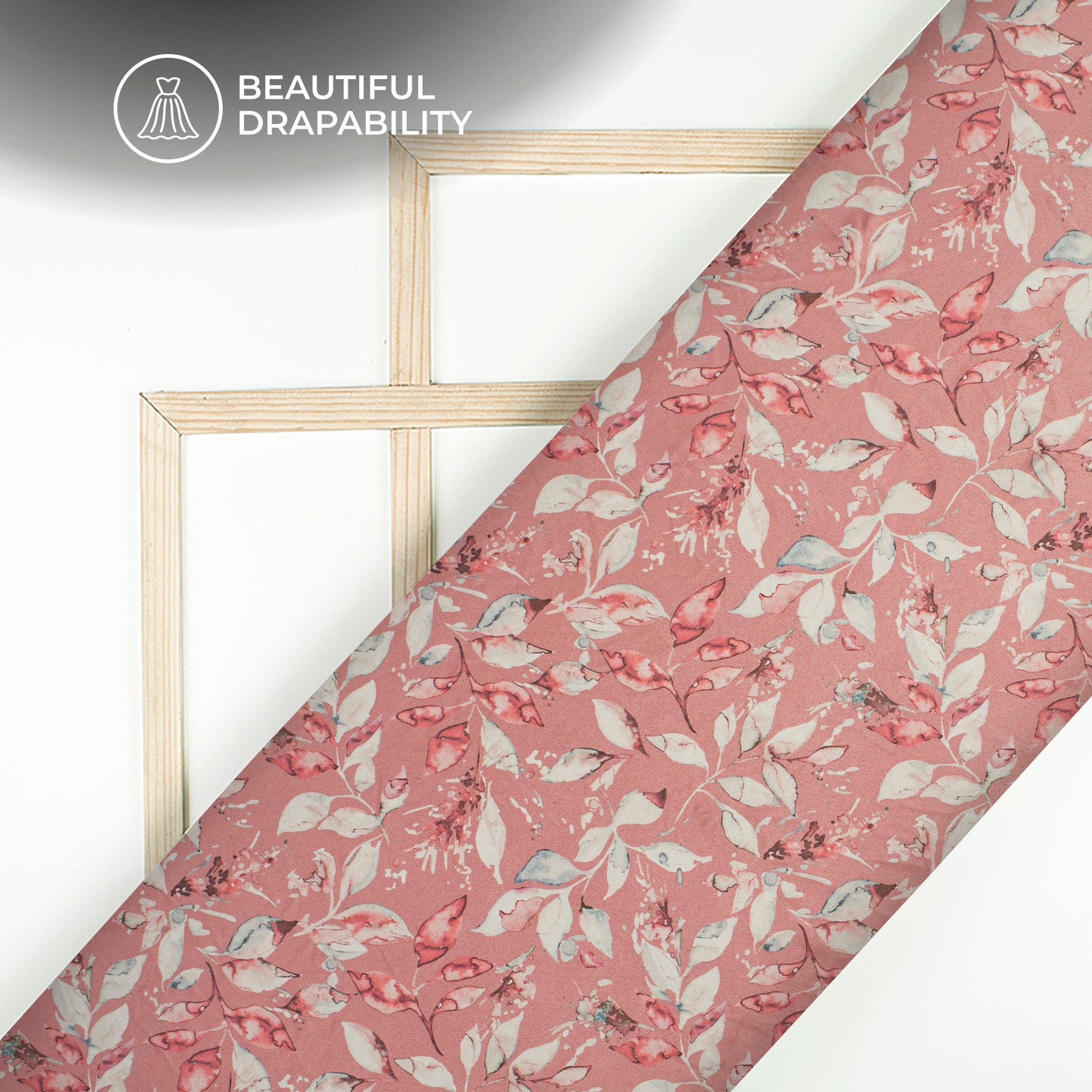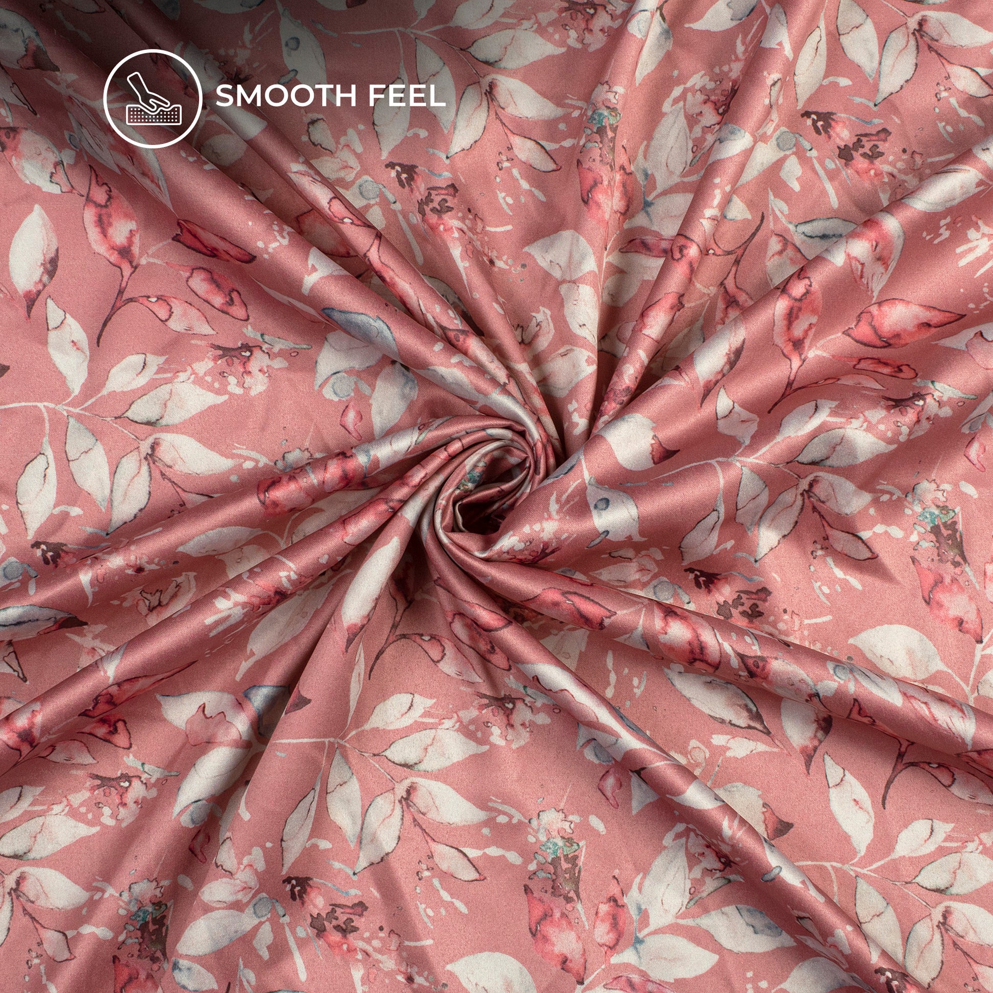 Trendy Leafage Digital Print Charmeuse Satin Fabric (Width 58 Inches)