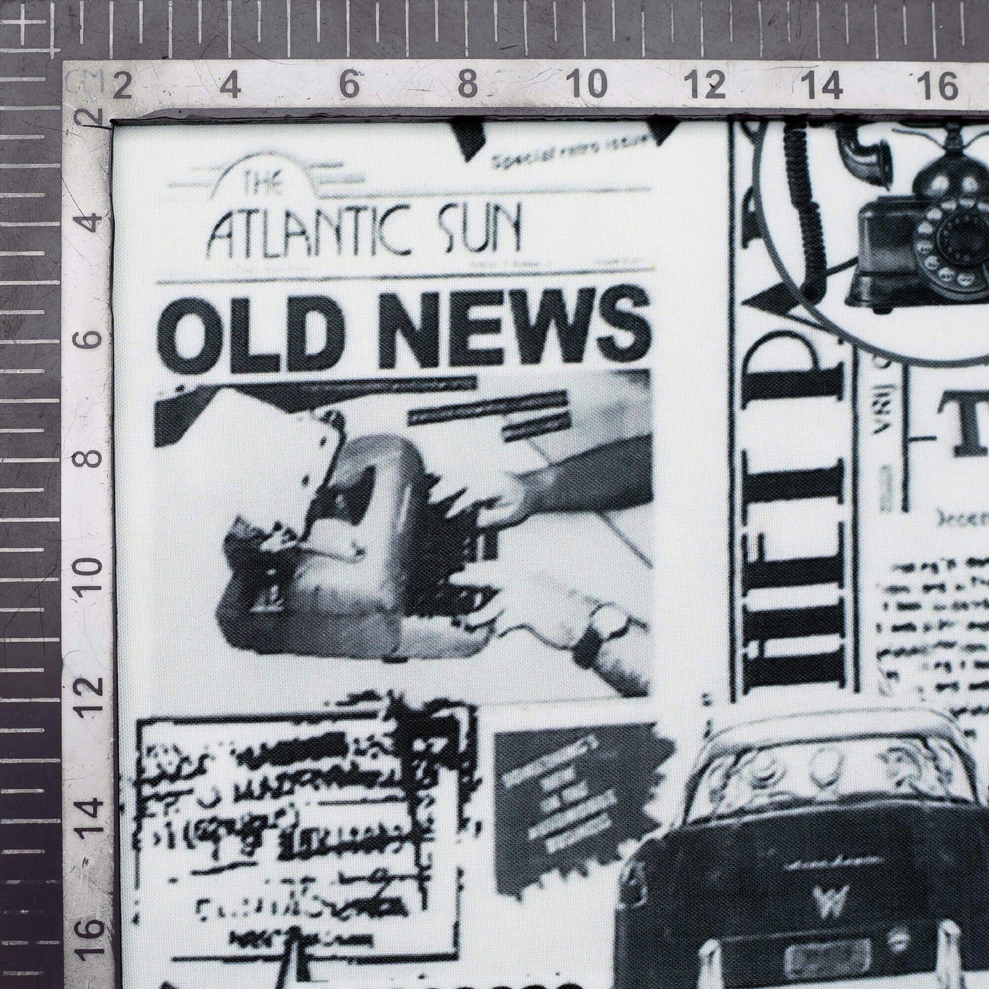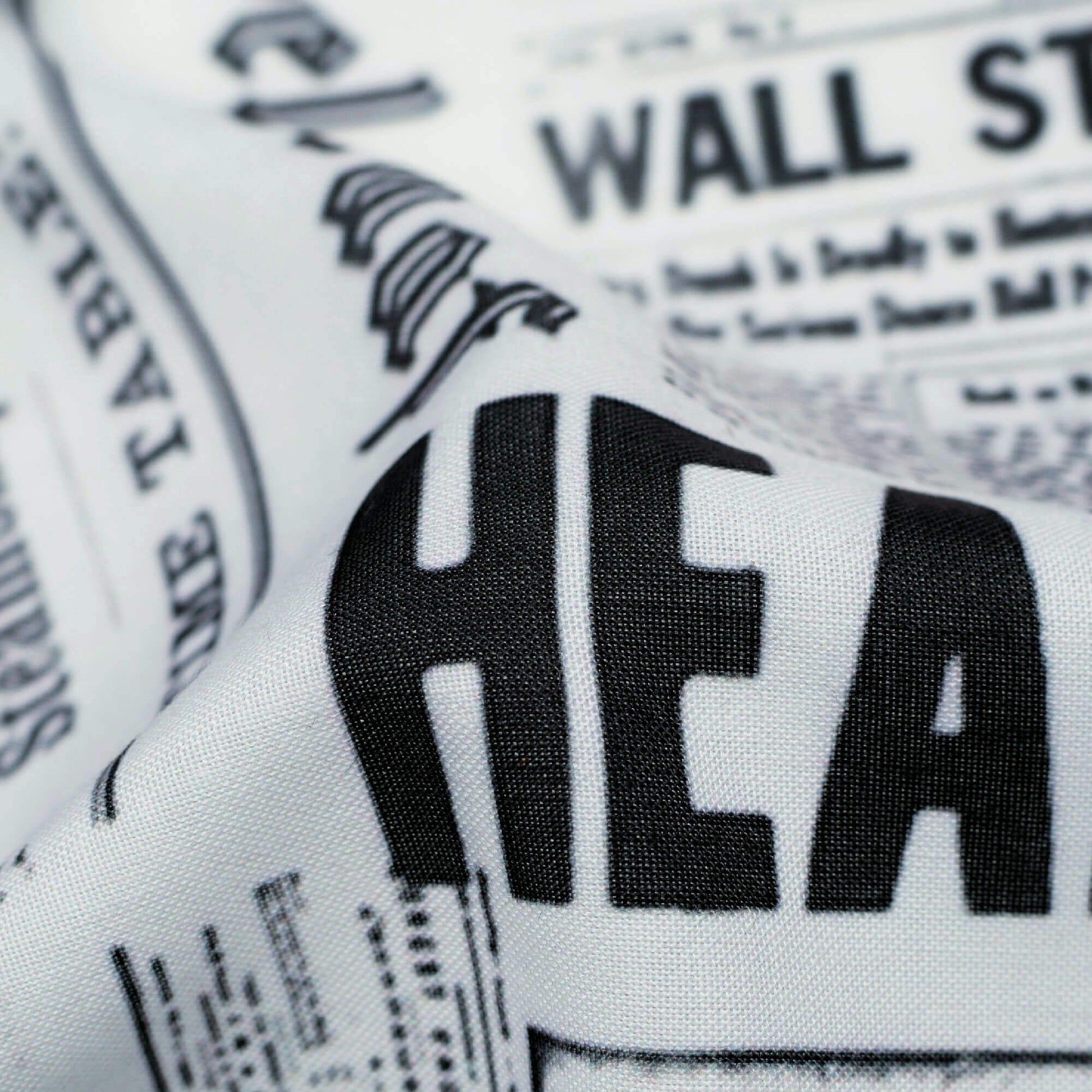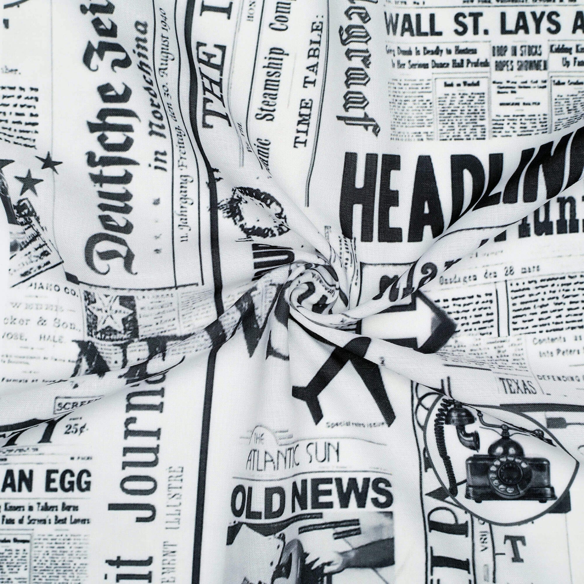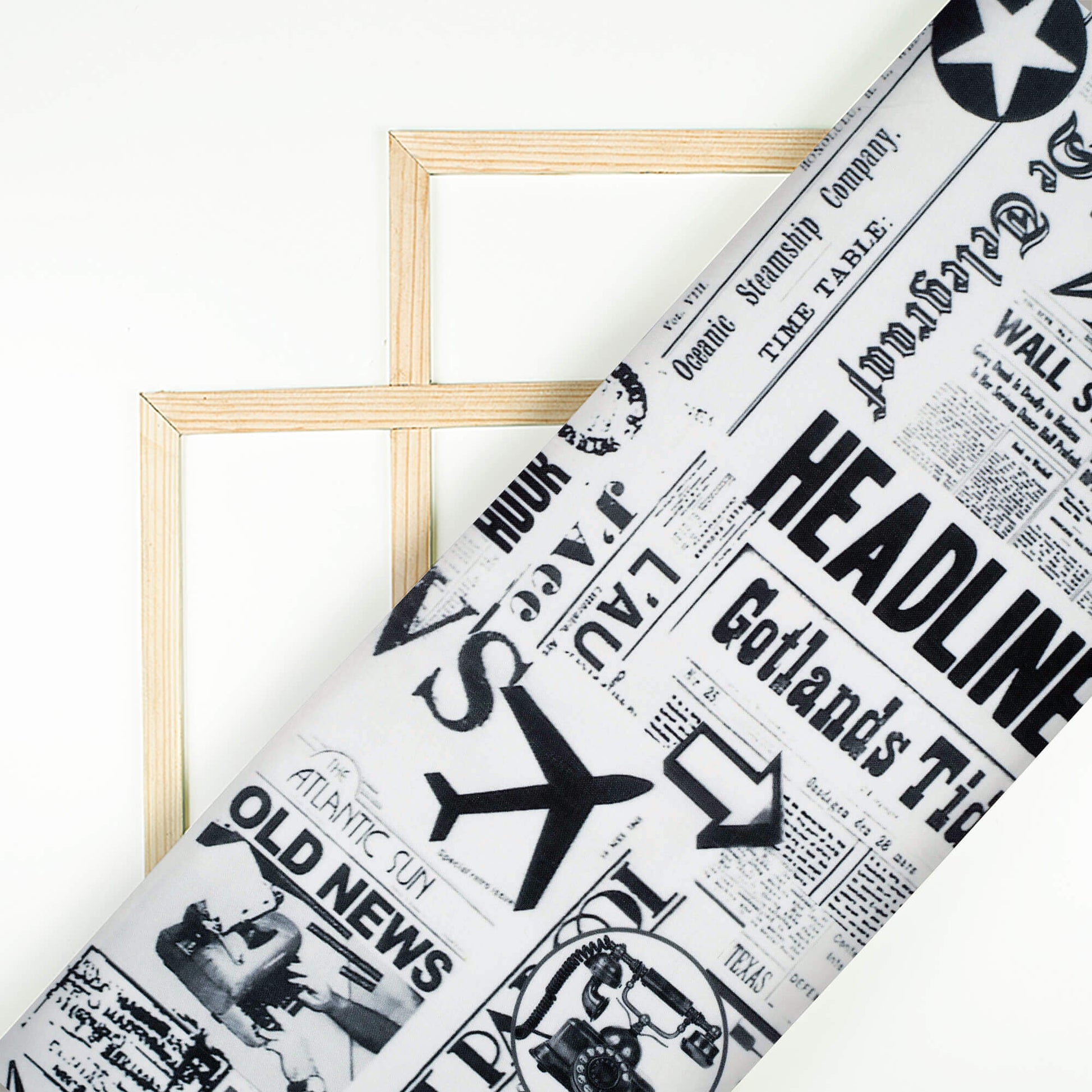 White And Black Newspaper Pattern Digital Print Rayon Fabric
