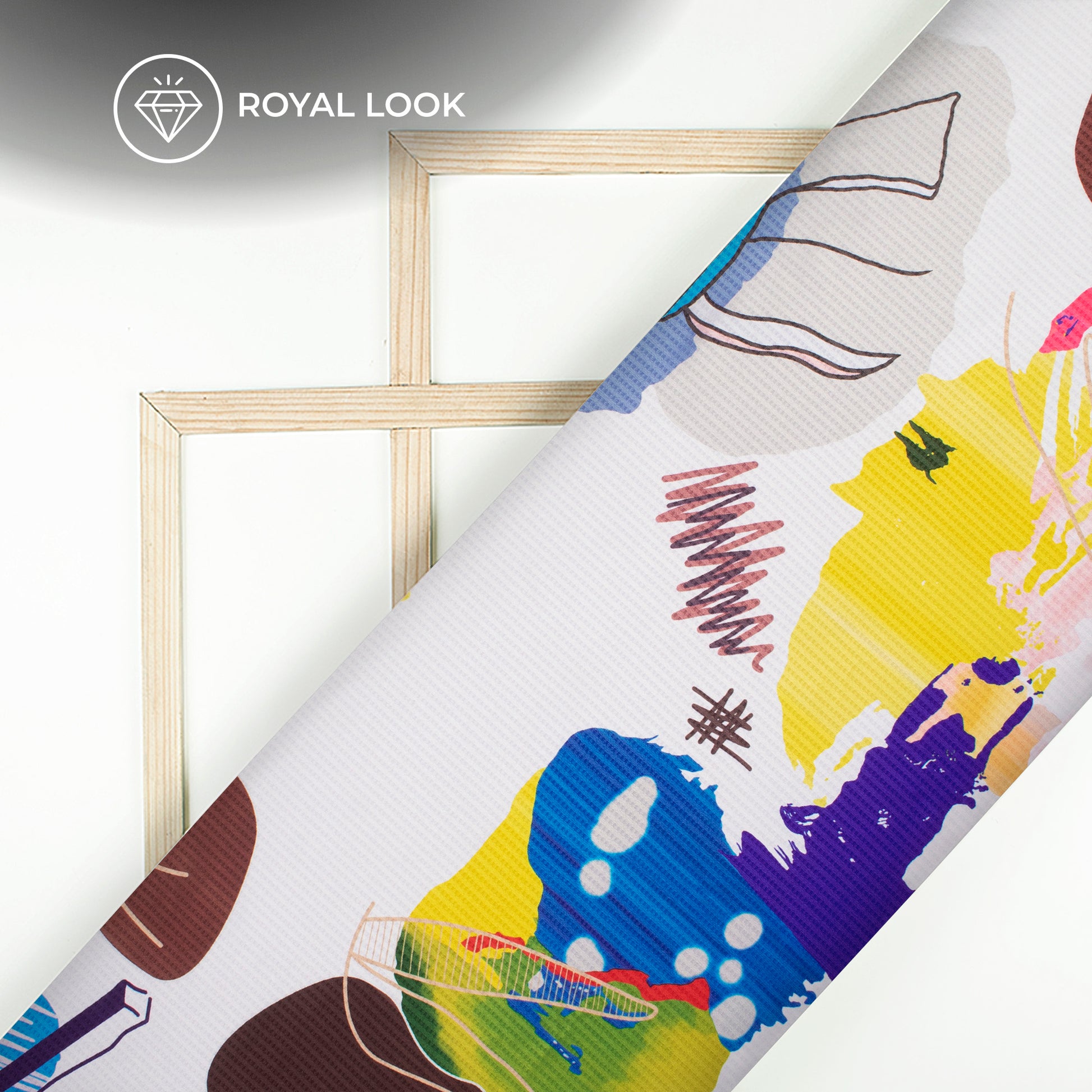 White And Orange Quirky Pattern Digital Print Sherwani Fabric