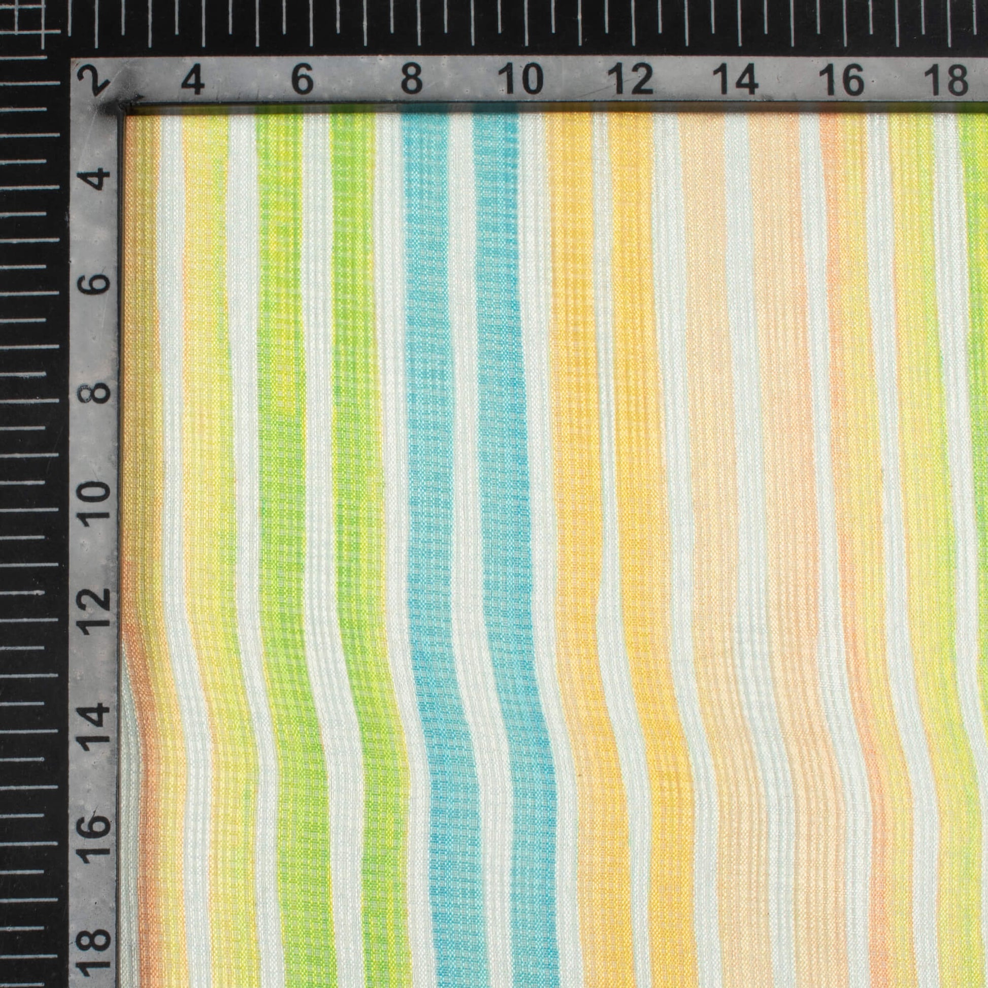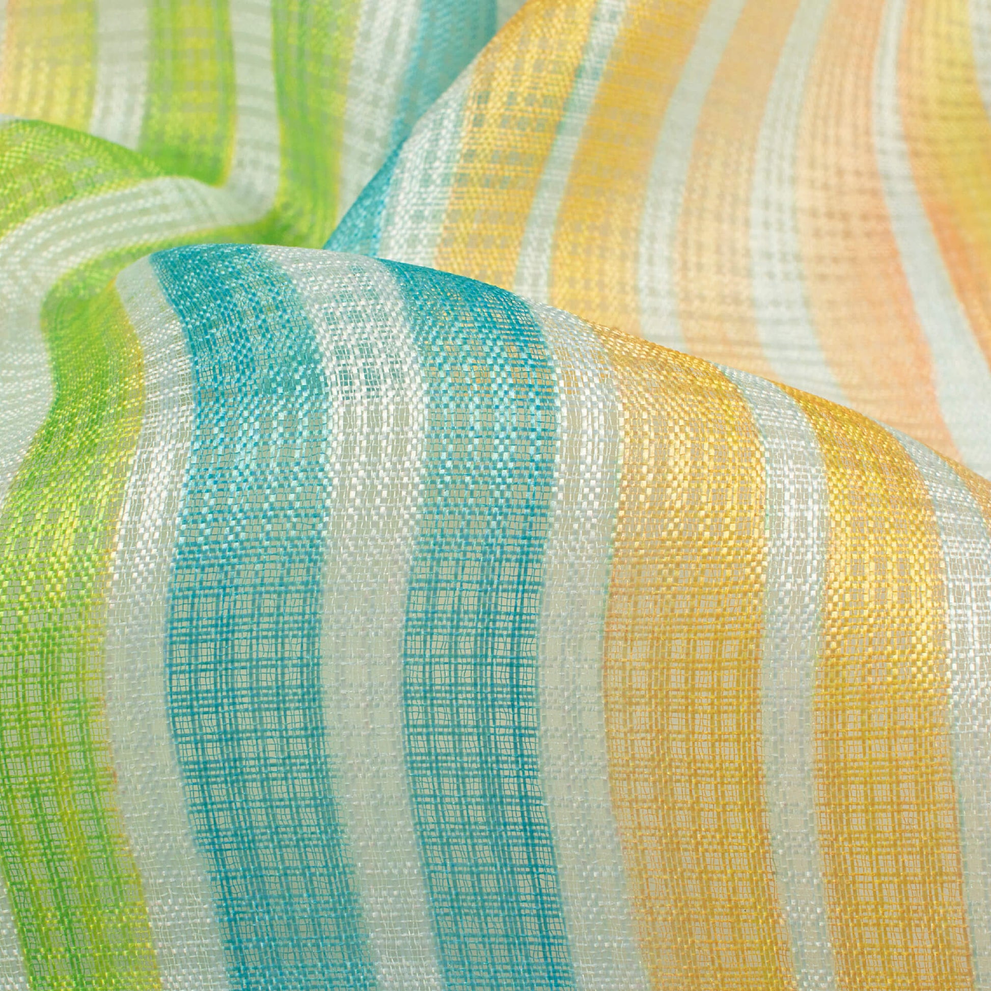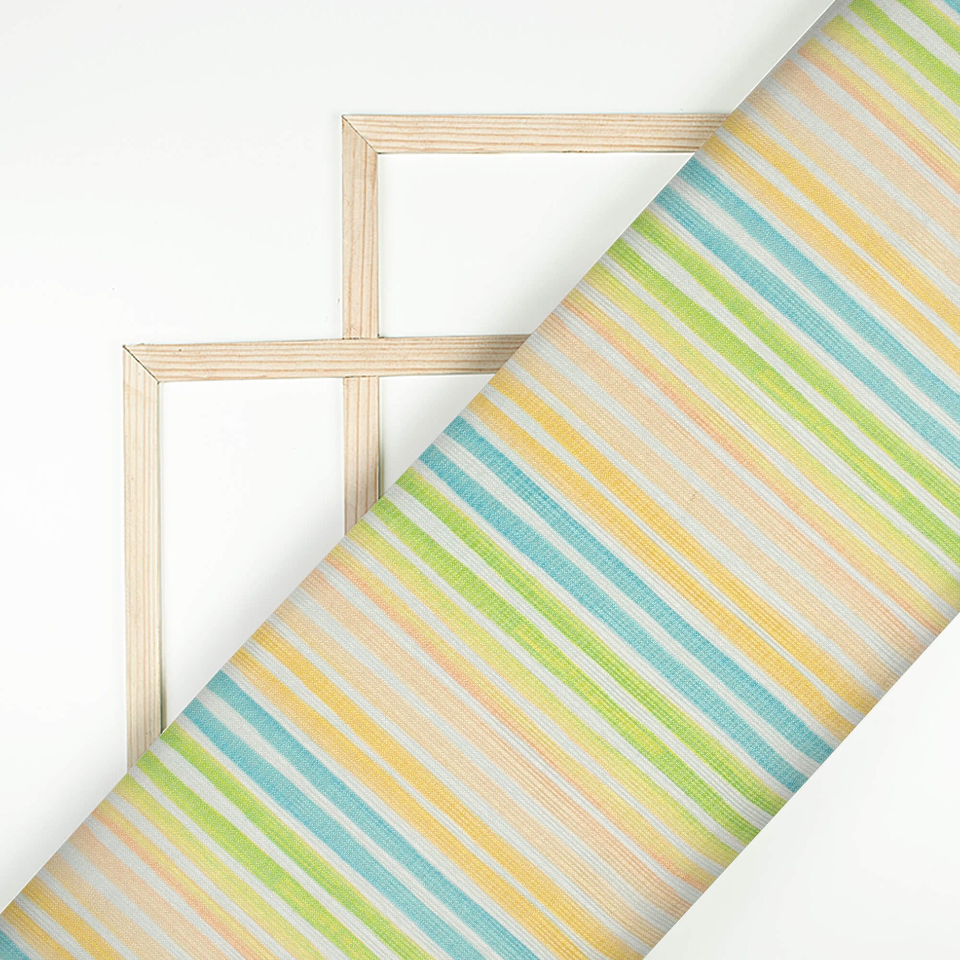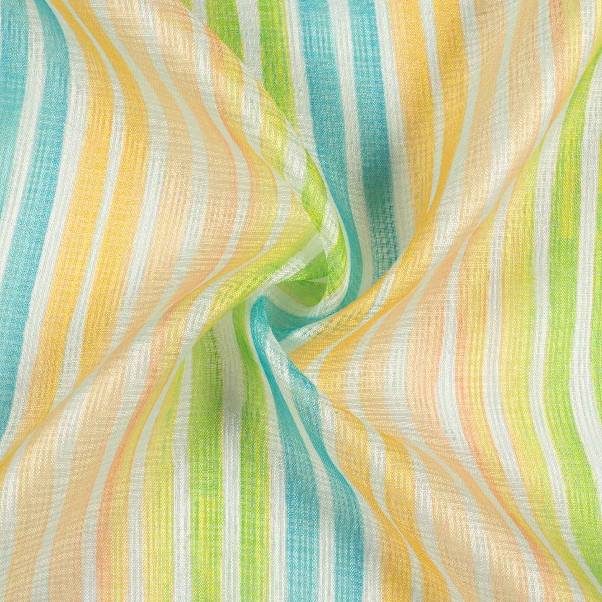 Yellow And Lime Green Stripes Pattern Digital Print Kota Doria Fabric