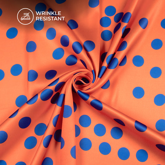 Blue Polka Dots Dark Orange Colour Digital Print Japan Satin Fabric Blue Polka Dots Dark Orange Colour Digital Print Japan Satin Fabric