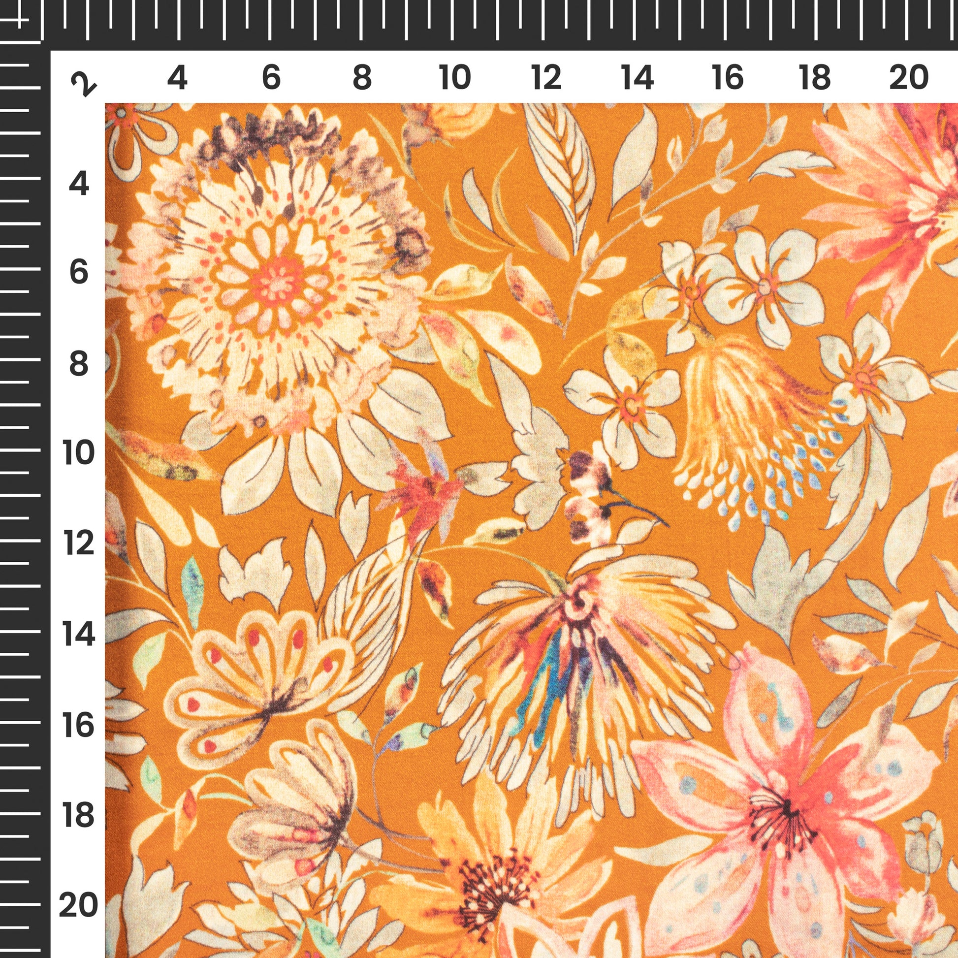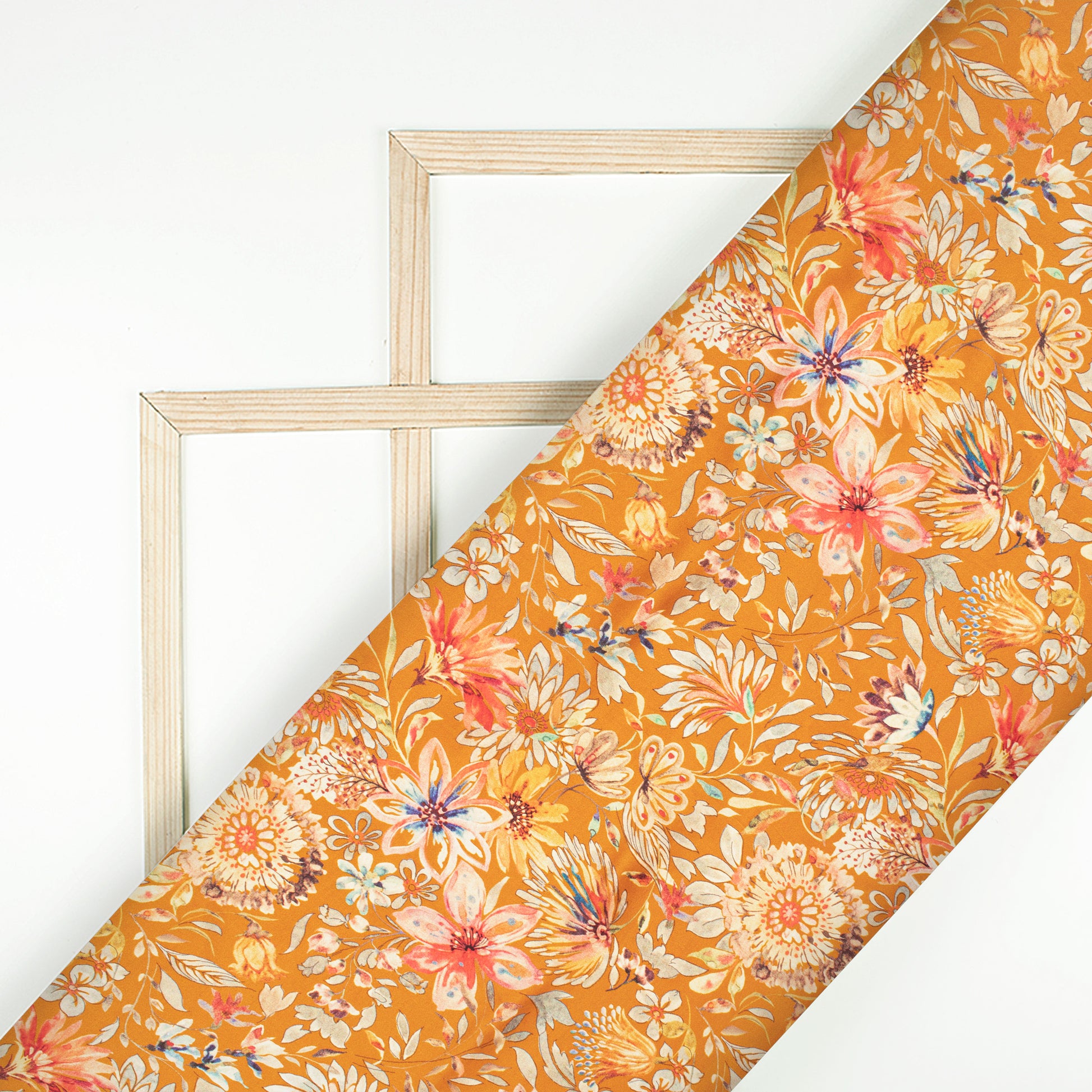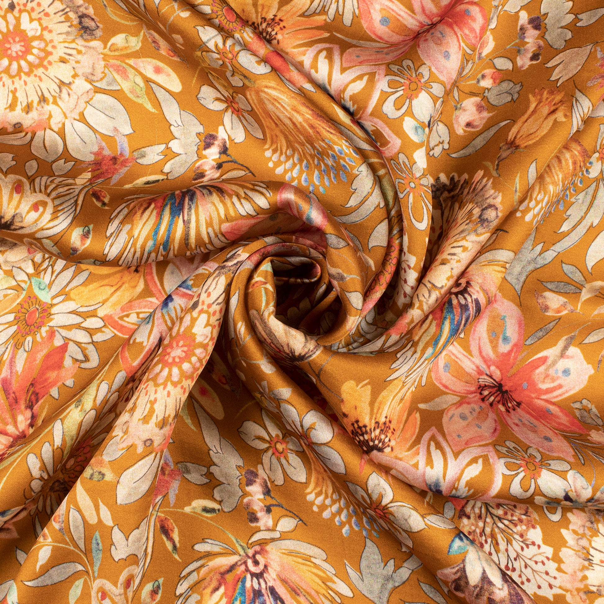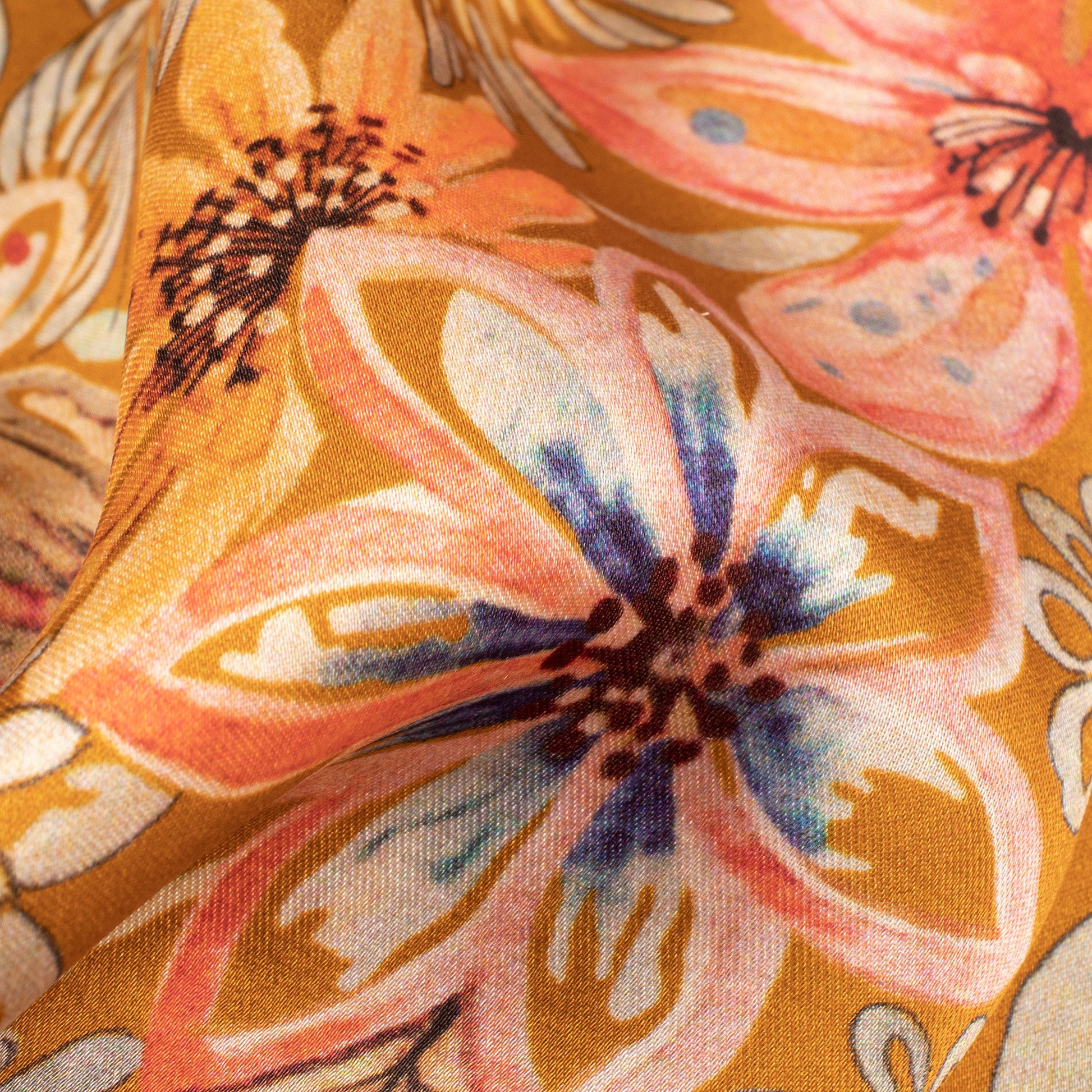 Medallion Yellow Floral Digital Print Assami Bemberg Satin Fabric
