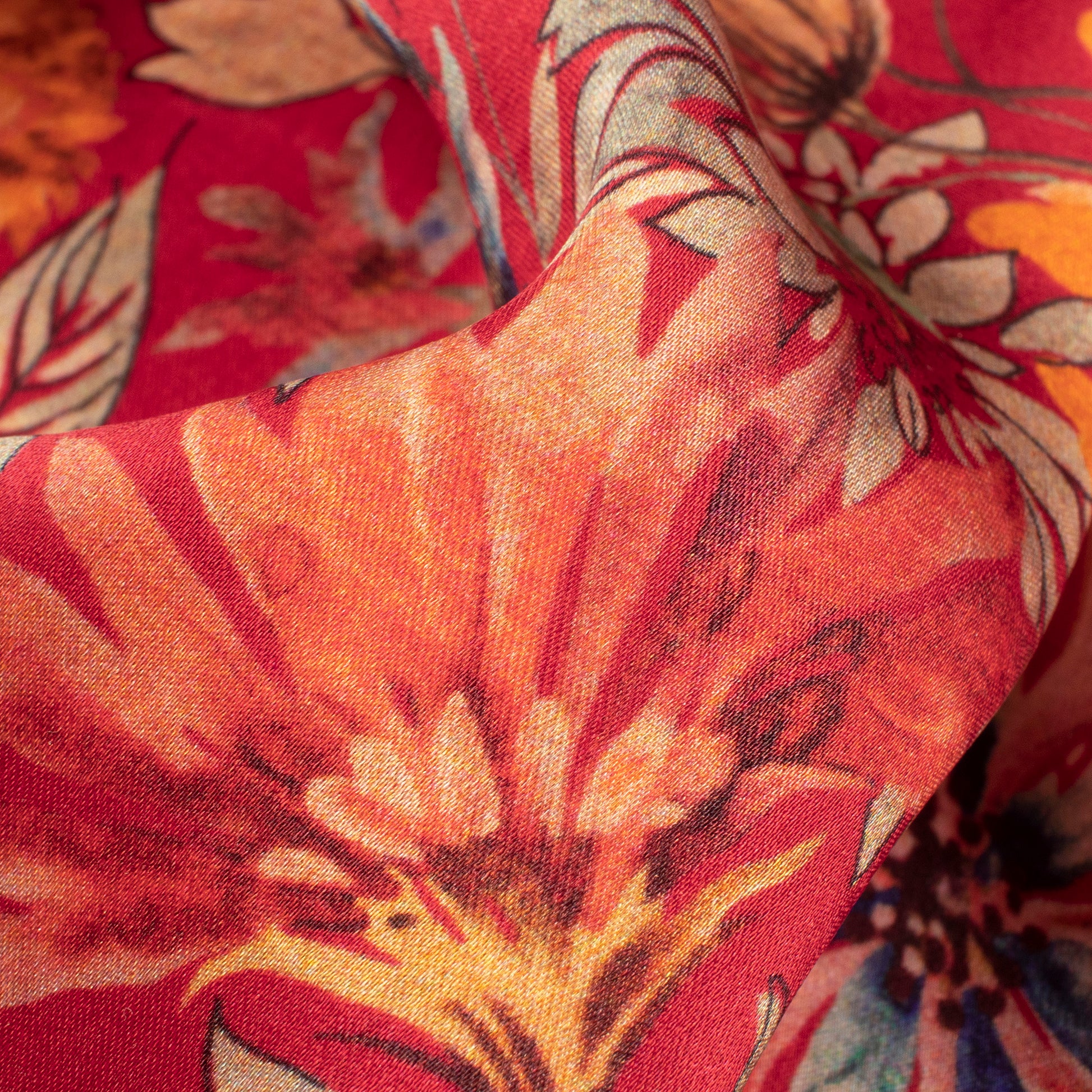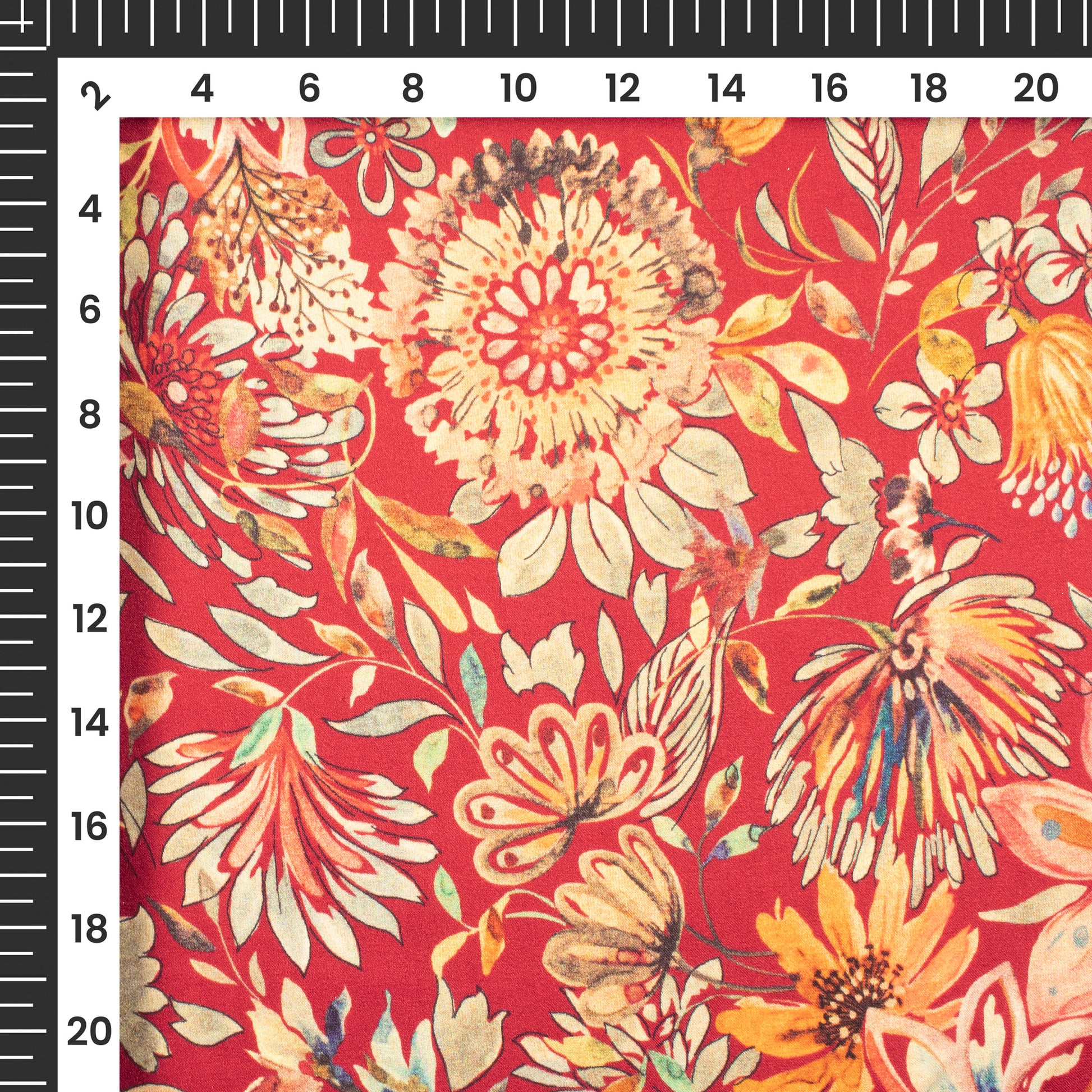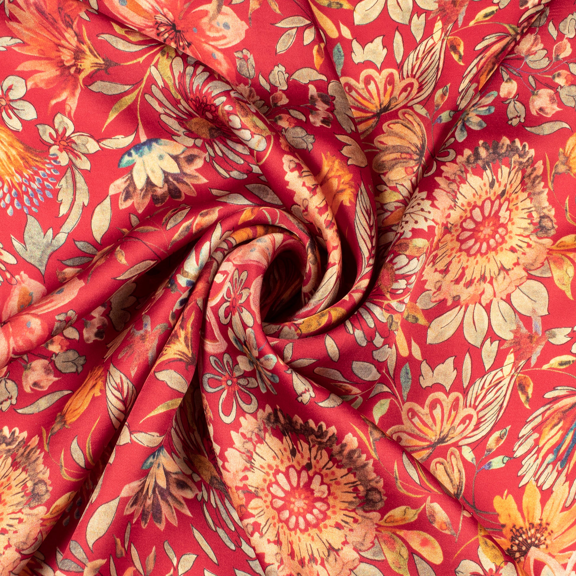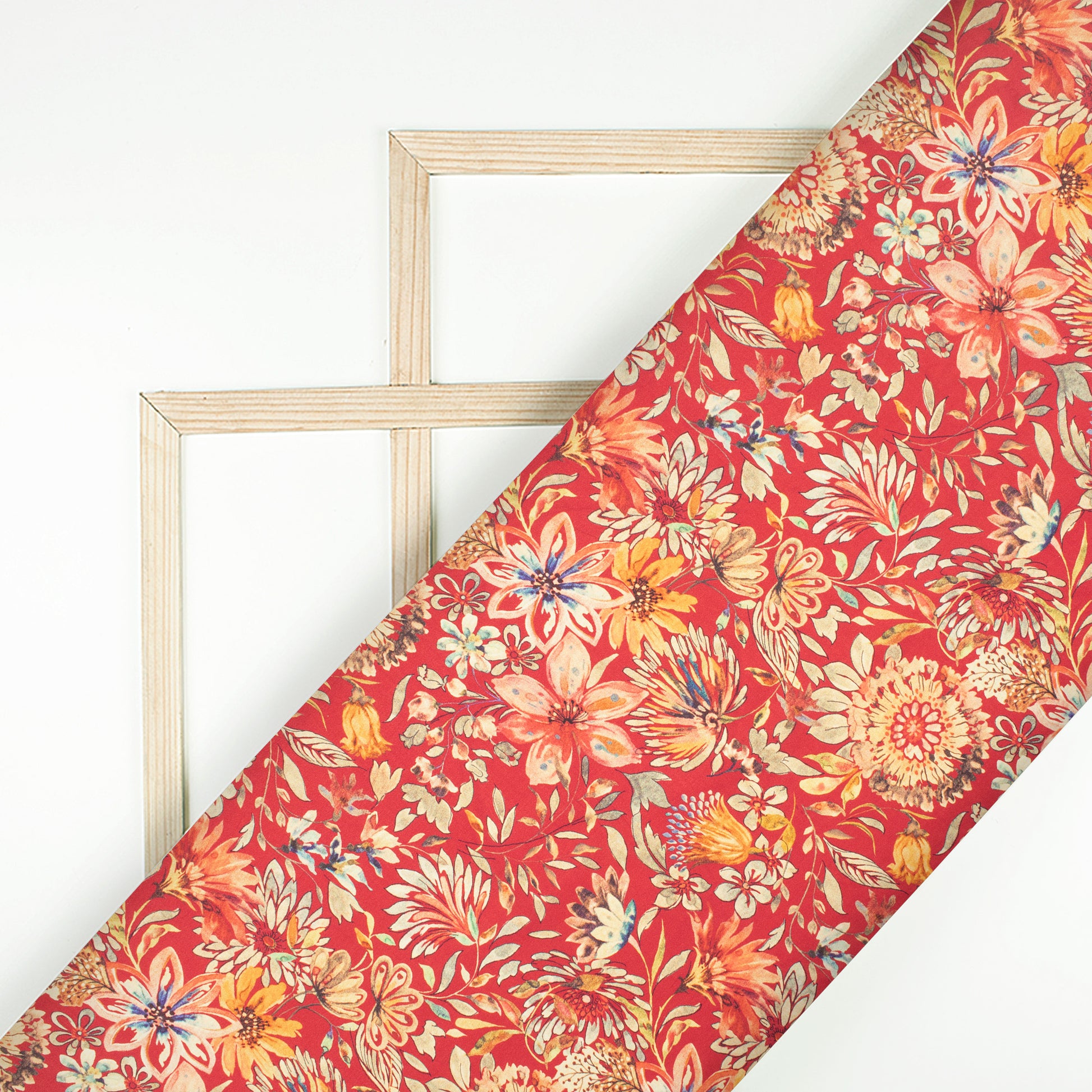 Red Floral Digital Print Assami Bemberg Satin Fabric