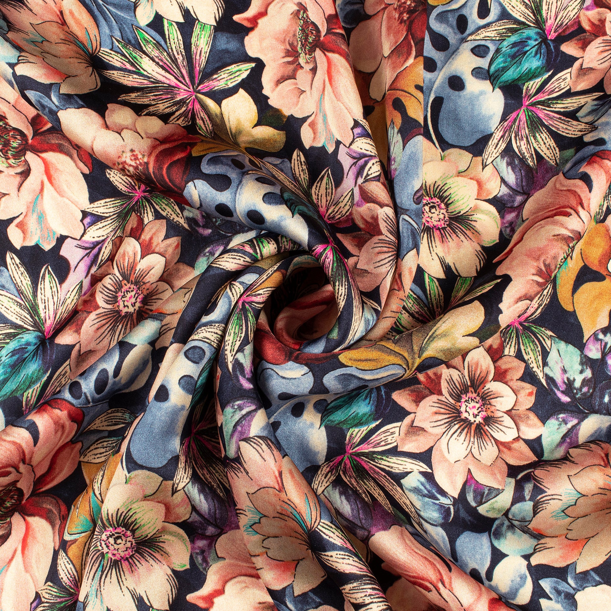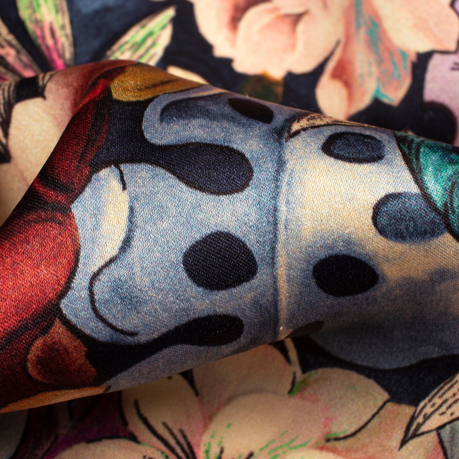 Scenic Floral Digital Print Assami Bemberg Satin Fabric