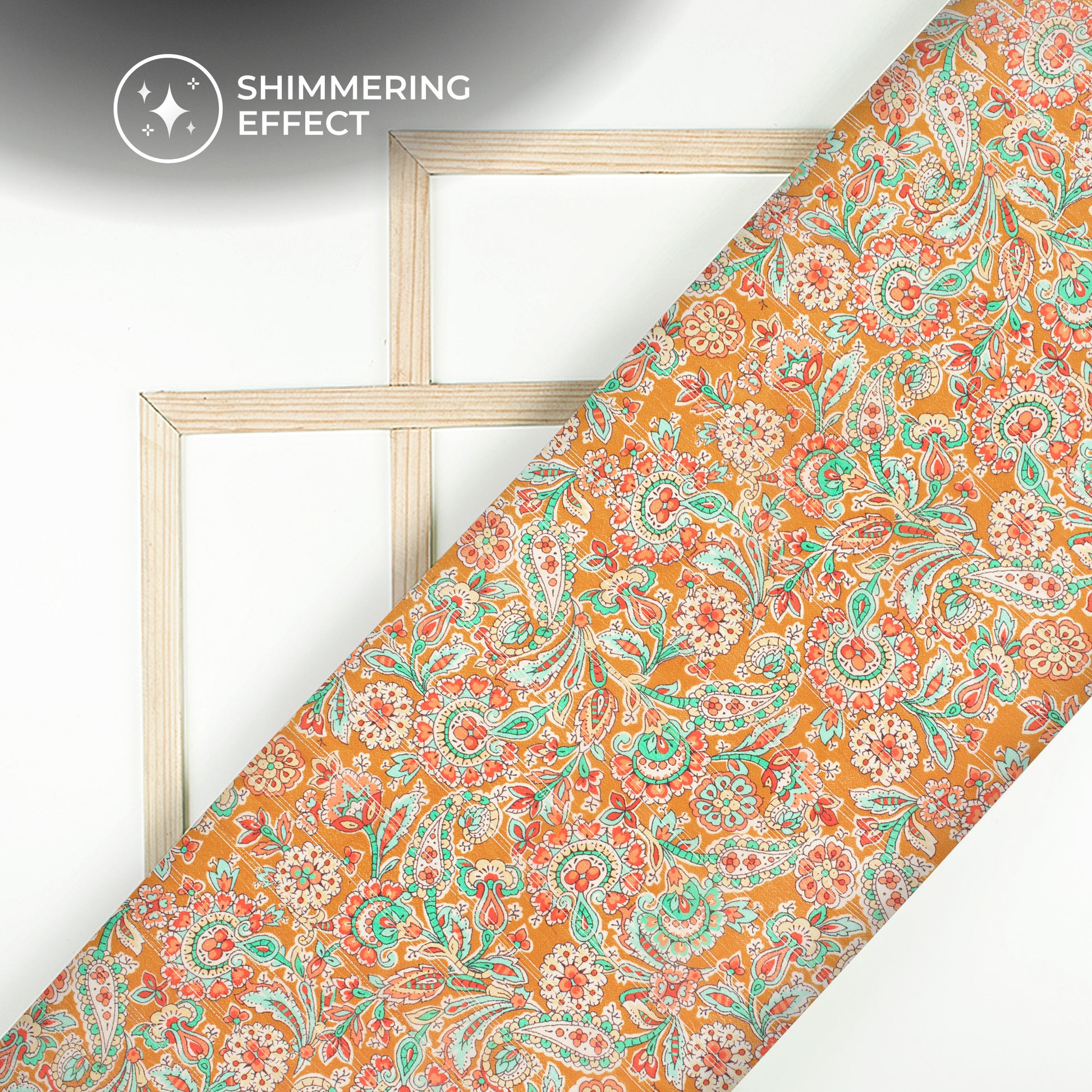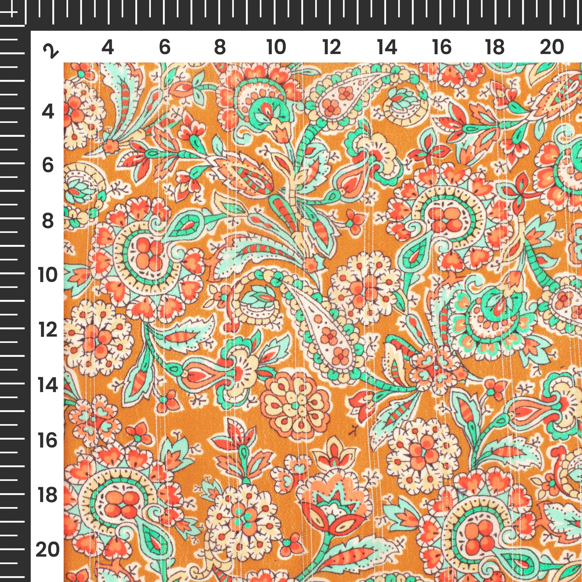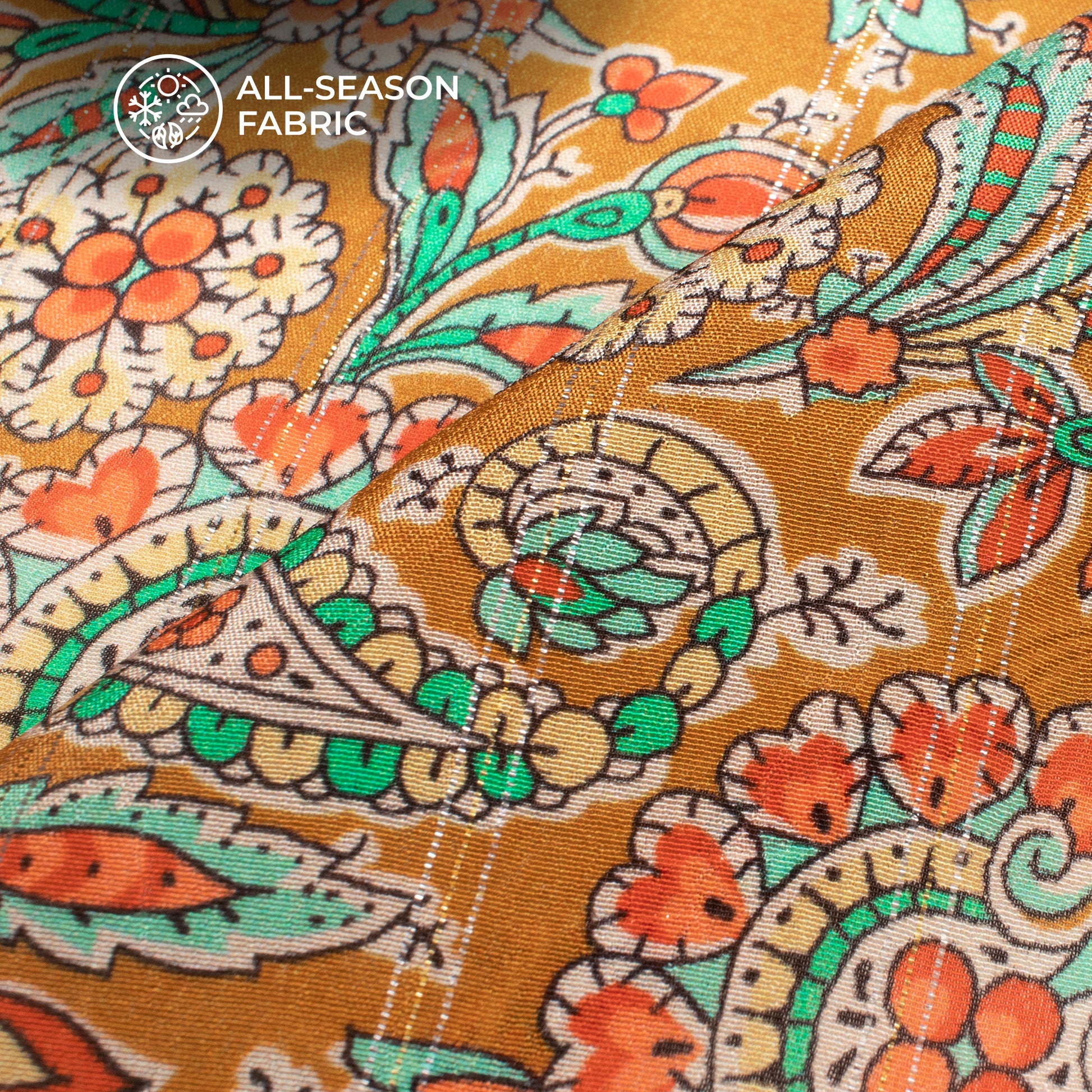 Copper Brown Digital Print Bemberg Crepe Lurex Fabric