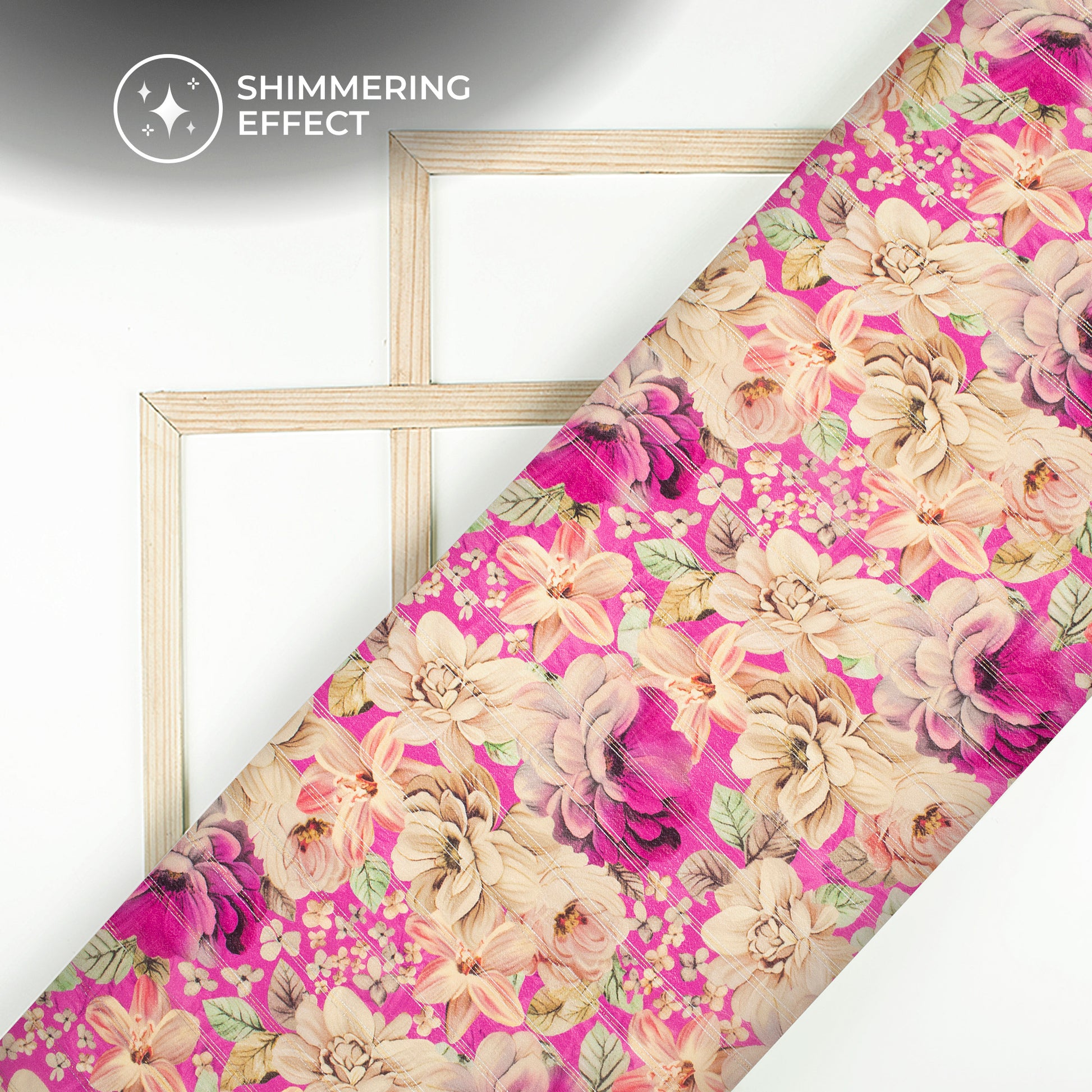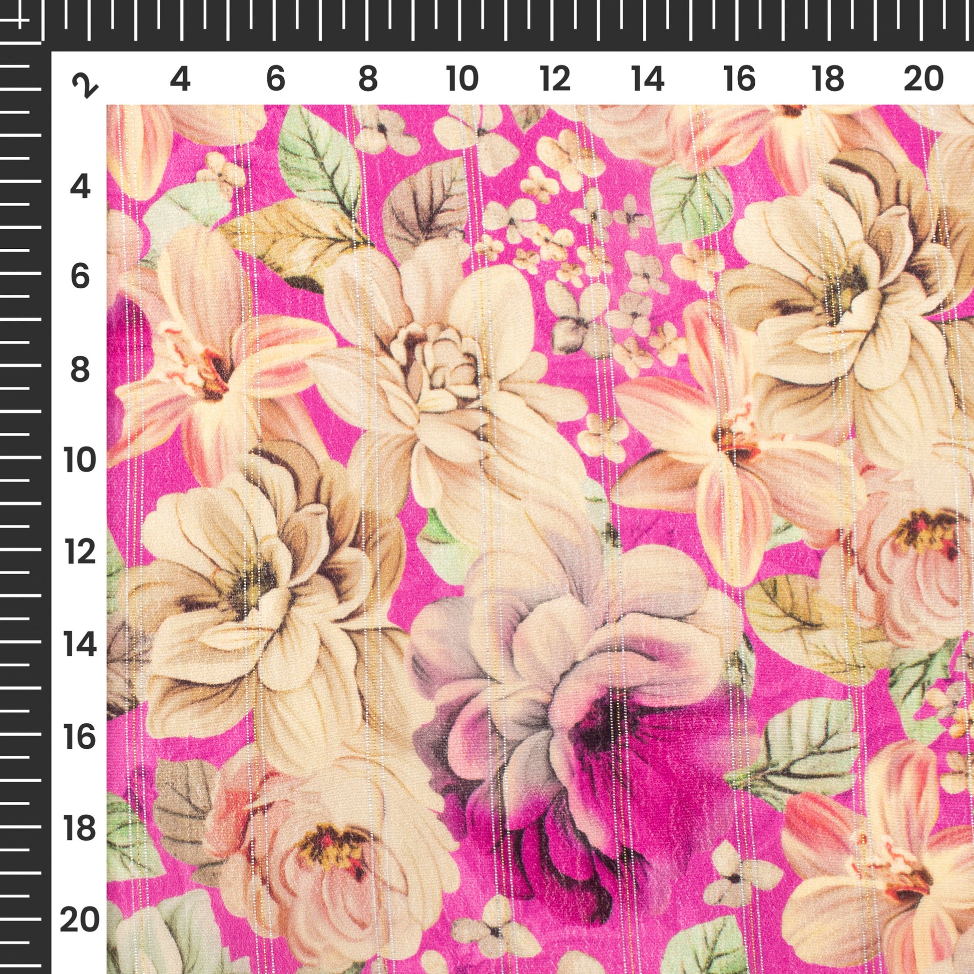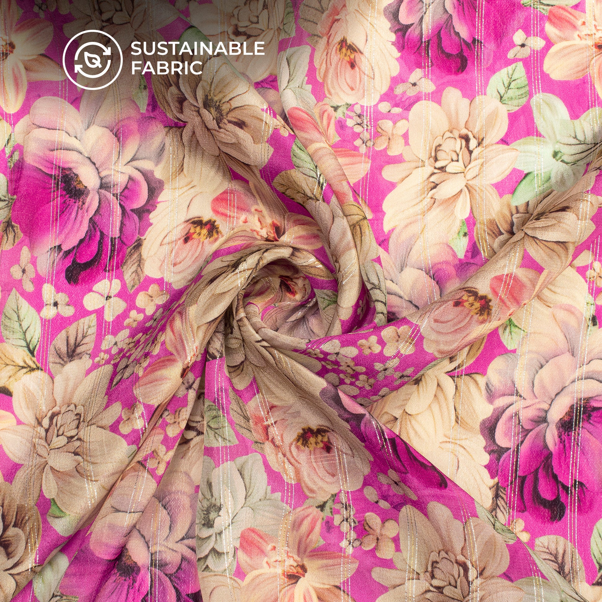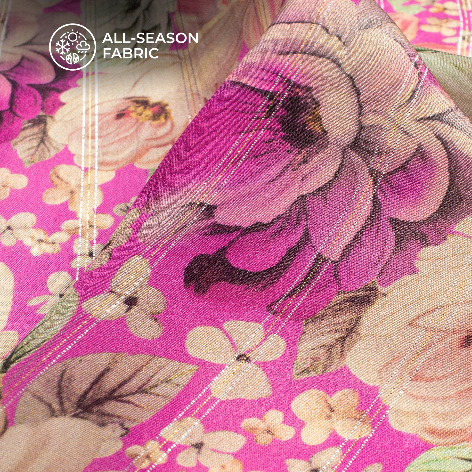 Elegant Floral Digital Print Bemberg Crepe Lurex Fabric