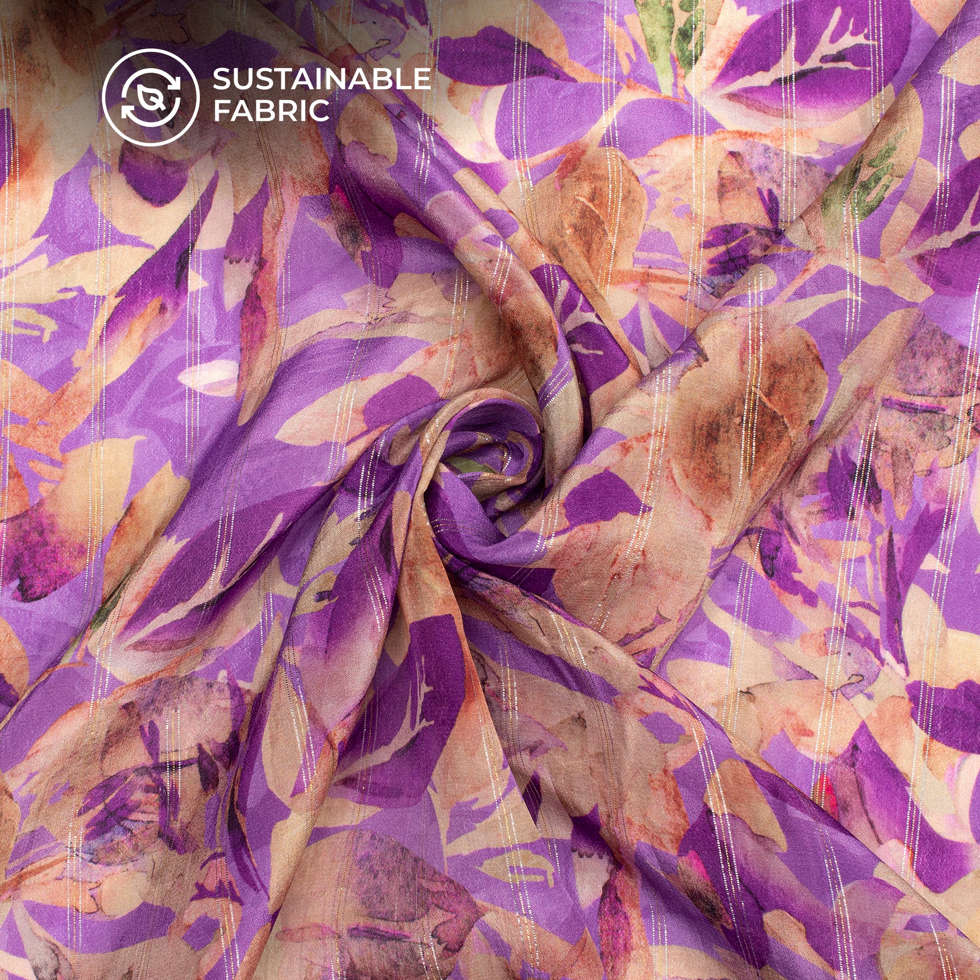 Graceful Floral Digital Print Bemberg Crepe Lurex Fabric