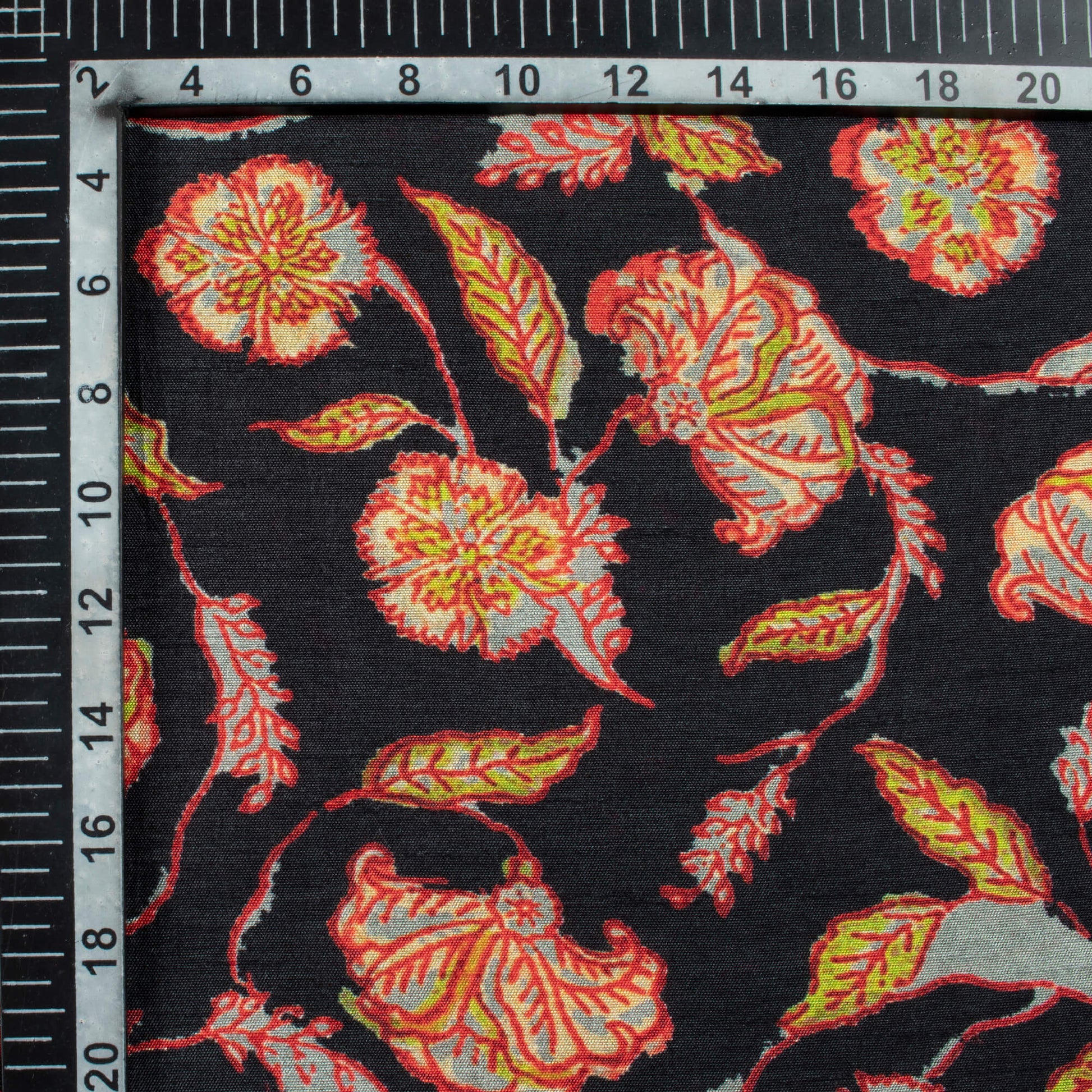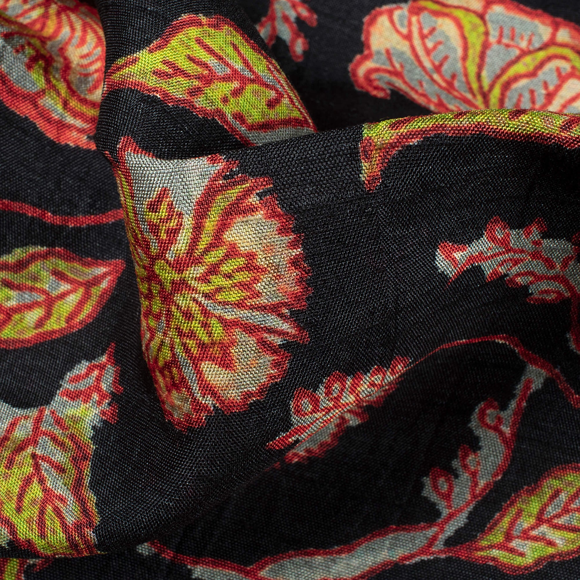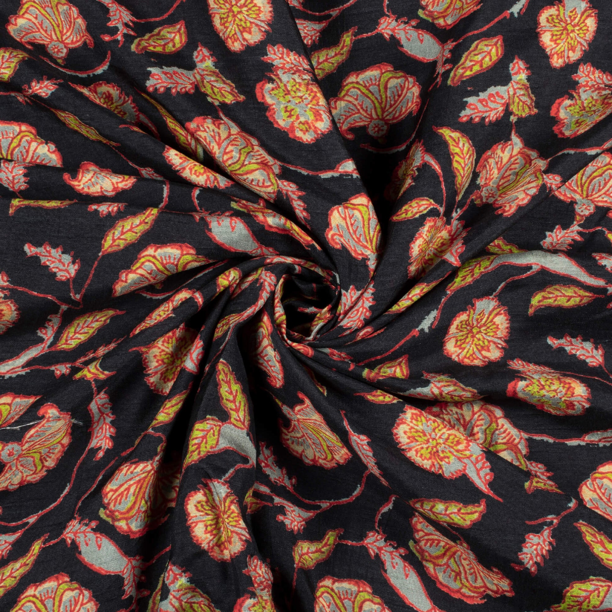 Black And Red Kalamkrii Pattern Digital Print Bemberg Raw Silk Fabric