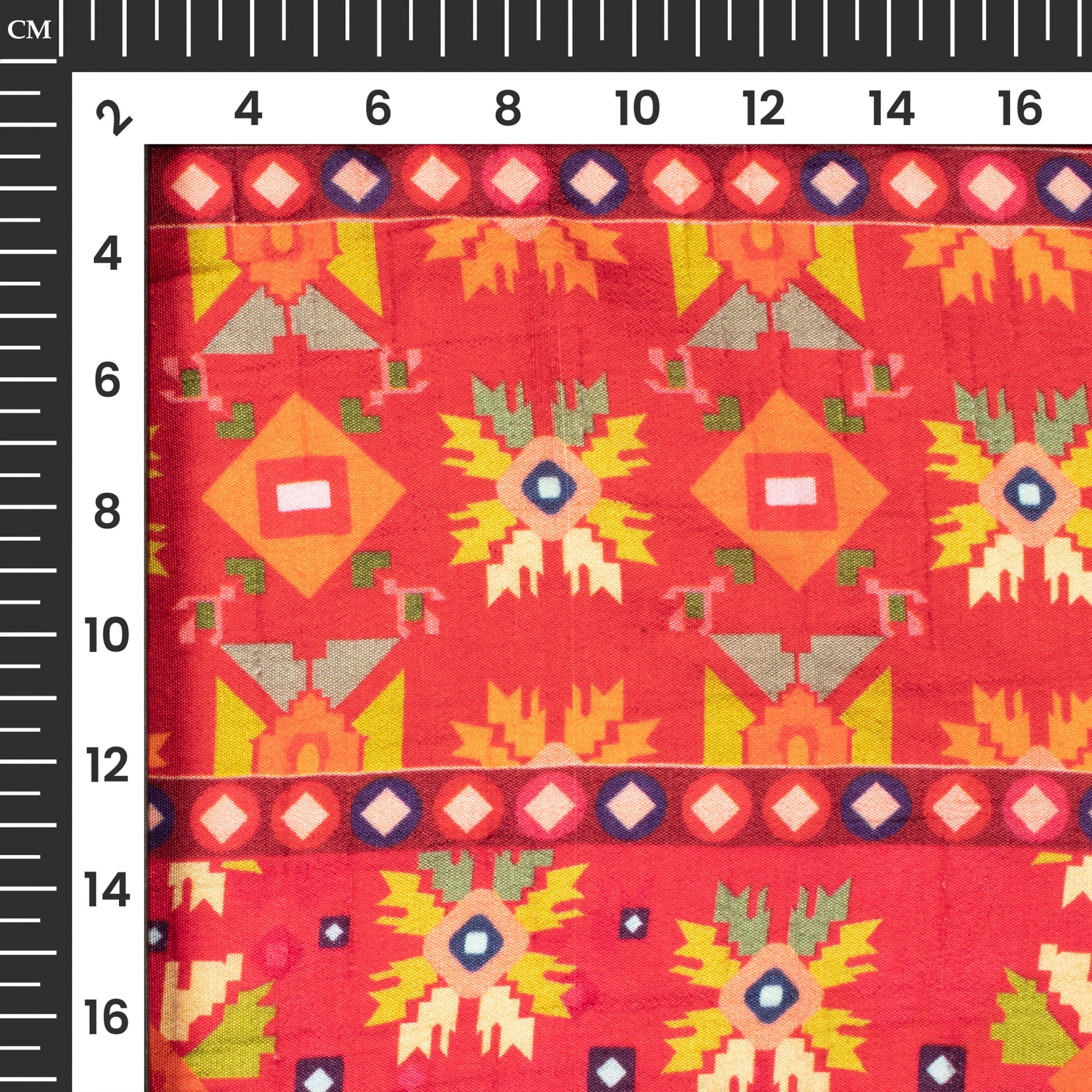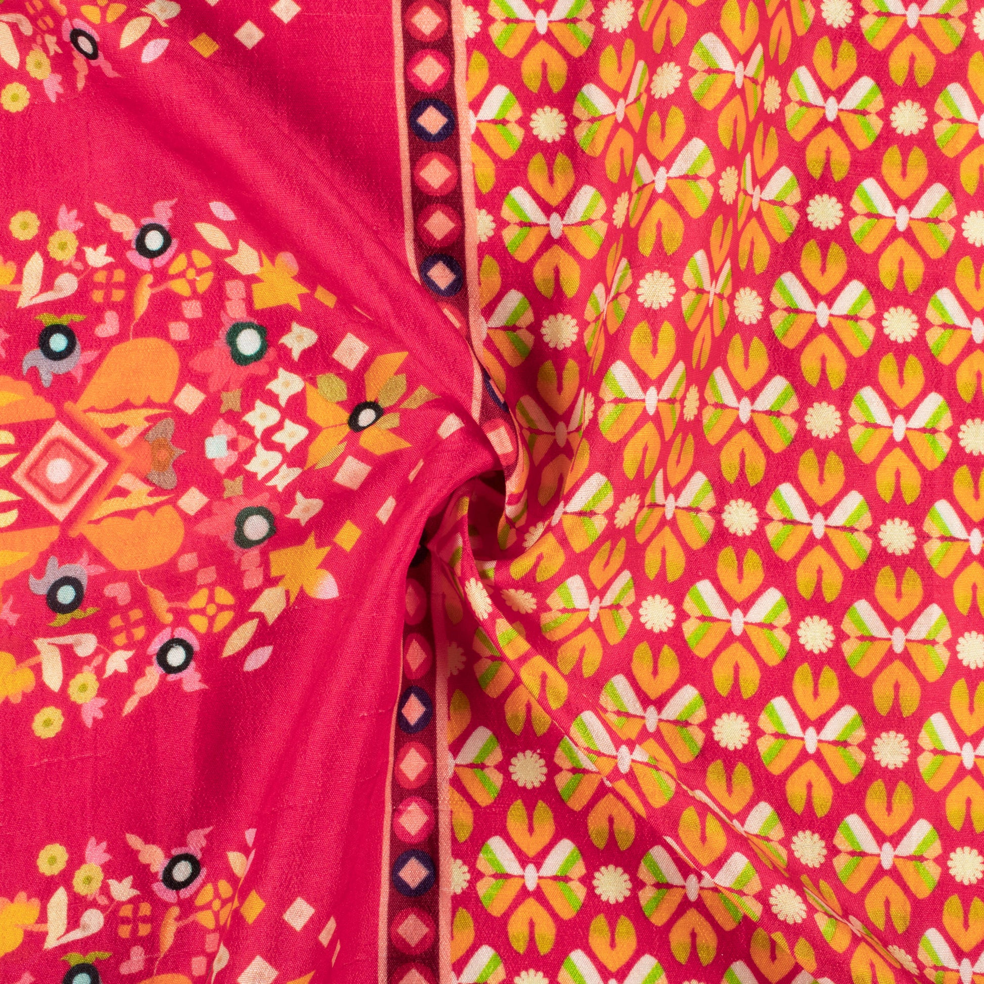 Dark Pink And Yellow Patolaa Digital Print Bemberg Raw Silk Fabric