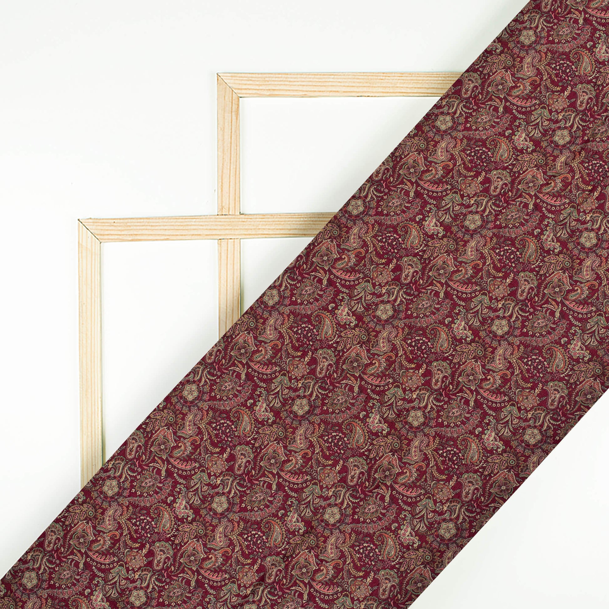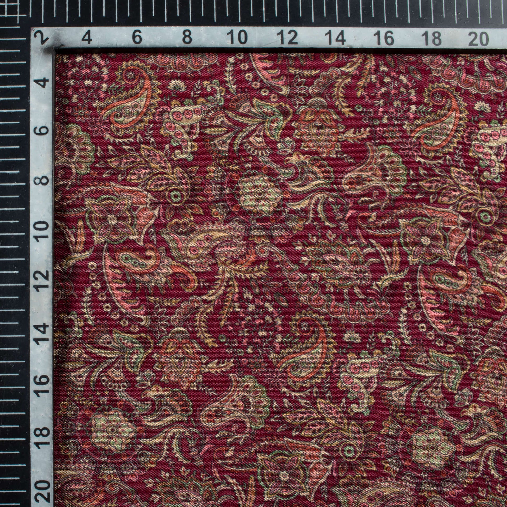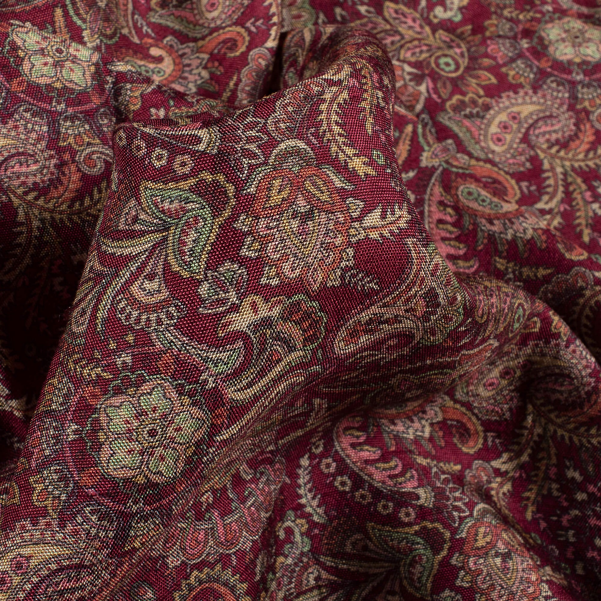 Mulberry Purple Paisley Pattern Digital Print Bemberg Raw Silk Fabric