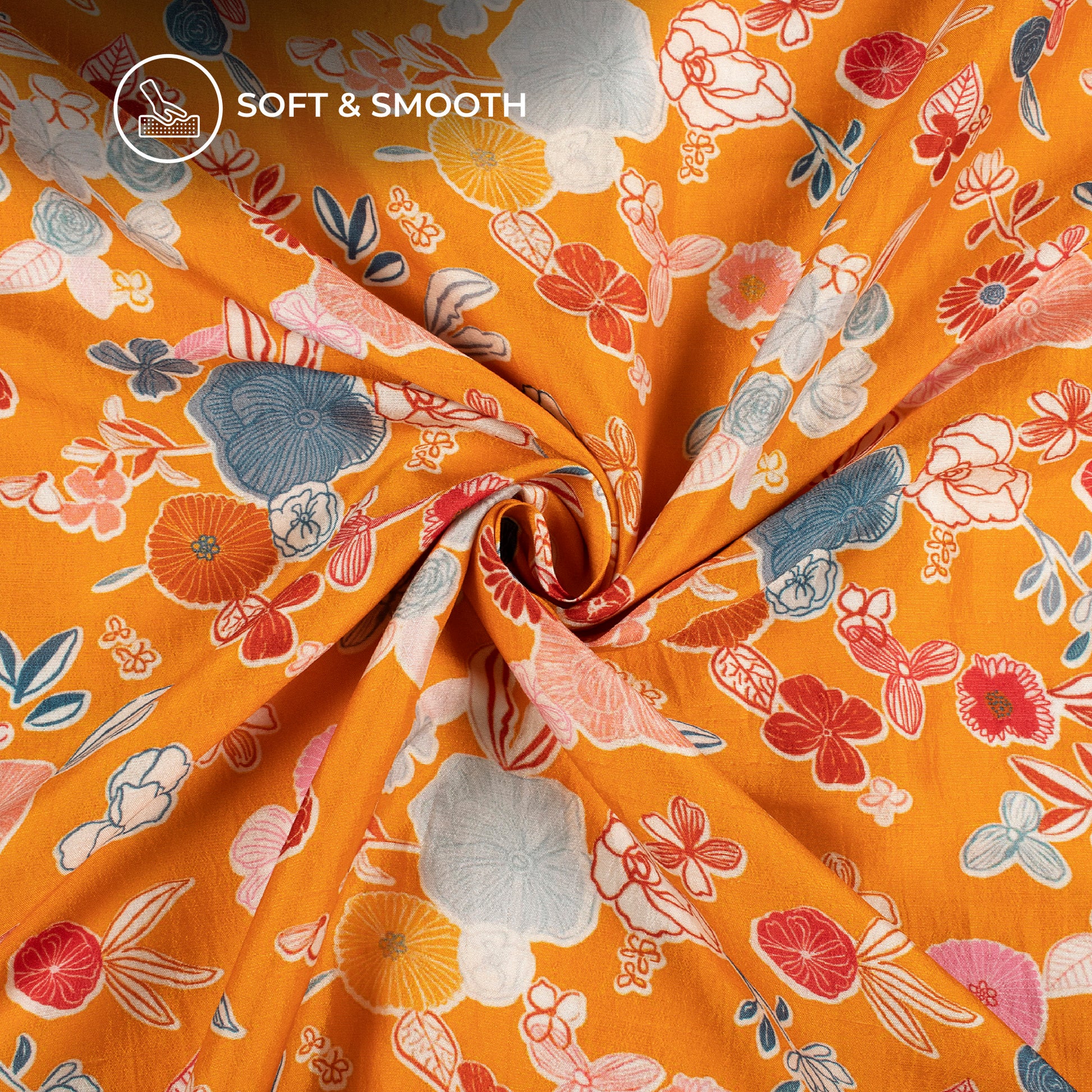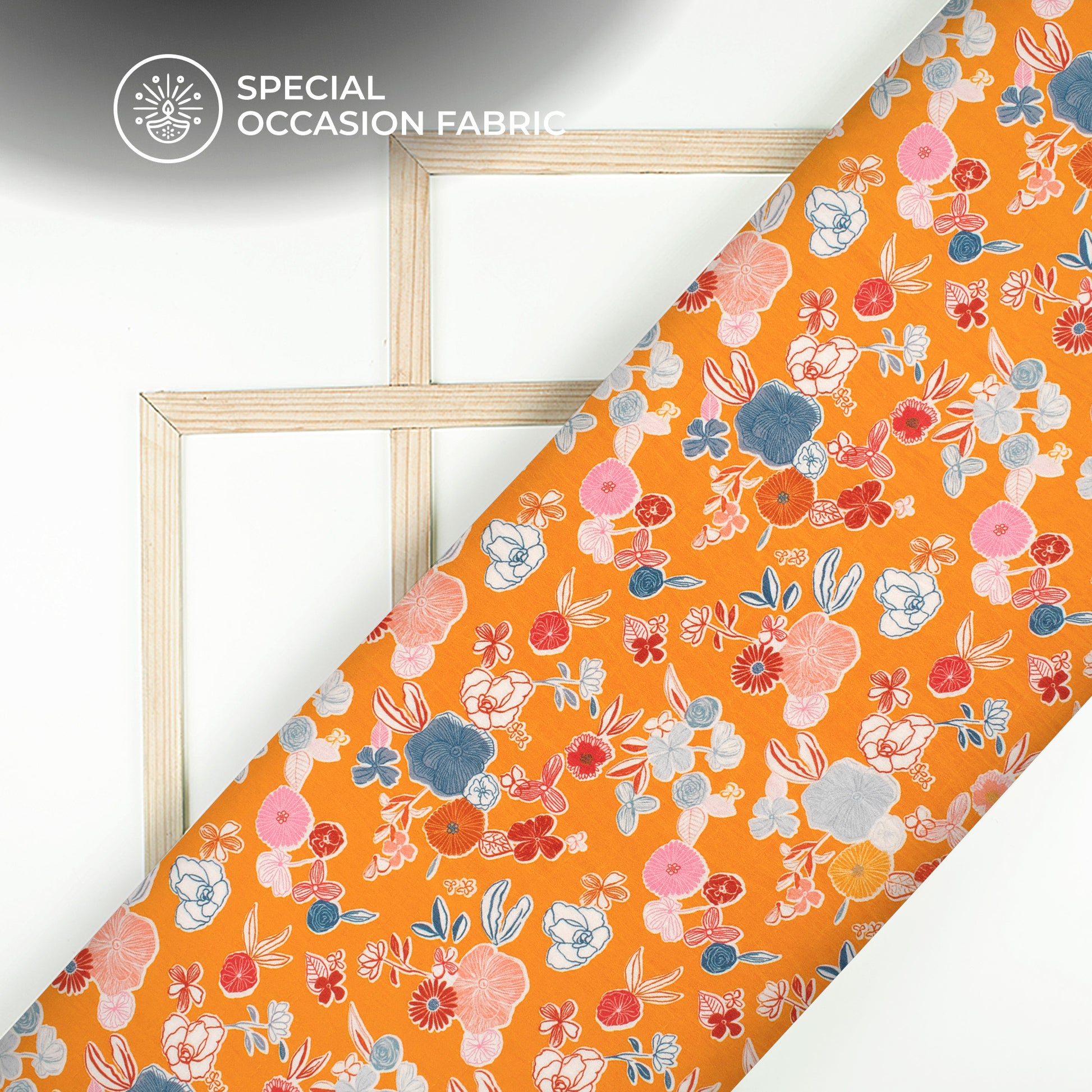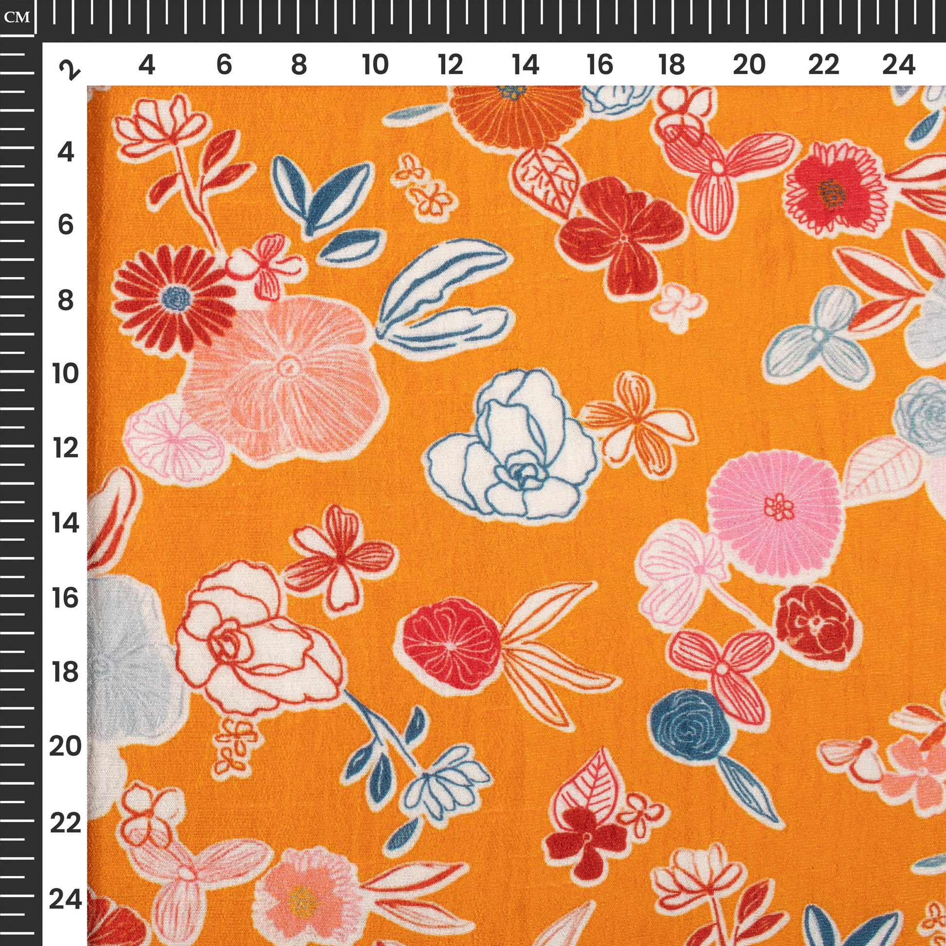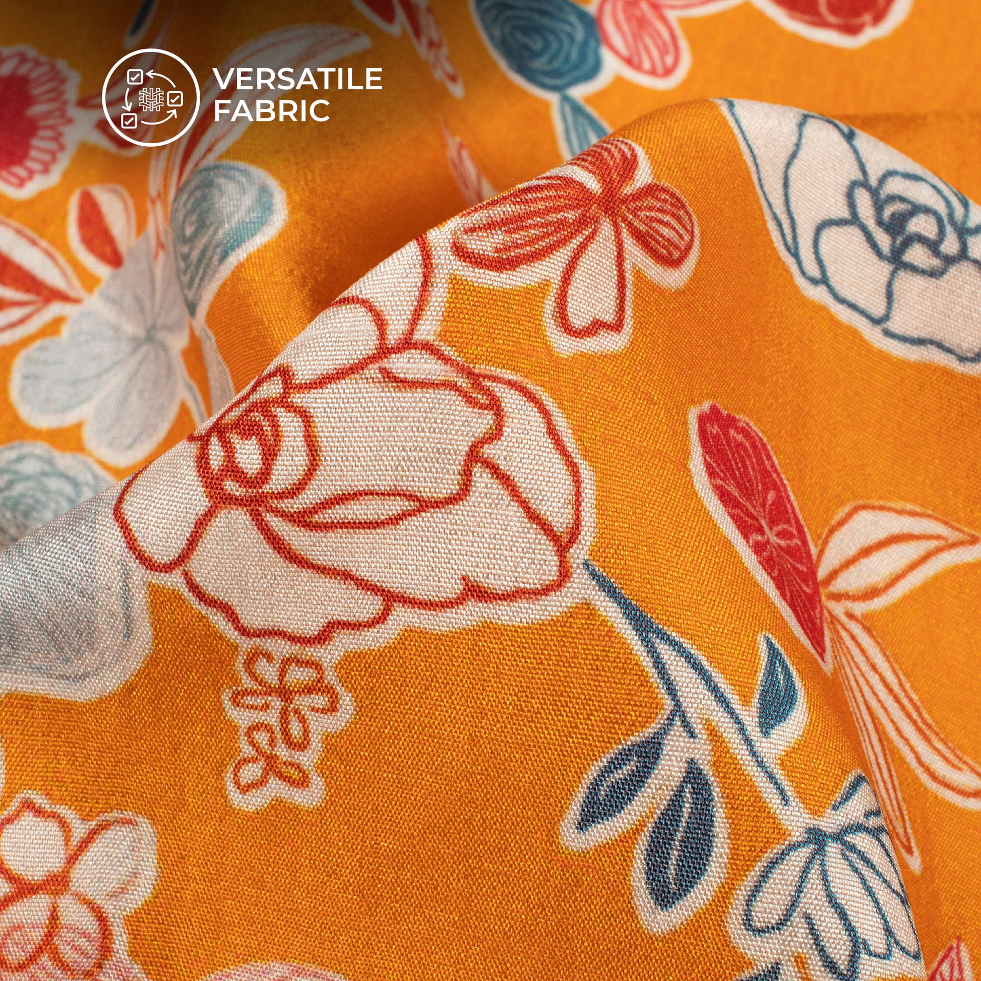 Tiger Orange Floral Digital Print Bemberg Raw Silk Fabric