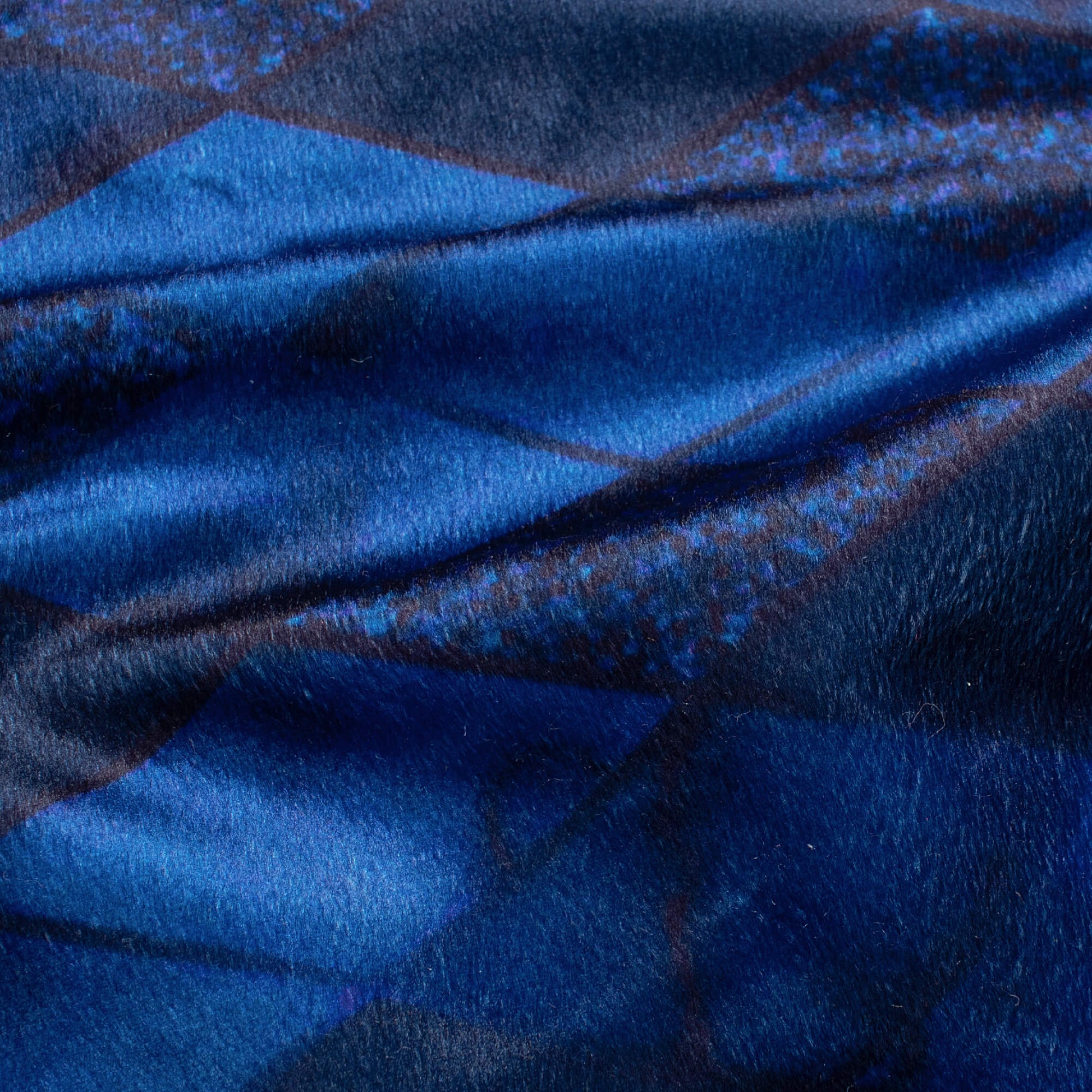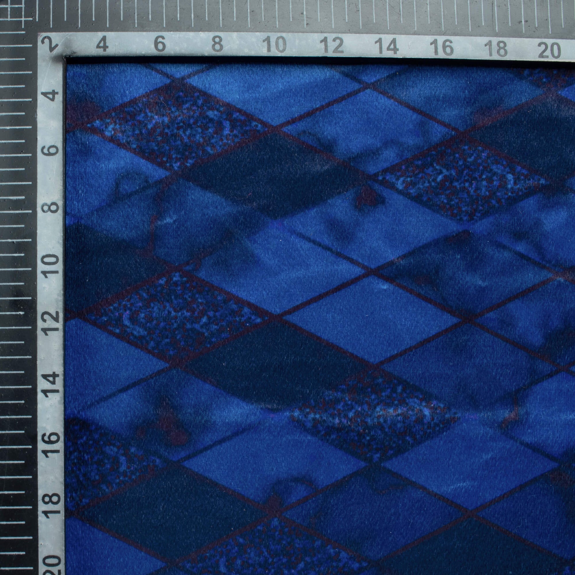 Admiral Blue Checks Pattern Digital Print Velvet Fabric (Width 58 Inches)