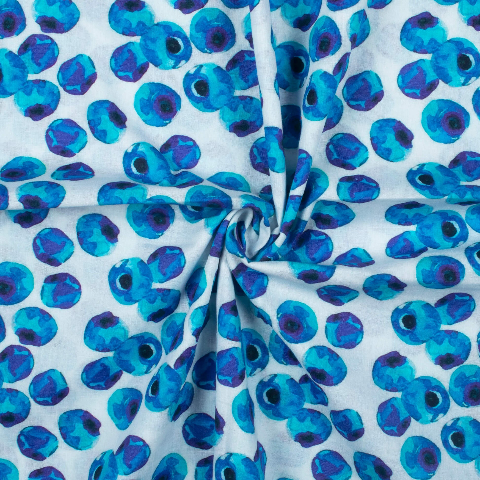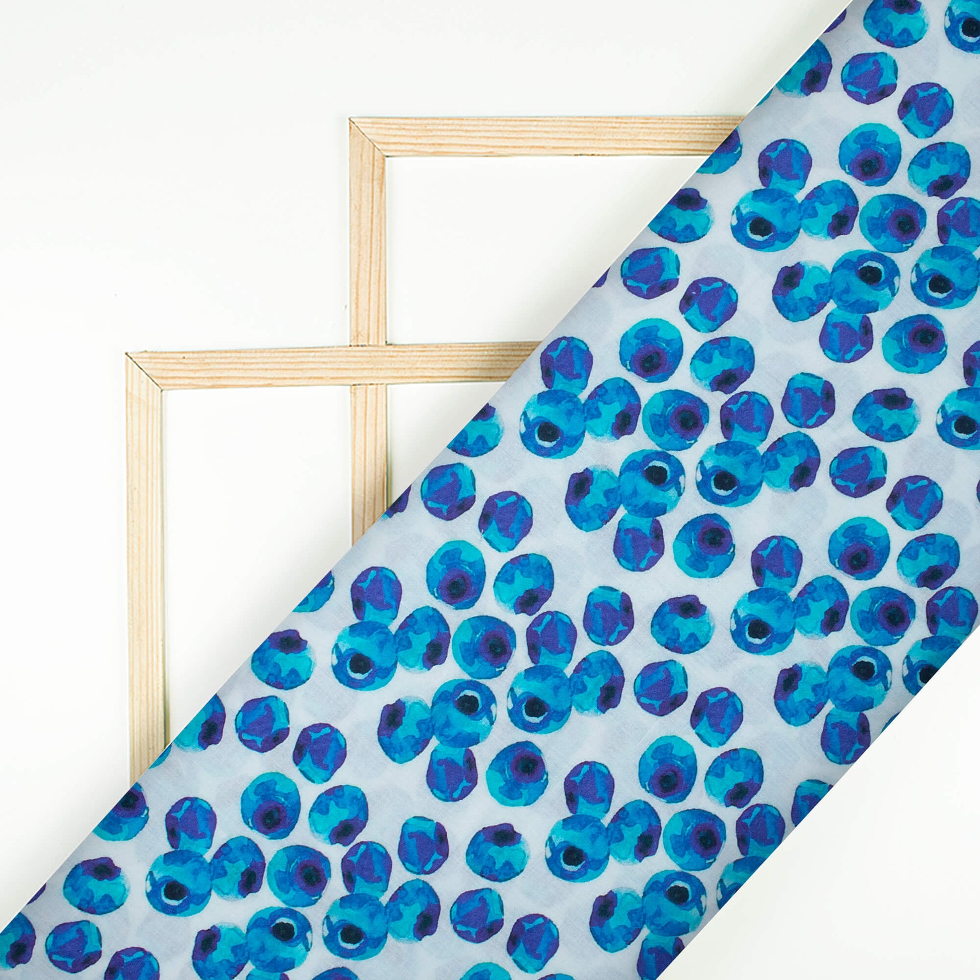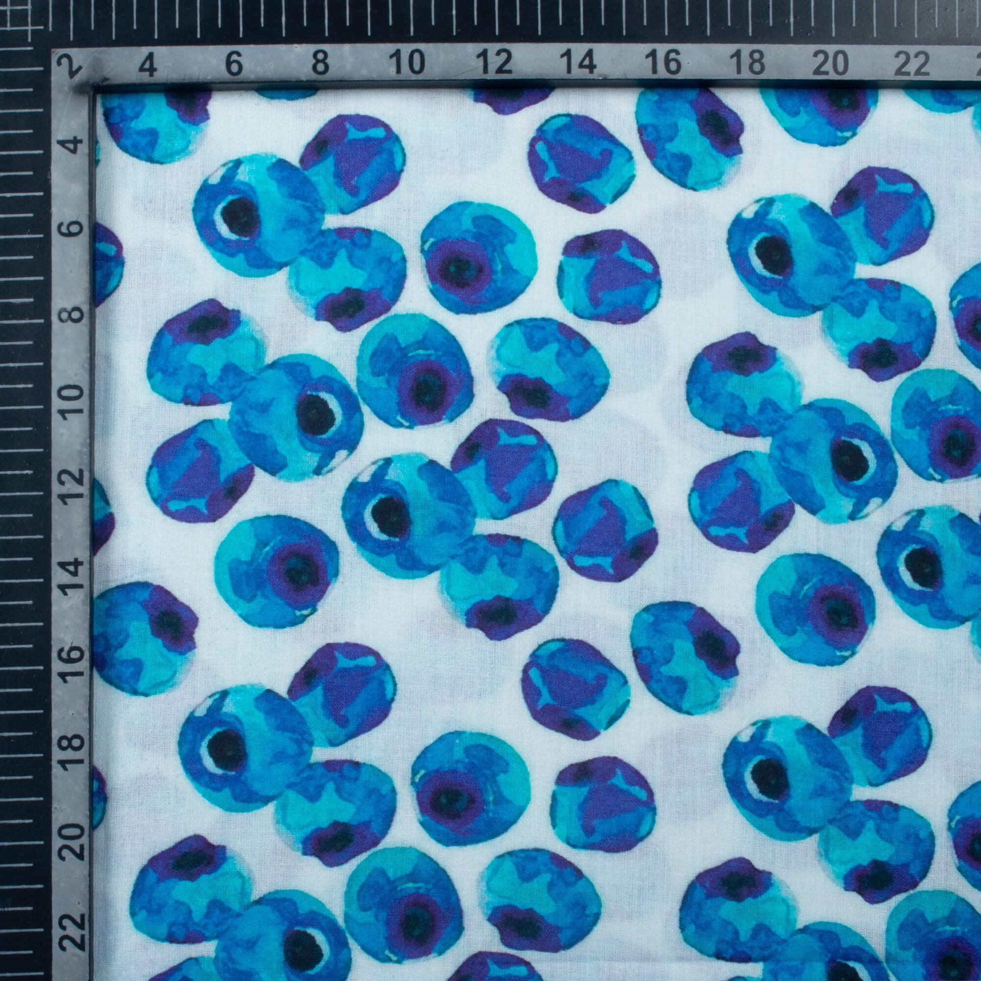 Anuska's Choice White And Blue Quirky Pattern Digital Print Cotton Cambric Fabric