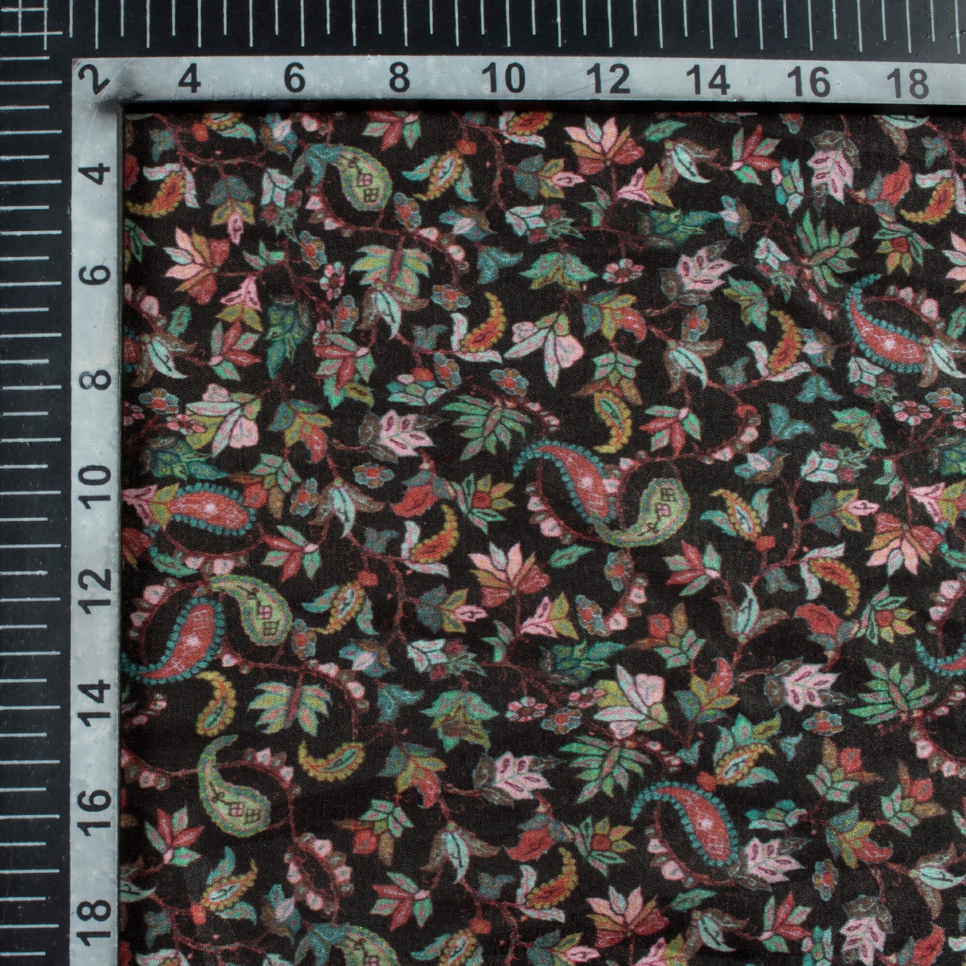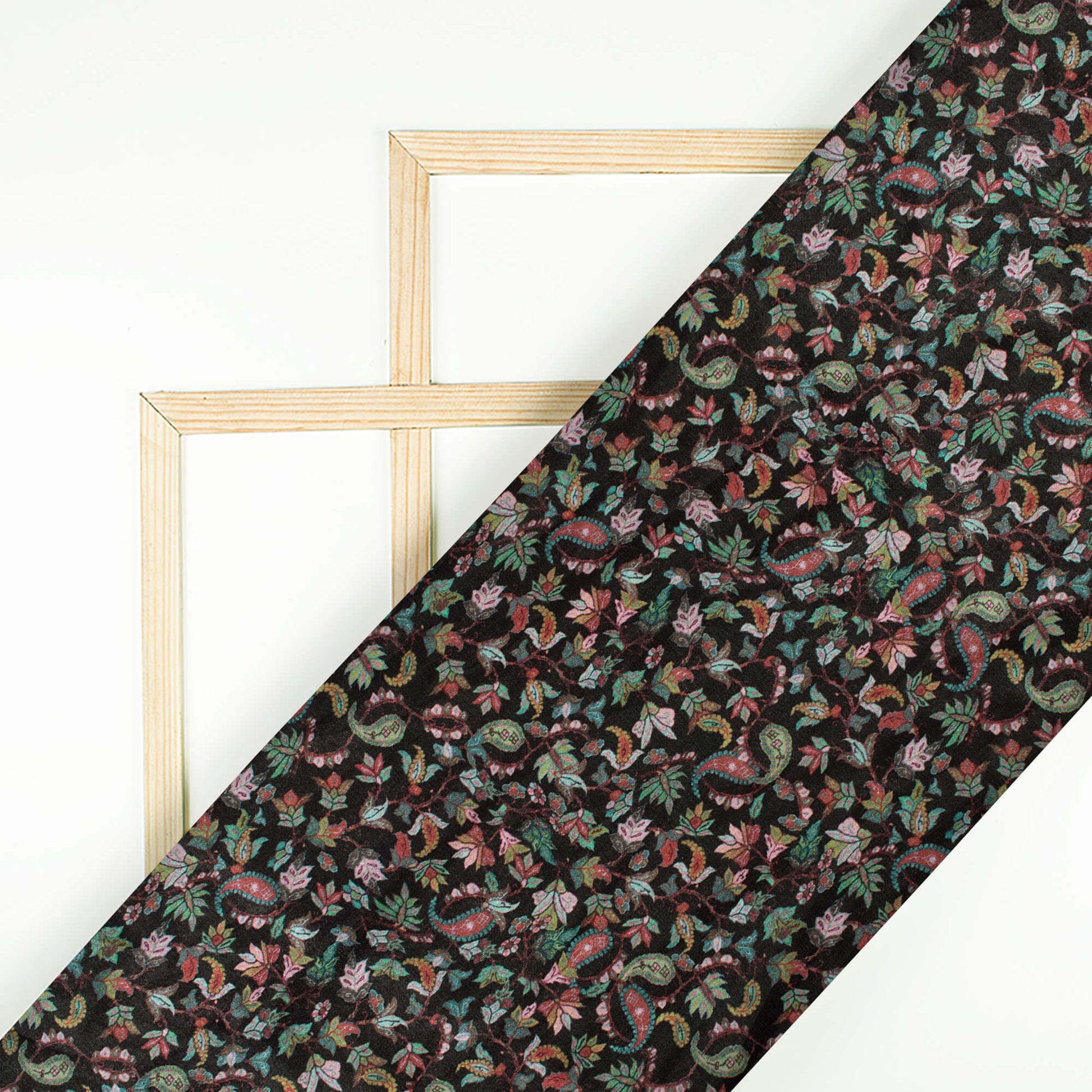 Black And Green Paisley Pattern Digital Print Flat Silk Fabric