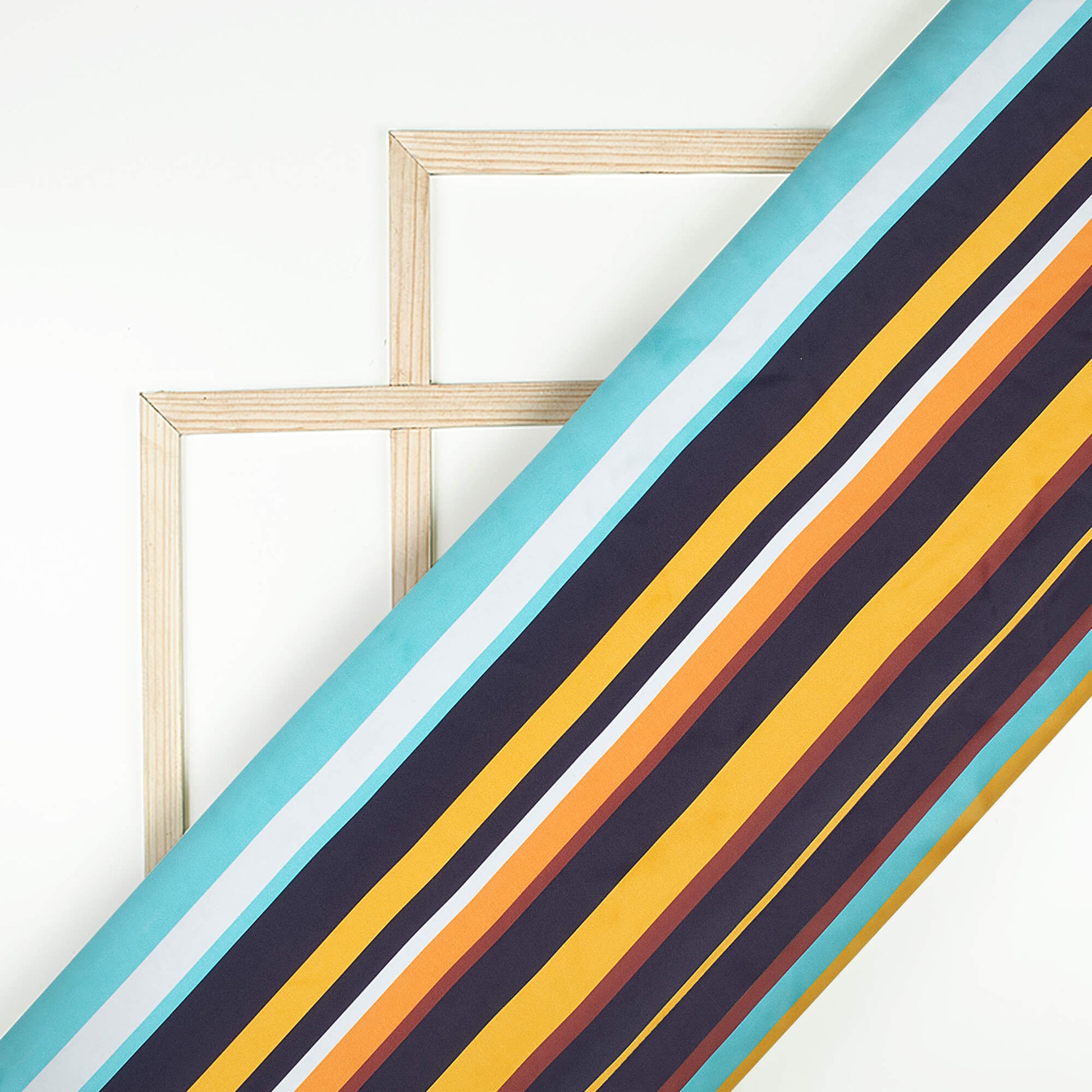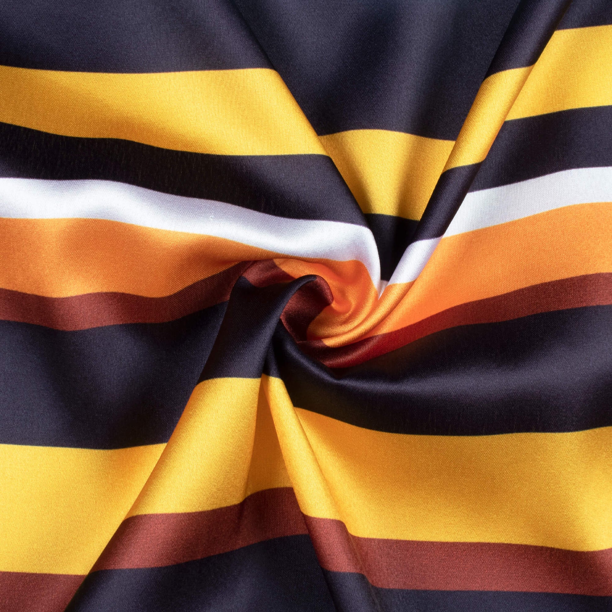 Black And Honey Yellow Stripes Pattern Digital Print Japan Satin Fabric