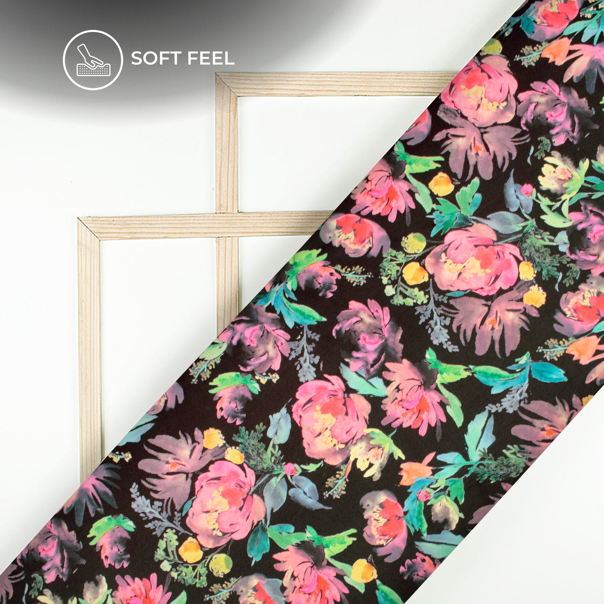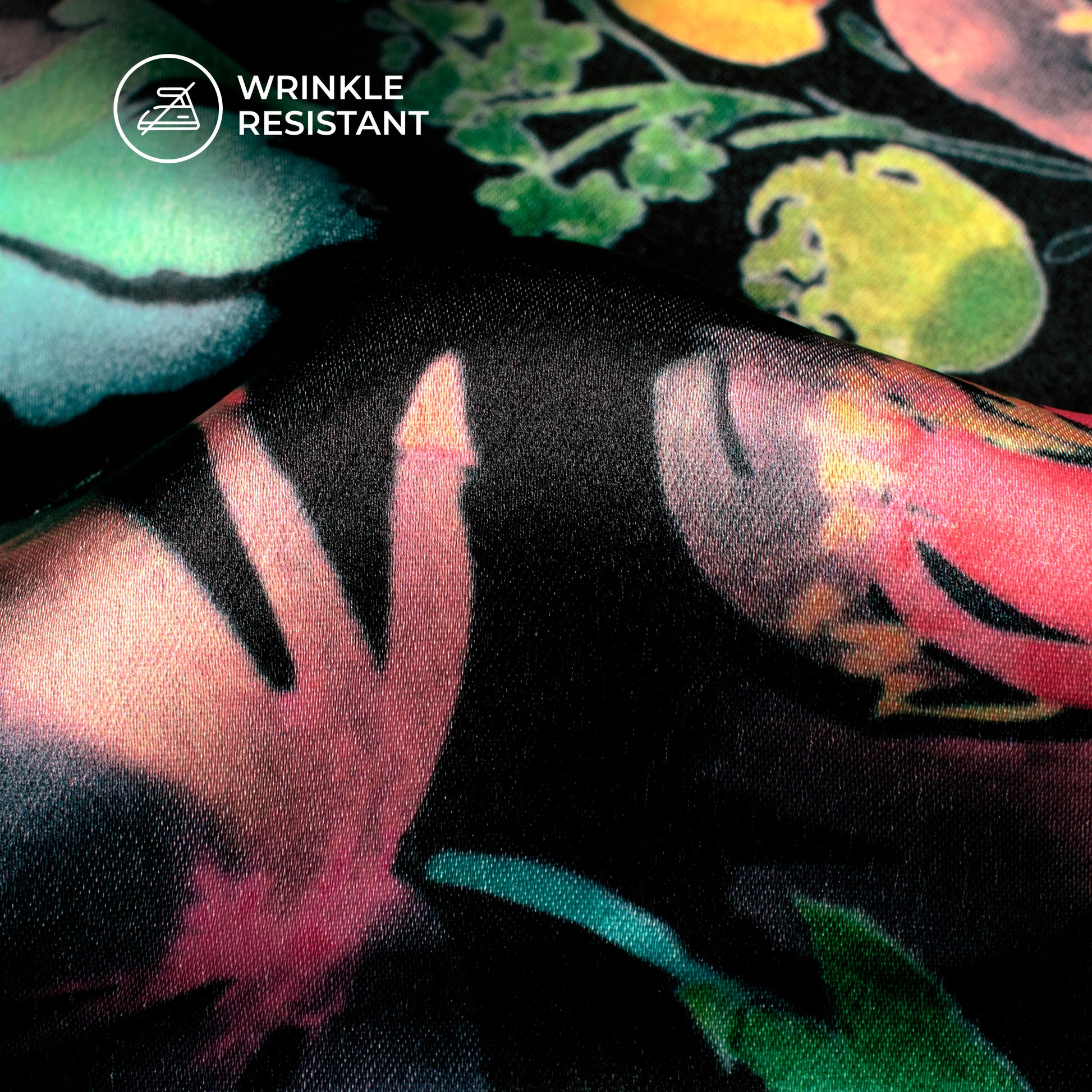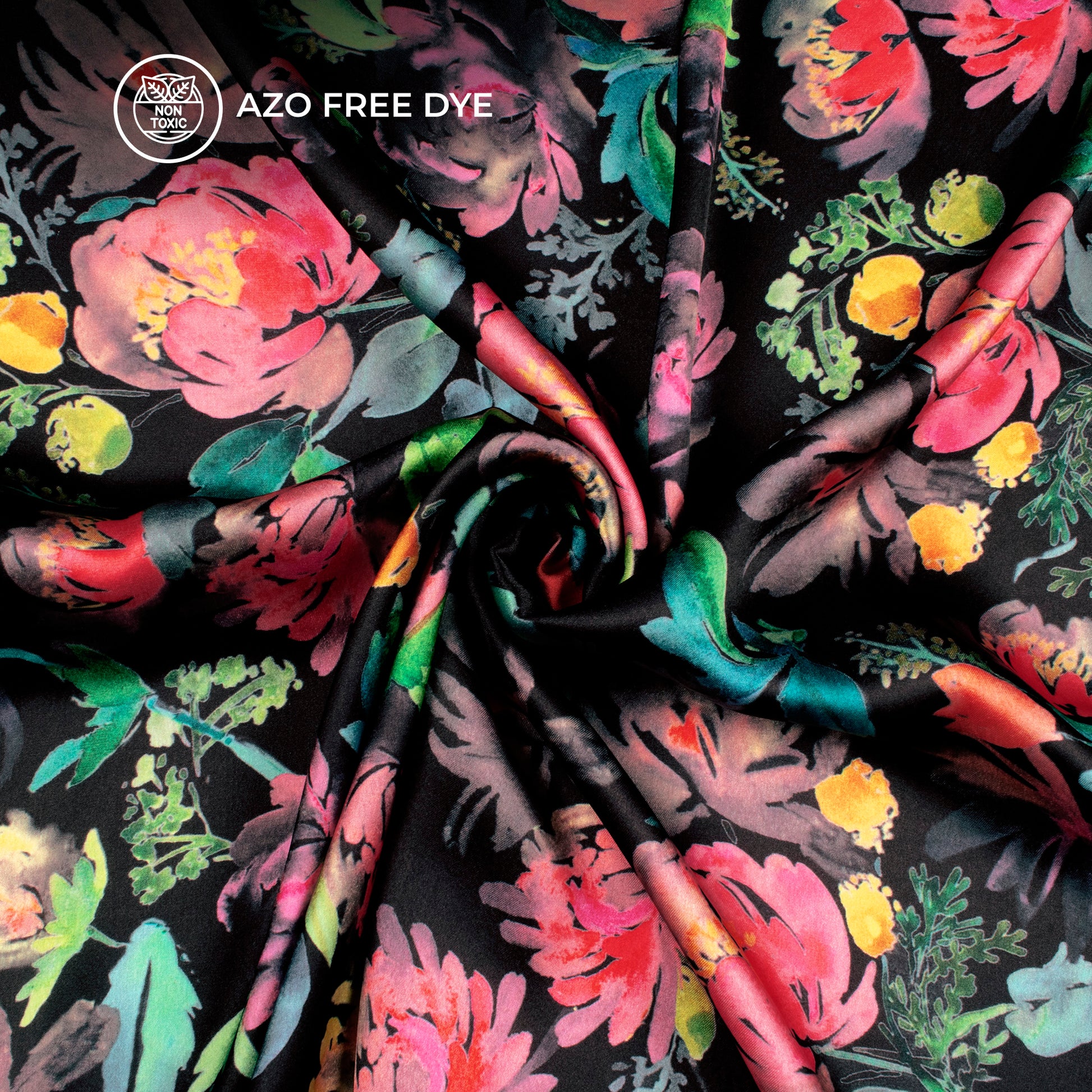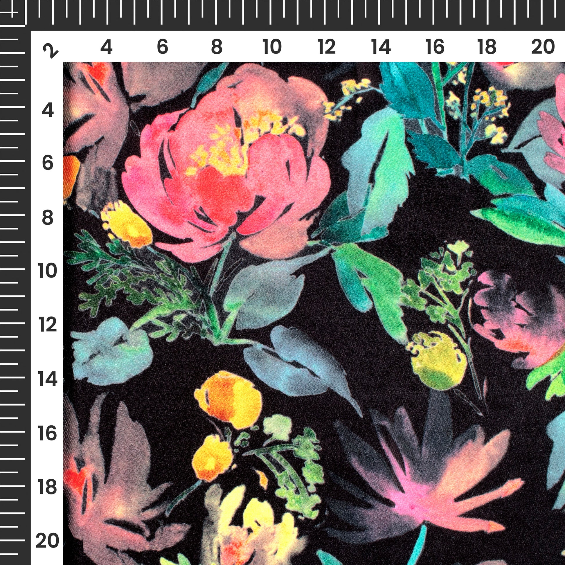 Black Floral Digital Print Japan Satin Fabric