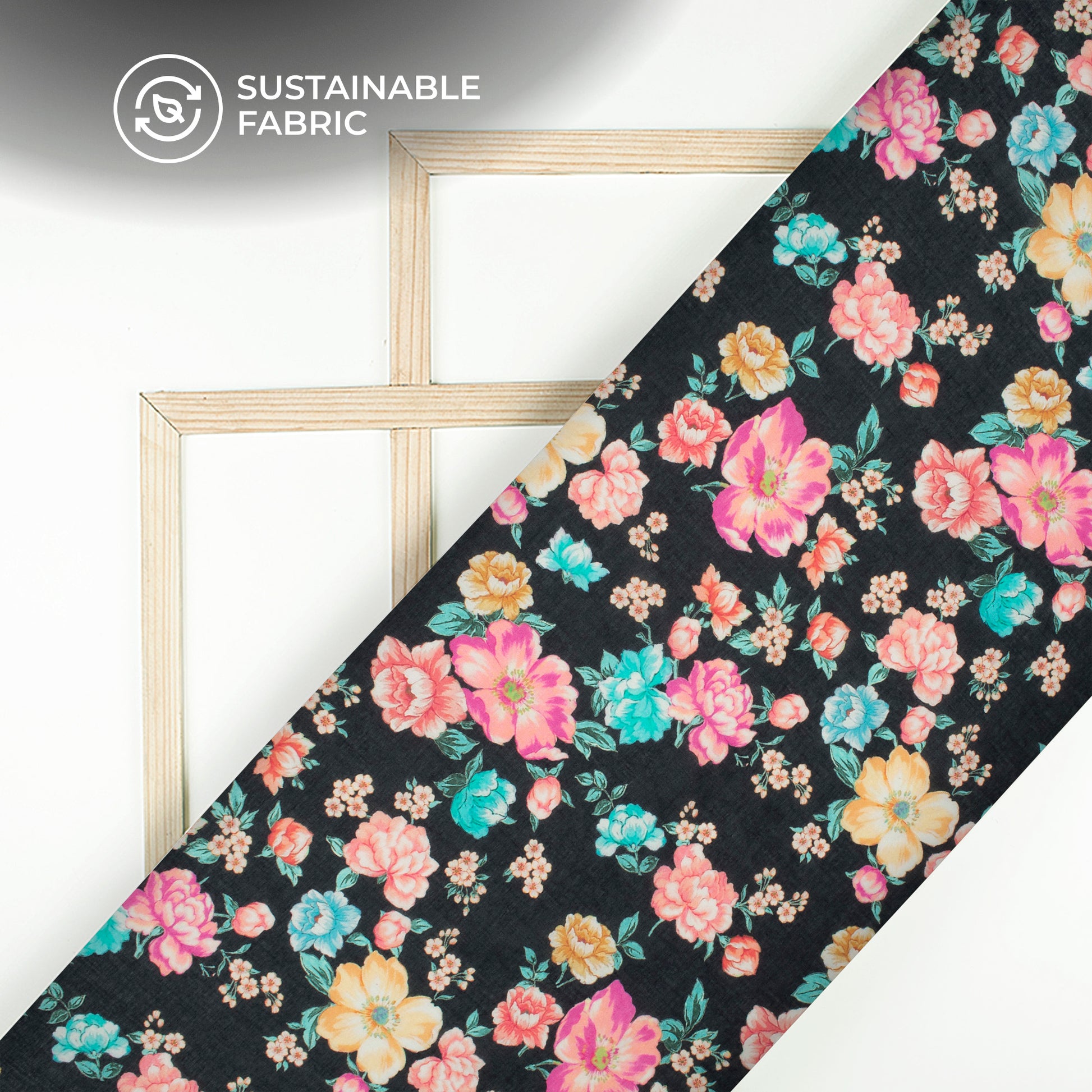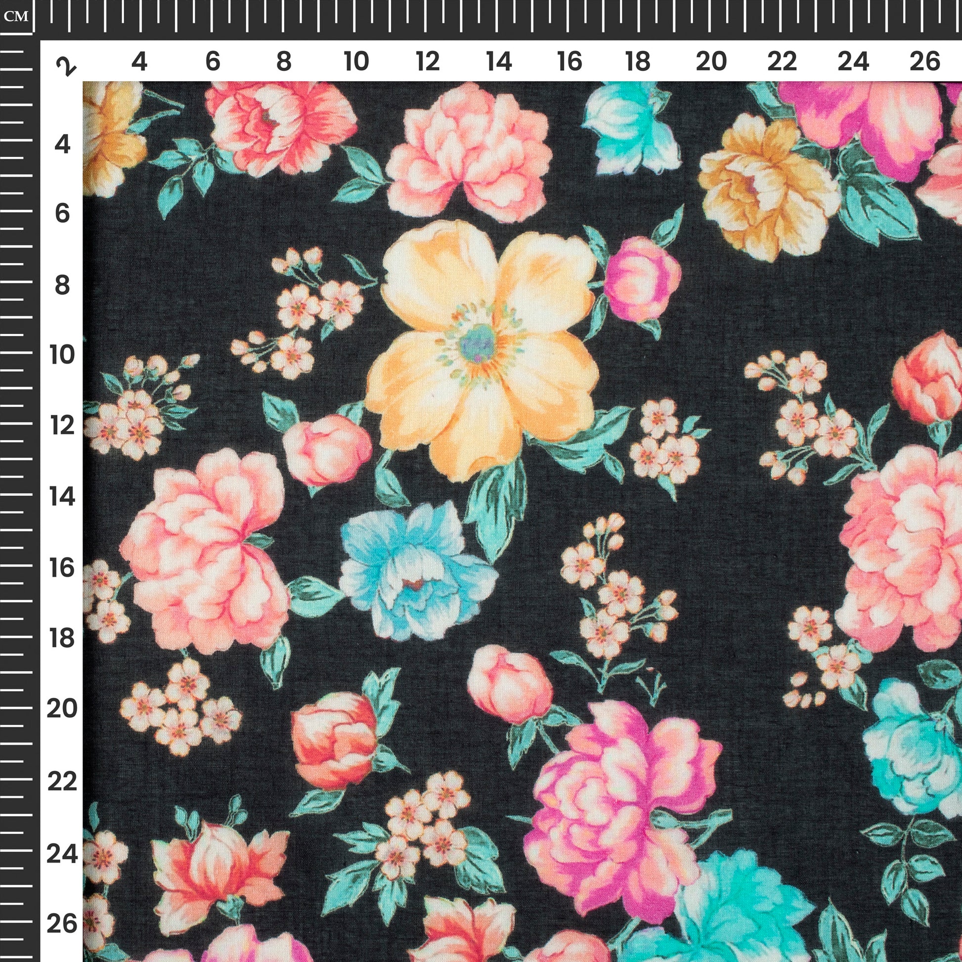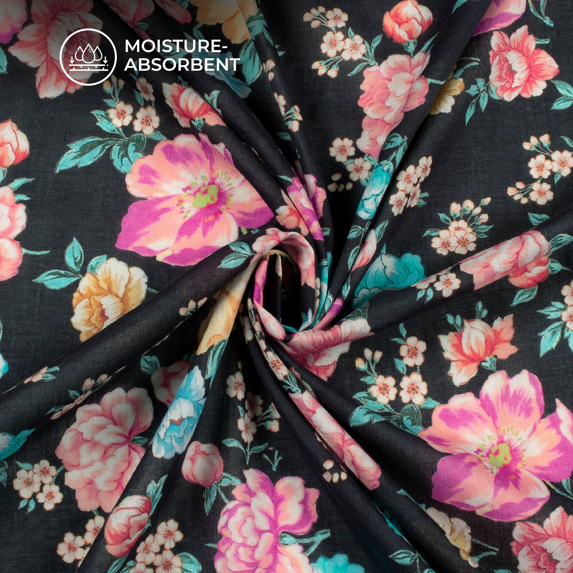Black Floral Digital Print Pure Cotton Mulmul Fabric